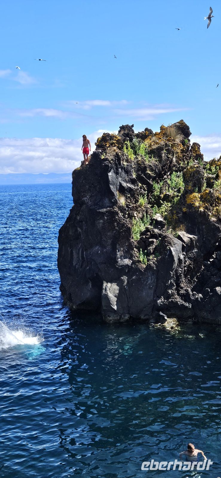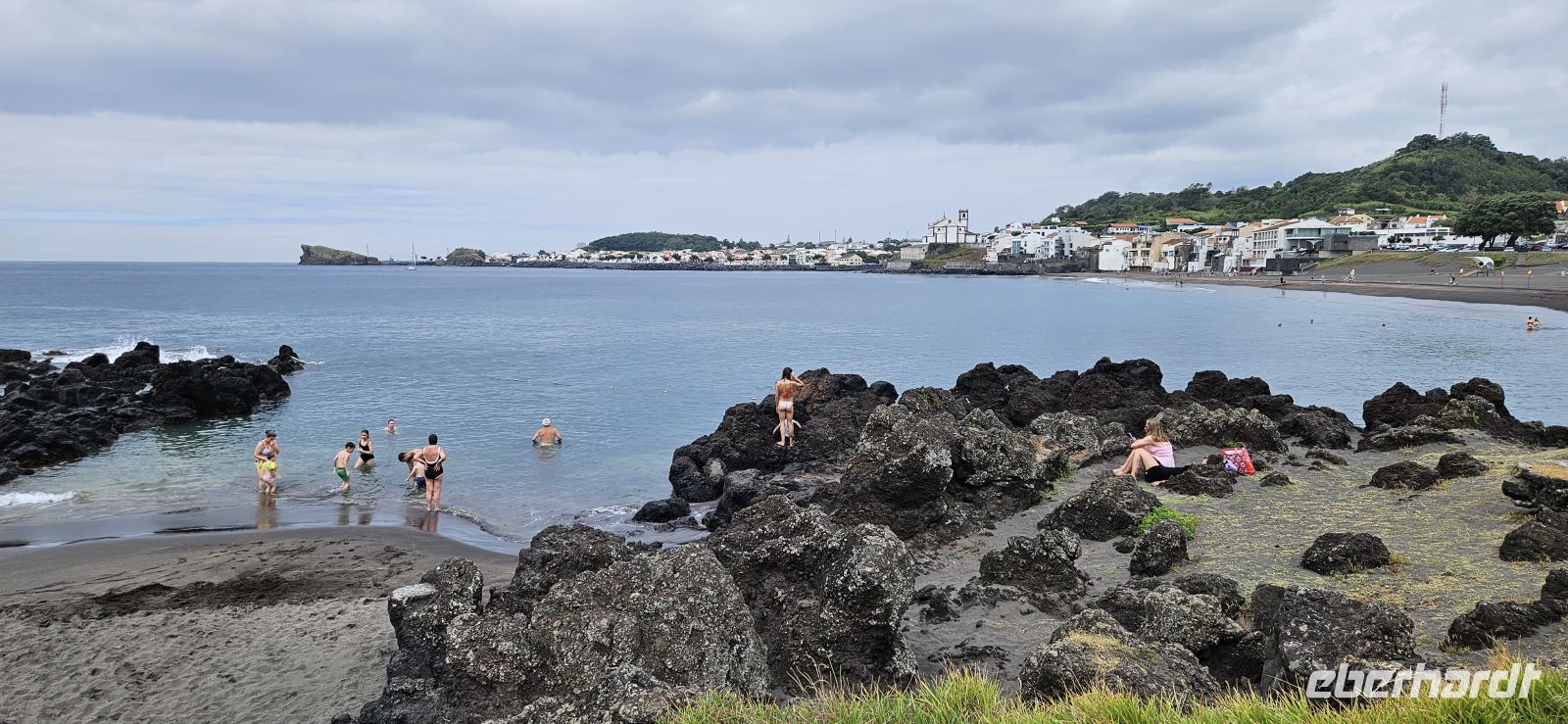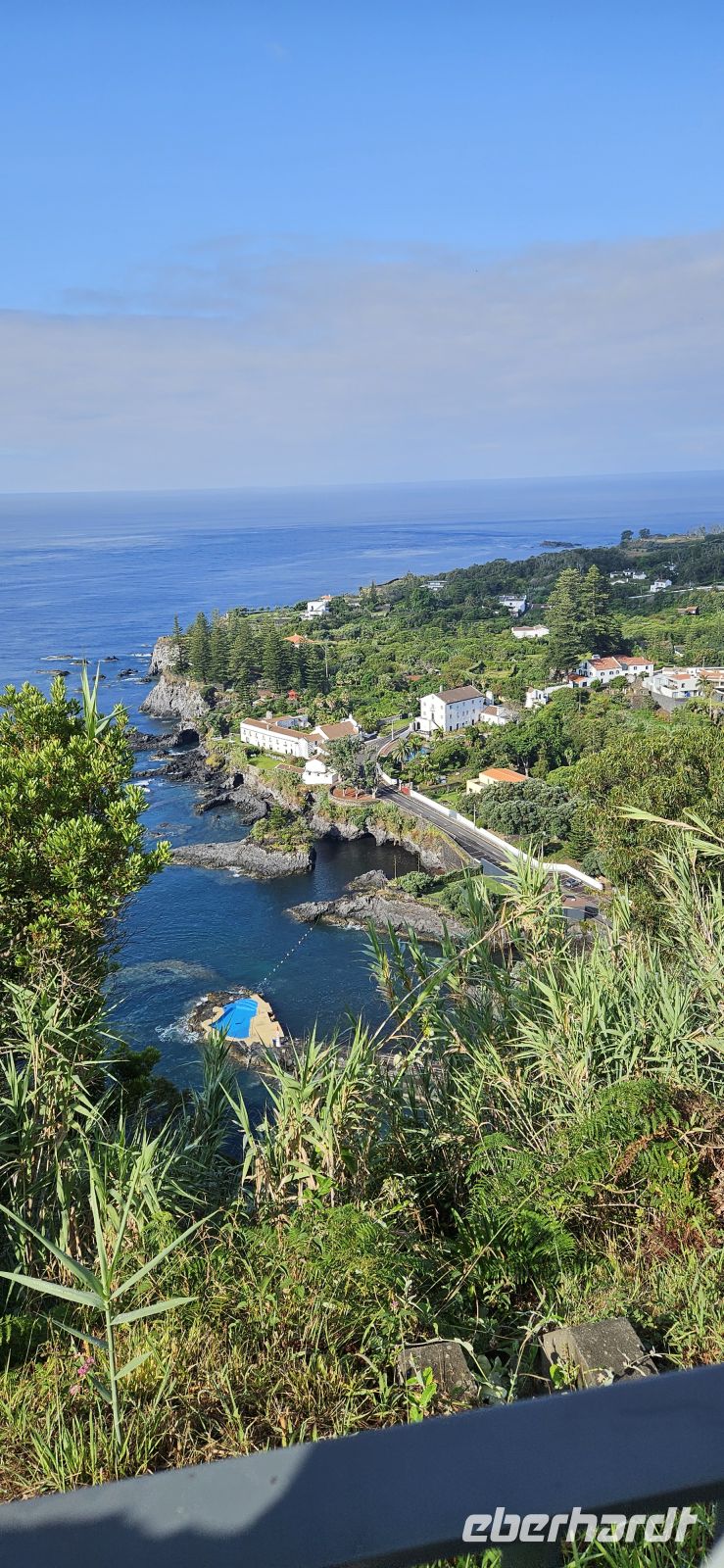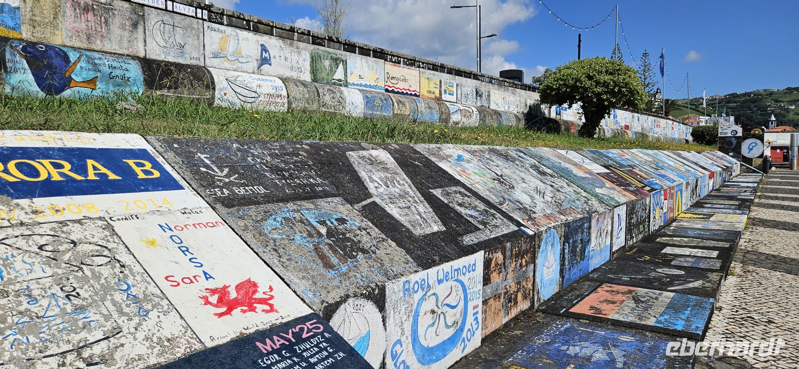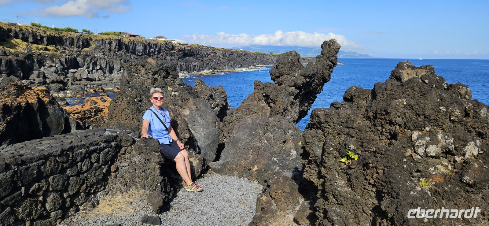 WIR fuhren entlang der Westküste zurück und machten den nächsten Stopp in Varadouro bei den Meerwasserschwimmbecken. Da gab es ein gemütliches Becken und eins, wo die mächtigen Wellen hinein schwappten. Zum Schwimmen war es grandios, denn es kam mit jeder Welle frisches Meerwasser in das Becken. Im nahegelegenen kleinen Bistro machten wir unsere Mittagspause und fuhren danach entlang der West- und Südküste zurück nach Horta. Ein letzter Fotostopp bei den Felsbögen erfolgte kurz vor der Stadt. Das Abendessen nahmen wir im Peter Cafe Sport auf der Terrasse ein. Wir hatten unsere Bestellung bereits telefonisch aufgegeben und so mussten wir auch nicht lange auf unser Essen warten.