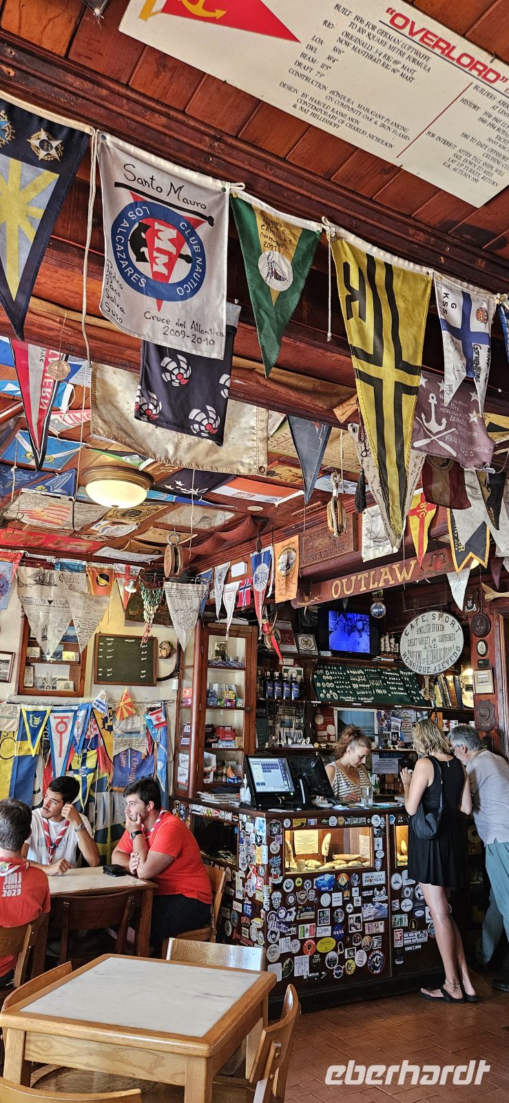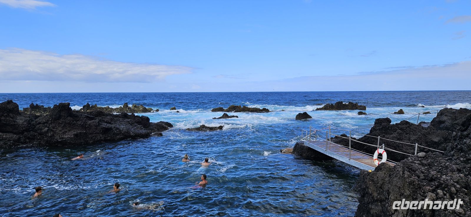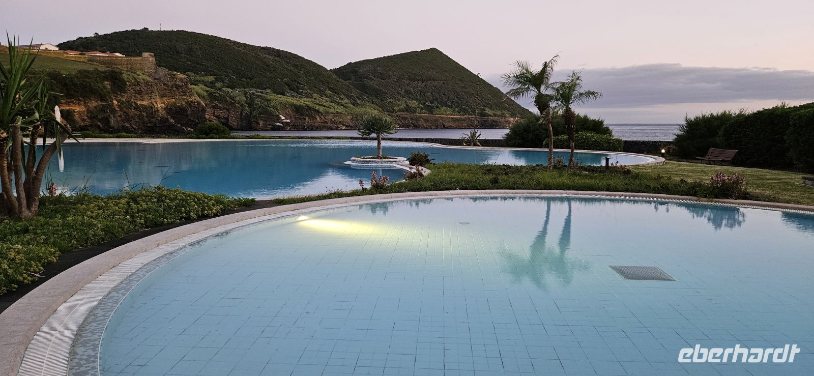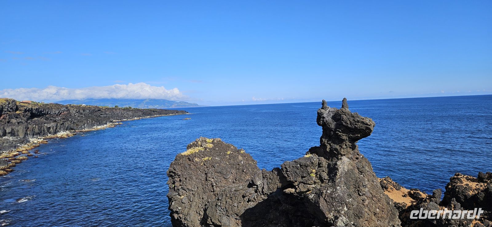 WIR fuhren entlang der Westküste zurück und machten den nächsten Stopp in Varadouro bei den Meerwasserschwimmbecken. Da gab es ein gemütliches Becken und eins, wo die mächtigen Wellen hinein schwappten. Zum Schwimmen war es grandios, denn es kam mit jeder Welle frisches Meerwasser in das Becken. Im nahegelegenen kleinen Bistro machten wir unsere Mittagspause und fuhren danach entlang der West- und Südküste zurück nach Horta. Ein letzter Fotostopp bei den Felsbögen erfolgte kurz vor der Stadt. Das Abendessen nahmen wir im Peter Cafe Sport auf der Terrasse ein. Wir hatten unsere Bestellung bereits telefonisch aufgegeben und so mussten wir auch nicht lange auf unser Essen warten.