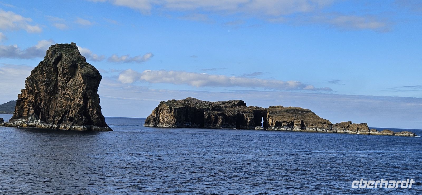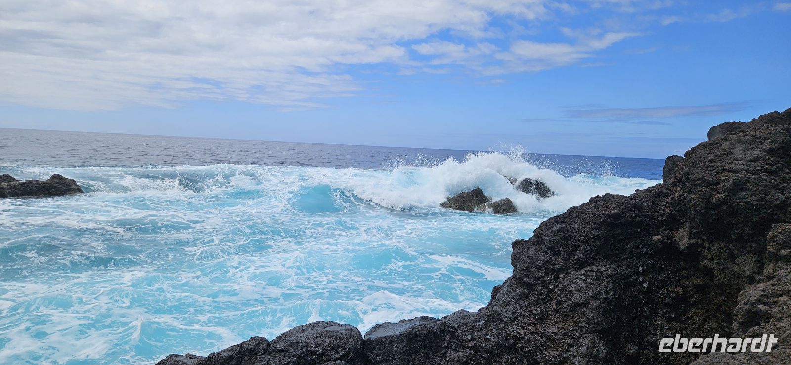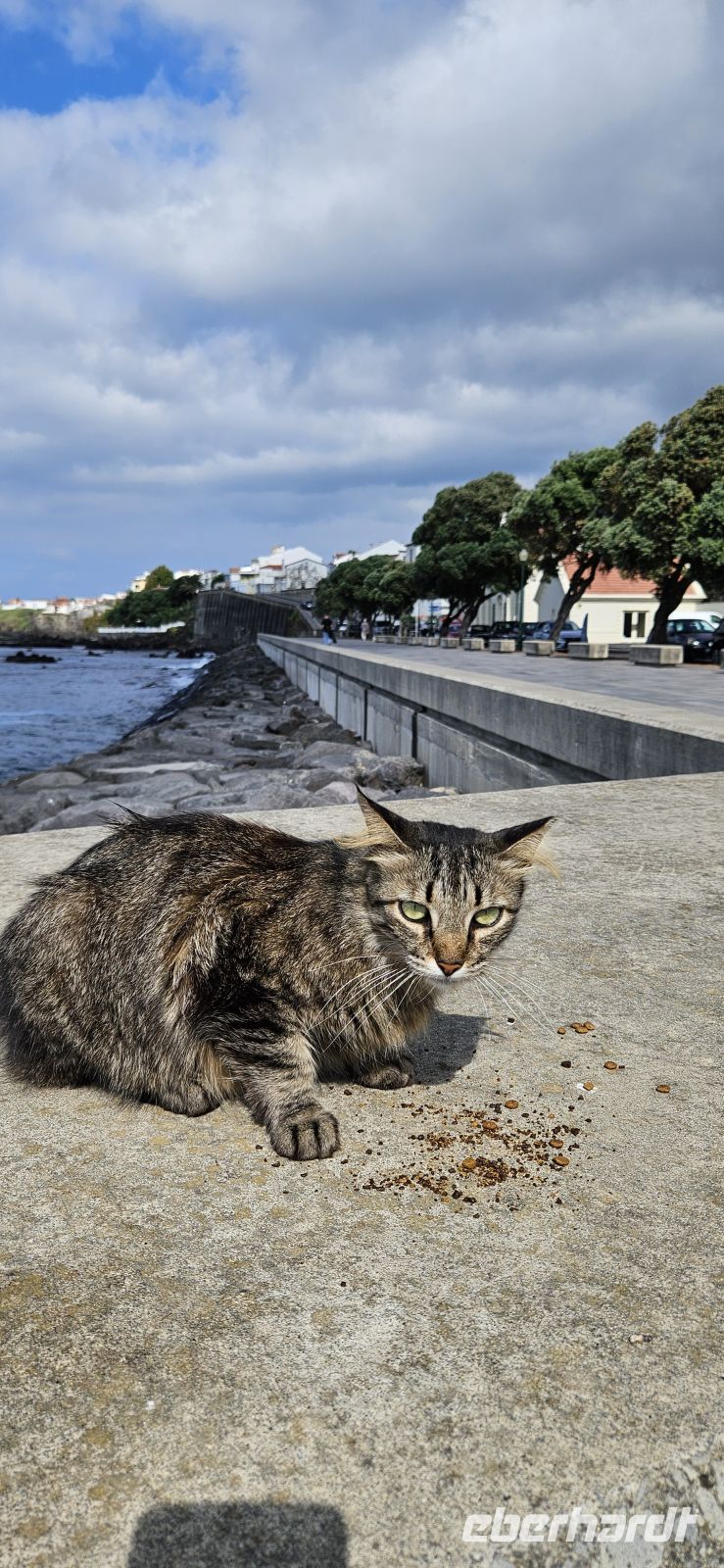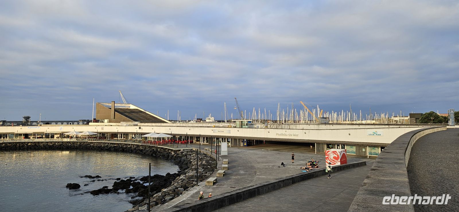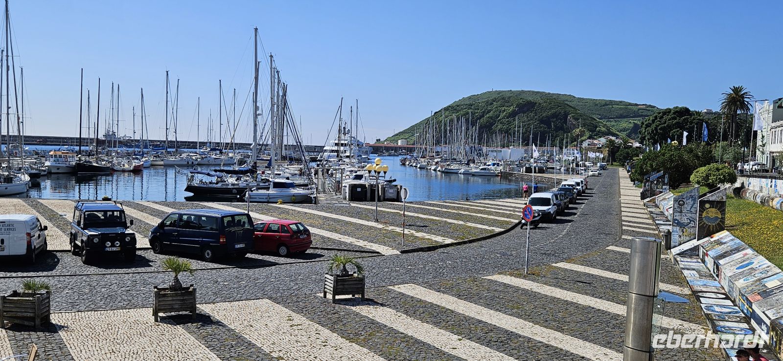 WIR fuhren entlang der Westküste zurück und machten den nächsten Stopp in Varadouro bei den Meerwasserschwimmbecken. Da gab es ein gemütliches Becken und eins, wo die mächtigen Wellen hinein schwappten. Zum Schwimmen war es grandios, denn es kam mit jeder Welle frisches Meerwasser in das Becken. Im nahegelegenen kleinen Bistro machten wir unsere Mittagspause und fuhren danach entlang der West- und Südküste zurück nach Horta. Ein letzter Fotostopp bei den Felsbögen erfolgte kurz vor der Stadt. Das Abendessen nahmen wir im Peter Cafe Sport auf der Terrasse ein. Wir hatten unsere Bestellung bereits telefonisch aufgegeben und so mussten wir auch nicht lange auf unser Essen warten.