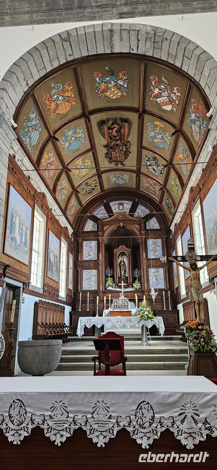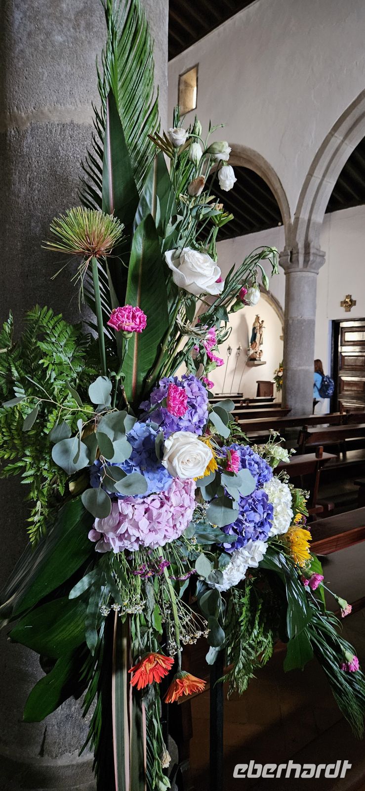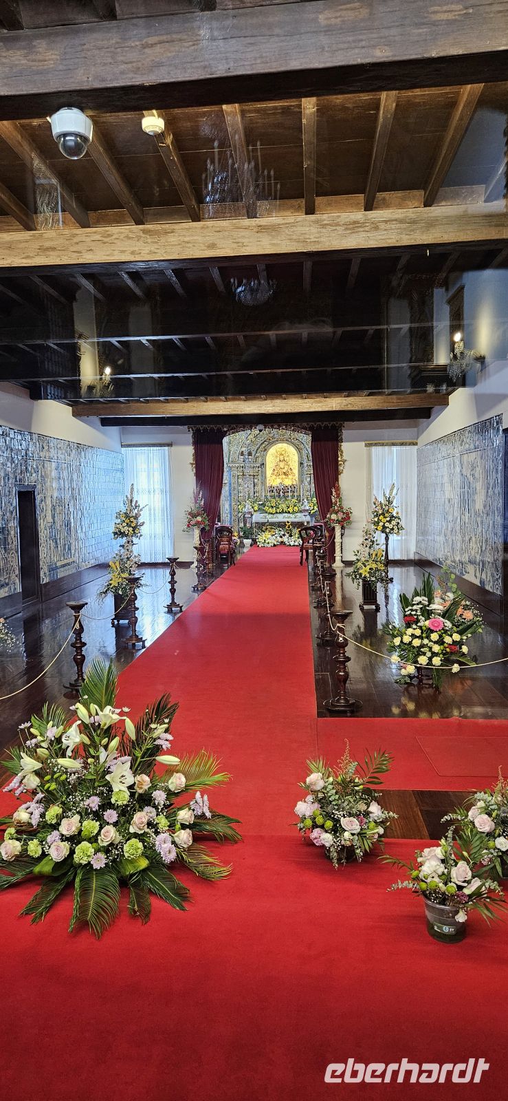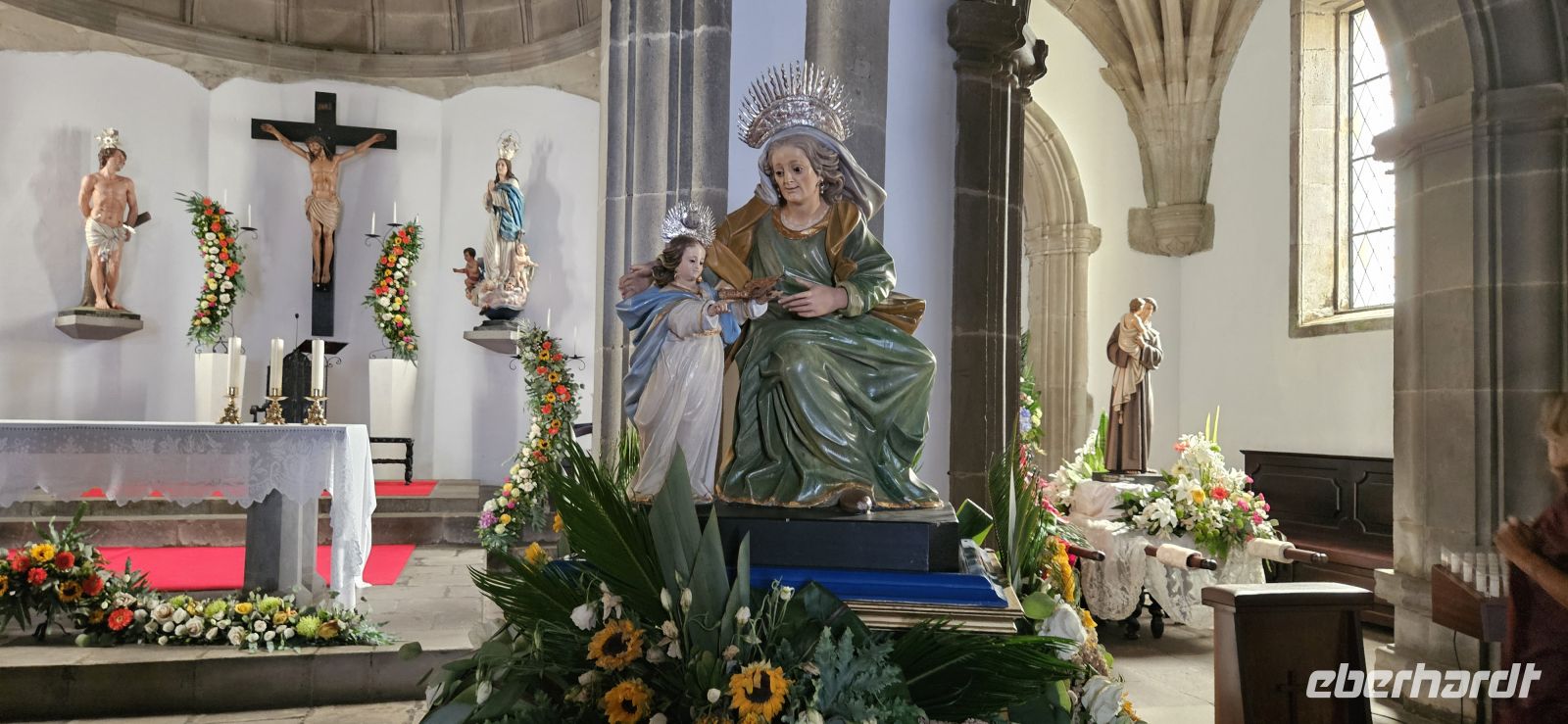 Nach einem reichhaltigen Frühstück starteten wir 9 Uhr zu unserem ersten Ausflug. Unterwegs gab Frederik die wichtigsten Informationen zu den Azoren. Am Aussichtspunkt Pisao bestaunten wir die üppige Vegetation und hatten einen wunderschönen Blick hinunter zum Kloster Caloura. Nur widerwillig stiegen die Gäste in den Bus ein, denn es gab ja die ersten Hortensien zu fotografieren !! Der nächste Stopp war am Meer mit Blick auf die vorgelagerte Insel Vila Franca do Campo, wo es alljährlich das Red Bull Cliff Diving World Series-Event gibt. Täglich dürfen die Insel 400 Gäste besuchen und den wunderschönen Badestrand genießen. In der Stadt Vila Franca do Campo machten wir einen Spaziergang zur Kirche, zum Rathaus und durch den Park zum kleinen Hafen. Im Ort werden die berühmten Queijadas produziert und so kaufte ich für jeden ein solcher kleines "Törtchen" zum Probieren. Wir fuhren immer weiter ostwärts und erreichten den Furnas See, wo bereits unser Mittagessen im Erdloch fertig gekocht war. Also fuhren wir hinunter nach Furnas und begaben uns ins Restaurant Tony´s, wo wir den leckeren Cozido zu Mittag bekamen. In einen großen Topf werden Kohl, Süßkartoffeln, Möhren, Kartoffeln, Yamswurzel, Hühnchen, Schweinefleisch, Rindfleisch, Blutwurst und Chorizo geschichtet und mit Kohlblättern abgedeckt. Der Topf wird in ein großes Tuch eingeschlagen und das ganze kocht dann für 6-8 Stunden im heissen Dampf im Erdloch. Es schmeckte fantastisch und der Milchreis Nachtisch war auch etwas ganz besonderes. Nun waren wir gestärkt und begaben uns zu Fuß in den Terra Nostra Park. Der damalige Konsul der USA auf den Azoren, Thomas Hikling, erbaute auf dem Gelände 1780 seine Sommerresidenz. Mitte des 19.Jahrhundert erweiterten die Viscondes da Praia das Gelände zu einem Botanischen Garten. 1930 erwarb Vasco Bensaude das Gelände und gestaltete es mit seinem schottischen Gärtner neu. Der alte Baumbestand und die Vielzahl an Pflanzen sind einfach grandios und das große Thermalbecken mit 38 Grad warmen Wasser lud auch einige Singles unserer Gruppe zum Baden ein. Mit unserem Bus fuhren wir anschließend zum Aussichtspunkt Pico da Ferro und von dort oben hatten wir einen wunderschönen Blick in den riesigen Krater mit dem Furnas See und den Ort Furnas. Weiter ging´s zur Teeplantage Gorreana. Im Bus hatte Frederik uns schon alles über die Teeherstellung berichtet und so schauten wir uns drinnen die alten, noch immer zur Produktion genutzten Maschinen an und probierten den Tee. Entlang der Nordküste fuhren wir zurück. Einige Singles unternahmen mit mir noch einen Spaziergang entlang der Marina bis zur Festung Sao Bras und zur Esperanca Kirche. Diese Kirche auch Santo Cristo Kirche genannt, ist die wichtigste der Insel unbd beherbergt die vergoldete Christus Statue, die beim wichtigsten Fest der Insel am 5.Sonntag nach Ostern bei einer Prozession durch die Strassen getragen wird.
