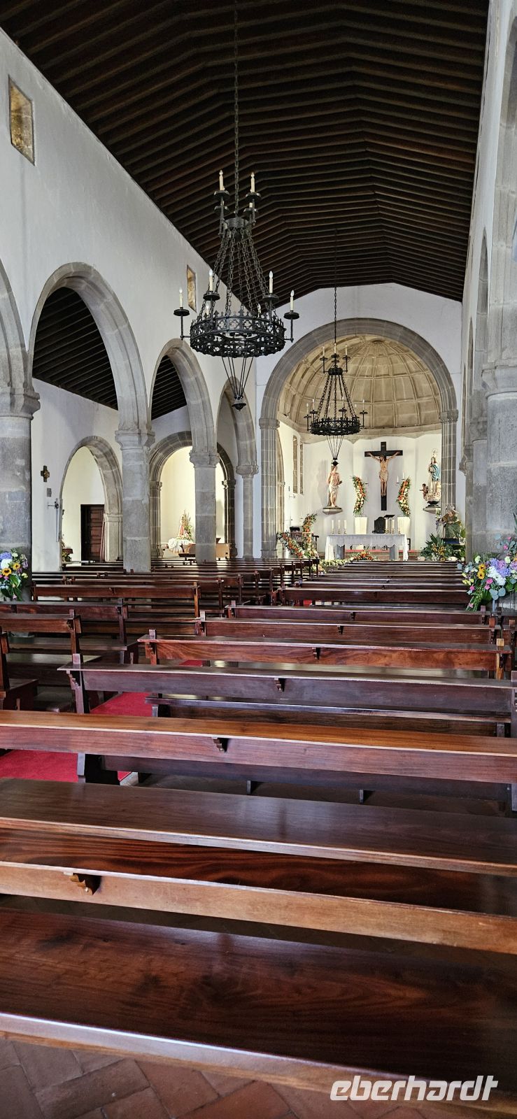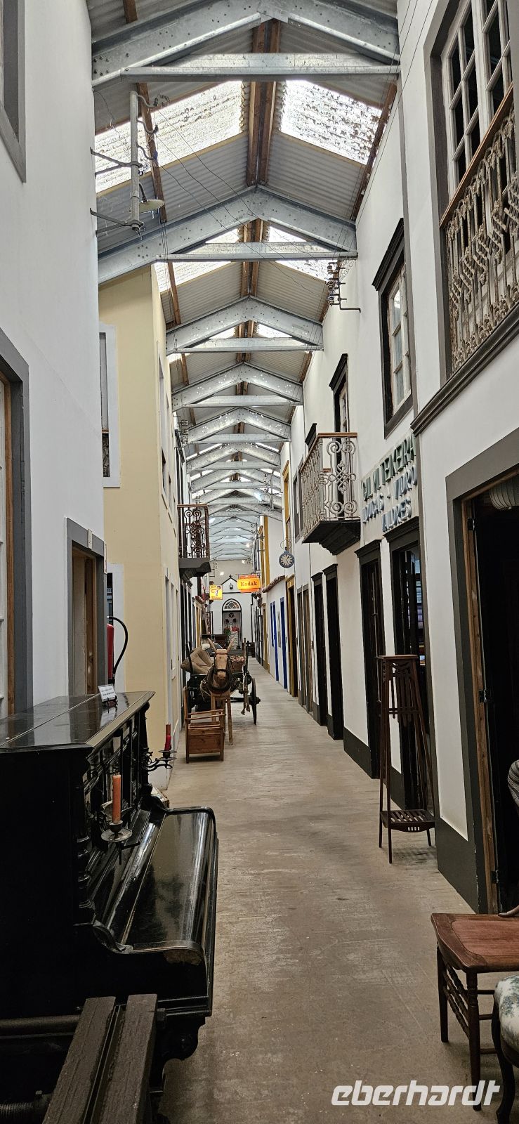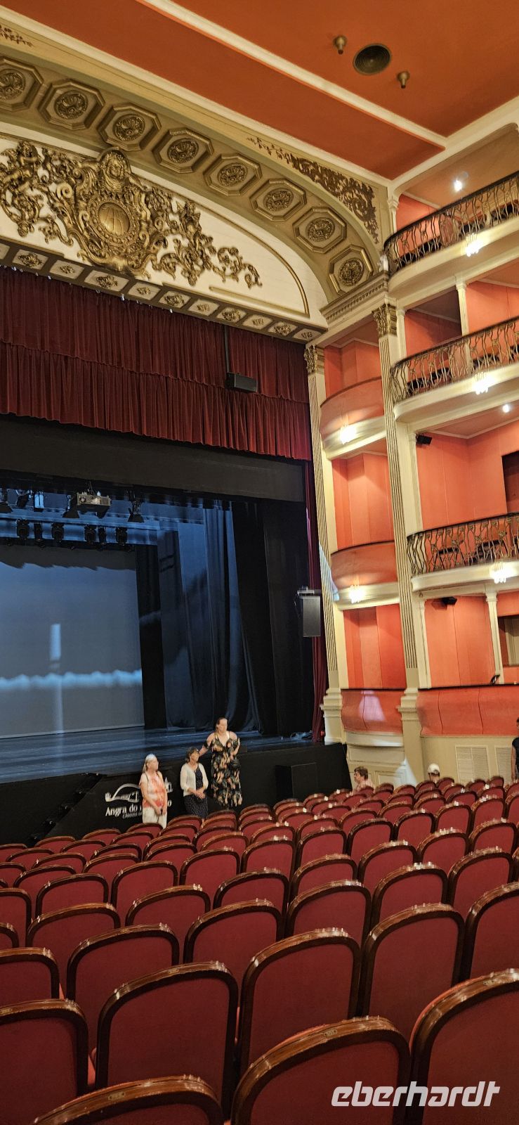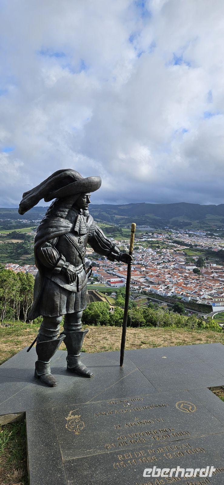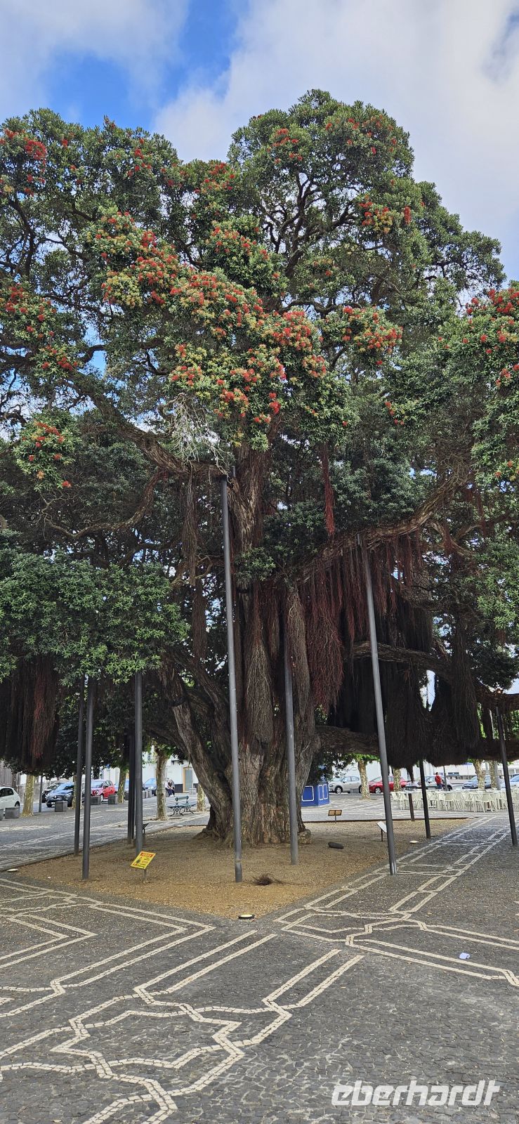 Von unserem Hotel spazierten wir mit Paula durch das Sao Pedro Viertel ins Stadtzentrum von Angra. Unterwegs gab es immer mal Pausen, wo uns Paula zur Geschichte der Stadt informierte. Wir sahen dann die Kathedrale von außen, besuchten das Theater auch innen und gingen weiter zum großen Komplex der Jesuitenkirche mit Kloster. Im Kloster gibt es heute ein Museum und die Präsident hat dort seinen Sitz, wenn er sich auf Terceira aufhält. Im Cafe Central zeigte uns Paula die süßen Leckereien und anschließend spazierten wir durch den Park der Stadt. Am Park steht das Gebäude des ehemaligen Franziskaner Klosters, wo heute das Museum der Insel untergebracht ist. Der Besuch des Rathaus folge dann. Im Ratssaal nahmen wir Platz und bekamen alles wichtige zur Geschichte der Stadt zu hören. Die Räumlichkeiten des Rathauses können besucht werden wenn nicht gerade Sitzungen stattfinden. Über den Rathaus Vorplatz gings dann weiter Richtung Hafen. Unterwegs besuchten wir einen traditionellen Laden, wo die Waren noch teilweise lose angeboten wurden. Am alten Hafentor, durch das wohl auch Vasco da Gama gegangen war, machten wir Halt und bestaunten die blaue Misericordia Kirche, einst das erste Krankenhaus der Stadt, in dem auch der kranke Bruder von Vasco da Gama behandelt wurde. Der Hafen von Angra hat eine sehr geschützte Lage und war deshalb bei den Seefahrern bekannt. Er lag geschützt und konnte von Piraten nicht angegriffen werden. Heute befindet sich dort die Marina und ein Lokal, in dem die eigenen regionalen Produkte verwertet werden. Aus der Milch gibt es ein leckeres Eis und das Fleisch wird im Restaurant zu leckeren Gerichten verarbeitet. Wir dankten Paula für die ausführliche Führung und begaben uns zum Mittagessen ins Cafe Central. Der Nachmittag wurde für Einkäufe und den Besuch der Poolanlage im Hotel genutzt. Und dann mussten ja noch die Koffer gepackt werden.