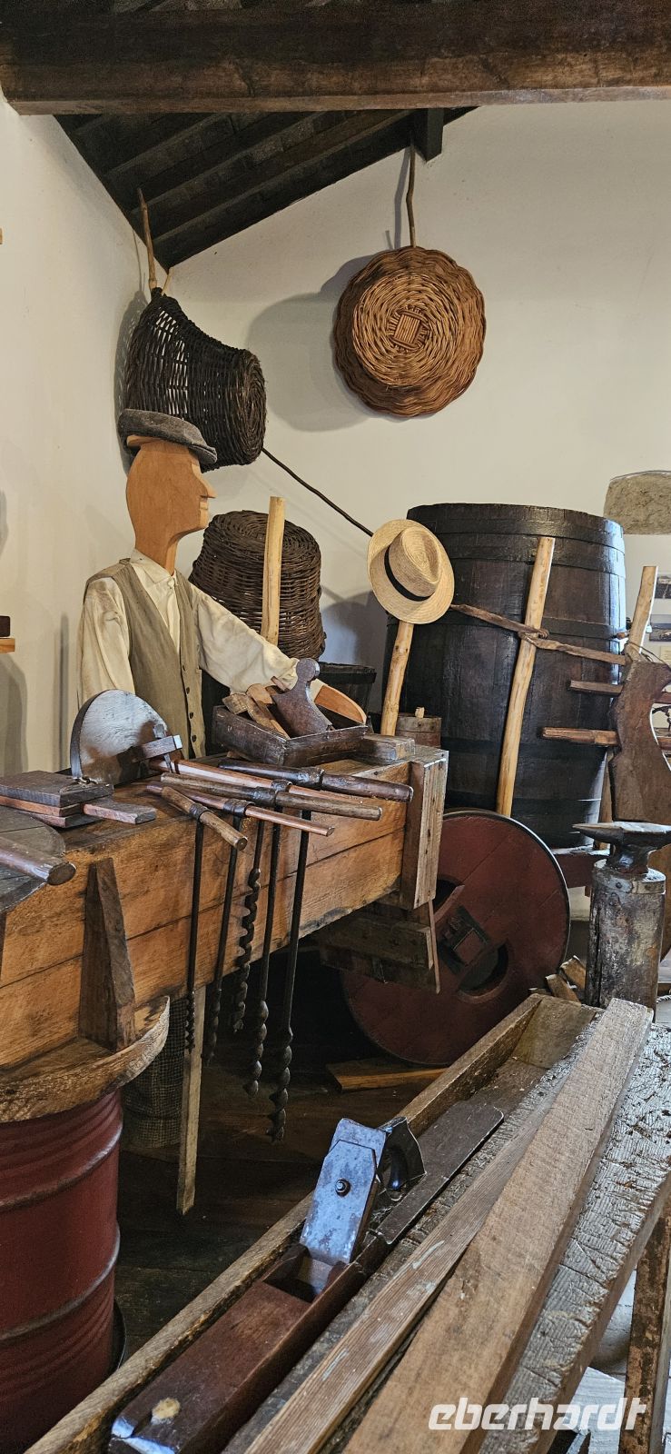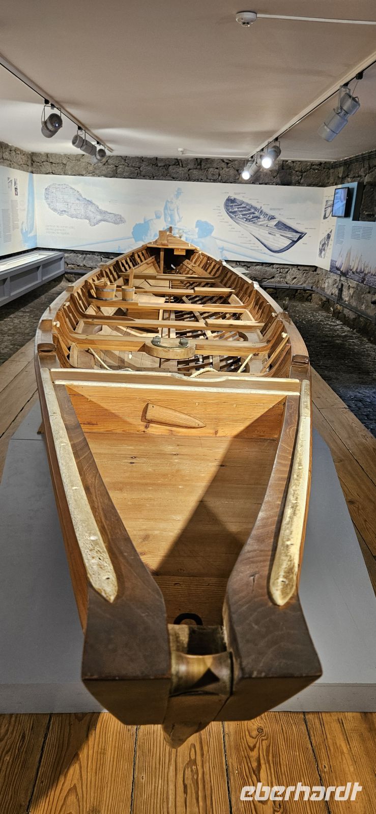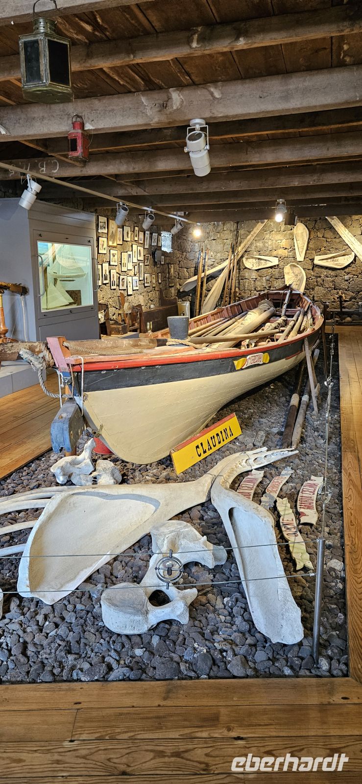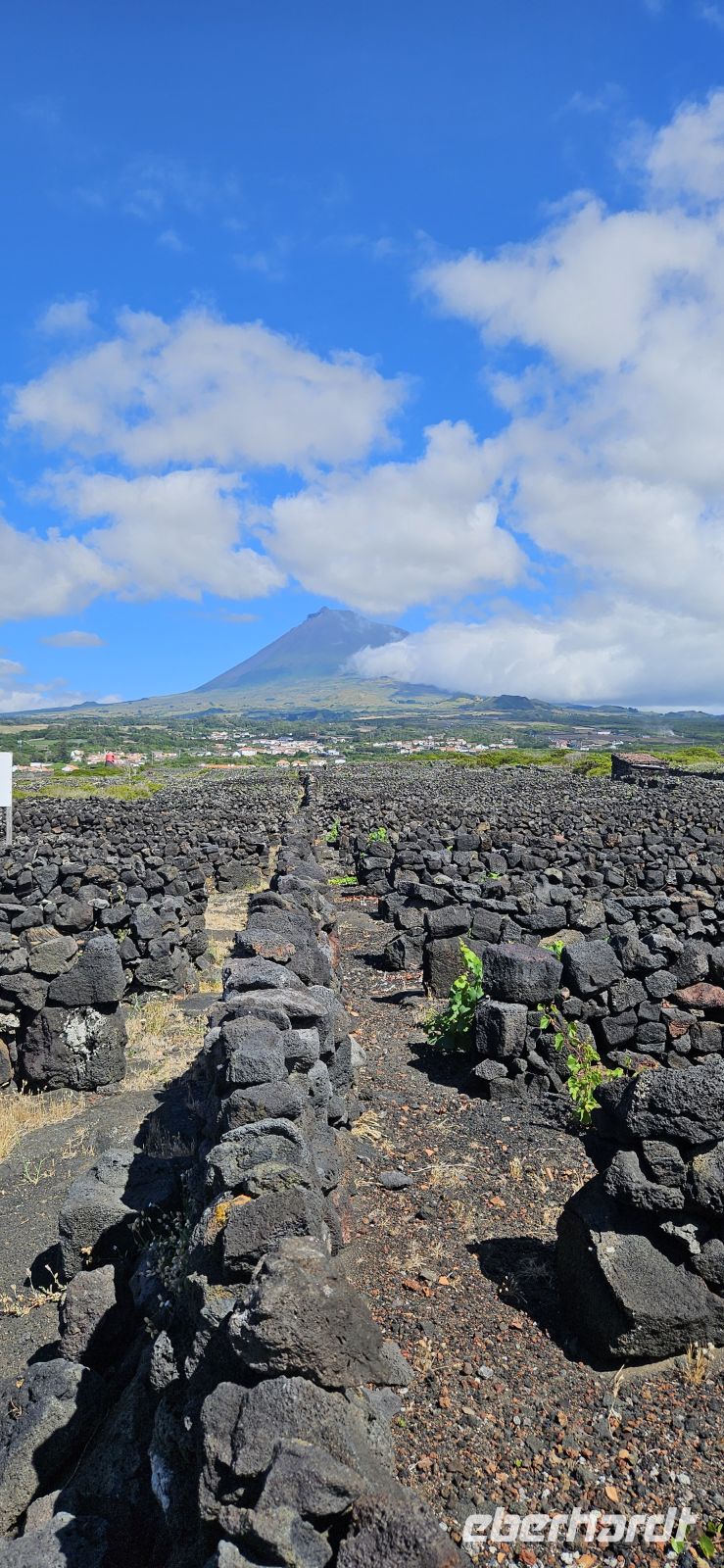 Ein Bus brachte uns das kurze Stück hinunter zum Fährhafen von Horta und mit der Fähre fuhren wir über den Kanal hinüber auf die Insel Pico. In Madalena angekommen wartete schon ein großer und geräumiger Bus auf uns zur Inselrundfahrt. Entlang der Nordküste erreichten wir Cachorro, was kleines Hündchen bedeutet. Und tatsächlich gibt es dort im Lavagestein ein kleines Hündchen zu bewundern. An der zerklüffteten Küste wurden einst die Weinfässer verladen und über Rollo Pipas zur Verladung ans Meer gerollt. Der Weinbau hat auf der Insel Pico eine lange Tradition. Da es aber keinen schiffbaren Hafen gab, mussten die Weinfässer mit kleinen Booten hinüber nach Horta gebracht werden und dort sassen die Händler, die das große Geld mit dem Wein verdienten. Auf Pico bekam man nur ca. 30 Prozent des verdienten Geldes. Unser nächster Stopp war im unweit entfernten LAJIDO. Dort sind viele der alten Häuser der Weinbauern zu Ferienhäuser umgenutzt worden und es gibt ein schönes Museum. Wir besuchten das Interpredationszentrum, einen Gezeitenbrunnen und eine Schnapsbrennerei. Und wir spazierten zur Küste, wo im Lavagestein noch die Wagenspuren der Räder zum Weintransport zu sehen waren. Überall an der Küste wächst Meerfenchel, der sich gut in Salaten verarbeiten lässt oder auch pur genascht werden kann. Vorbei am Flughafen fuhren wir weiter nach Sao Roque und besuchten kurz die Vogelfelsen an einem Natur Schwimmbad. Wagemutige junge Männer kletterten verbotenerweise auf diese Felsen und sprangen von da oben ins Meer. Dann endlich war es Zeit für die Mittagspause in der Adega A Buraca. Uns erwartete eine Weinprobe mit frisch gebackenem Maisweizenmehl Brot, Käse, Blutwurst und Chorizo. Wir probierten 3 Weine und zum Schluss noch einen Schnaps oder Likör. Die Weiterfahrt mit dem Bus ging von der Nordküste durch die Inselmitte zur Südküste nach Lajes. Wir besuchten das Walfangmuseum und sahen einen eindrucksvollen Film über die Waljagd und die Verarbeitung der Wale. Zum Schluss unseres Ausfluges auf der Insel Pico wanderten wir durch das UNESCO Weinanbaugebiet. Hier wird der Wein in kleinen Mulden geschützt von Vulkangesteinsmauern gepflanzt. Die Mauern schützen vor Wind und der Meeresgischt, speichern die Wärme tags und geben sie nachts wieder ab. Eine kleine rekonstruierte Windmühle sahen wir unterwegs und bei den Meerwasserbecken holte uns der Bus wieder ab und brachte uns zurück zum Fährhafen in Madalena. Mit der Fähre fuhren wir zurück nach Horta.