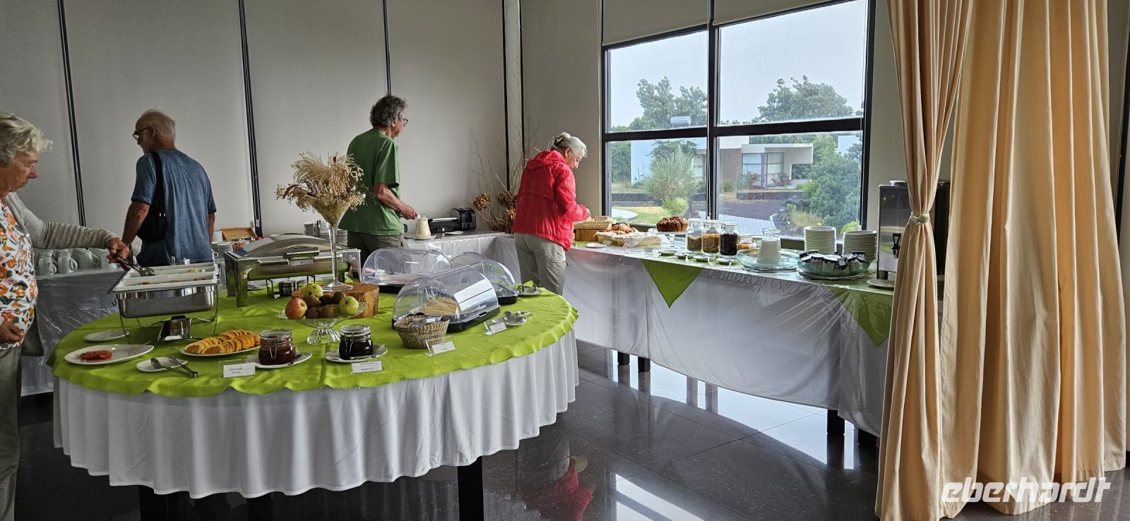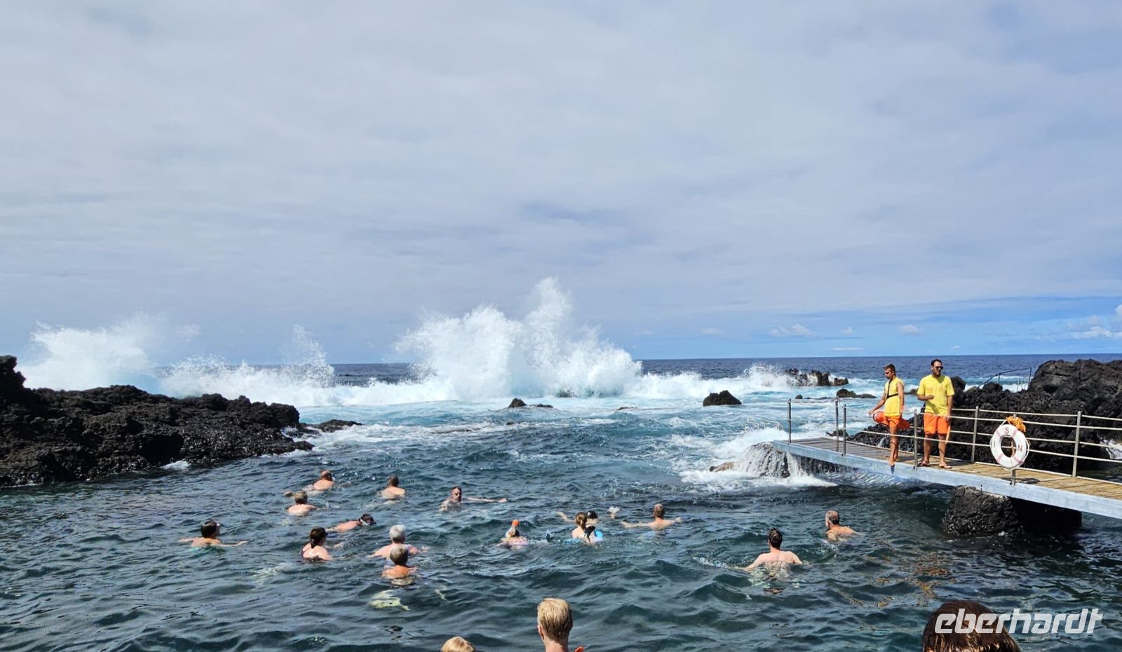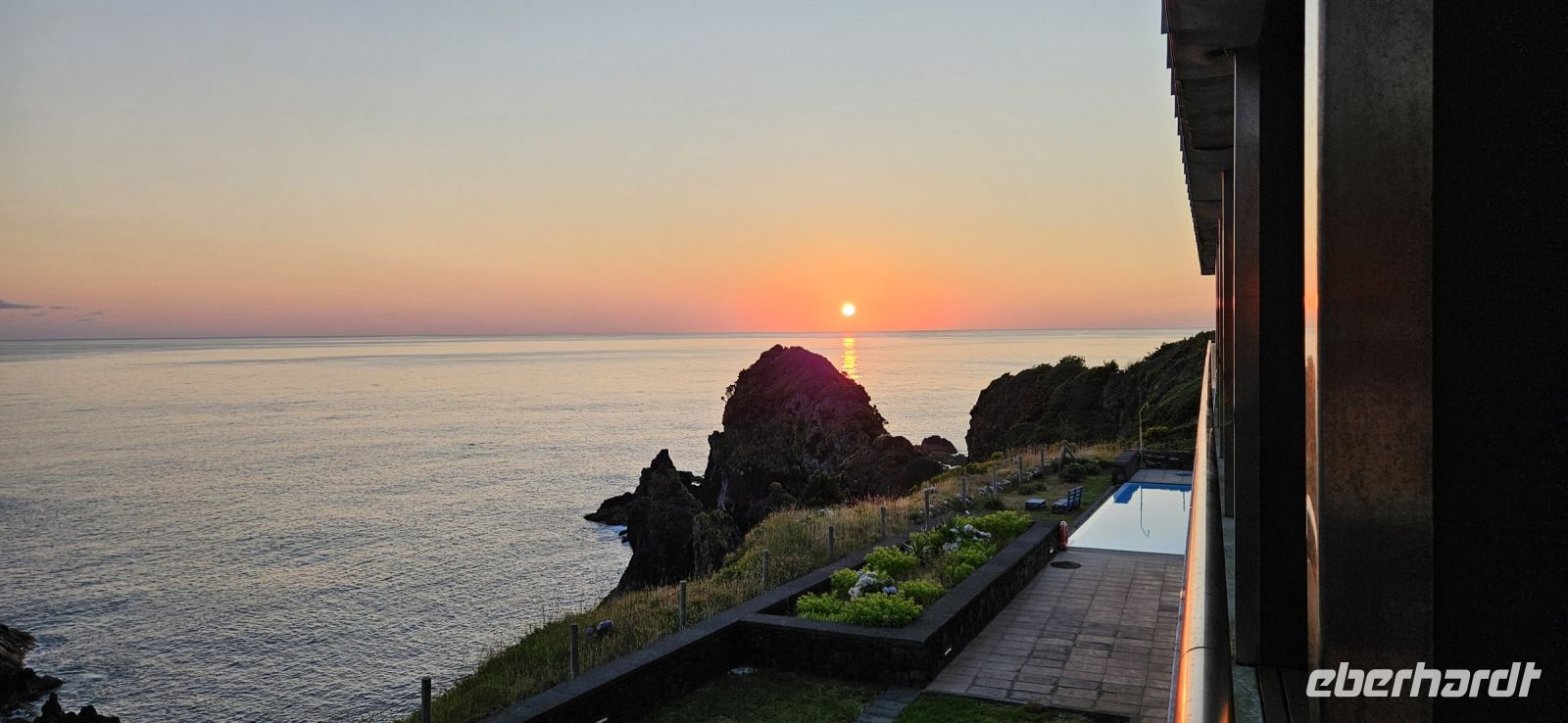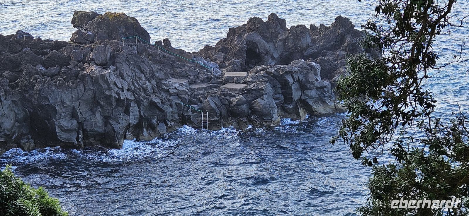 Bereits 7 Uhr traf ich mich mit einigen Gästen, um im Atlantik schwimmen zu gehen. Der Weg zur Badestelle führte über viele Treppen und durch Lavagestein. Das Wasser im Atlantik hatte 22/23 Grad Celsius Temperatur und bot ein erfrischendes Bad in einer geschützten Bucht. Das Frühstück schmeckte danach besonders gut und wir konnten es im Garten oder im Restaurant innen einnehmen. Viele lokale Produkte wurden angeboten und besonders der Sao Jorge Käse, ein Frischkäse, hatte es mir angetan.