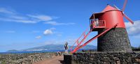 Heute verliessen wir die Insel Terceira und flogen nach Graciosa. Leider hatte unser Flug Verspätung und Melinda hatte kurzer Hand entschieden, gleich mit der Besichtigung von Santa Cruz da Graciosa zu beginnen und dann das Mittagessen im Zentrum einzunehmen. Danach fuhren wir auf den "Hausvulkan" des Städtchens und genossen die Aussicht bis hin zu unserem Hotel mit der kleinen Marina davor. Von oben gingen wir hinunter zur Stierkampfarena und umrundeten diese. Mit dem Bus ging es dann um die Nordspitze von Graciosa und wir machten den nächsten Stopp am Leuchtturm Ponta da Barca. Es war Mittwoch und da haben in Portugal die Leuchttürme geöffnet und können kostenlos besichtigt werden. In zwei Gruppen durften wir die imposante Wendeltreppe hinaufsteigen und von oben war der Ausblick grandios - die Inseln Sao Jorge, dahinter Pico und rechts Faial waren sehr gut zu sehen. Melinda spendierte oben einen Honigschnaps der Insel. Auf Vorschlag unseres Busfahrers schauten wir uns danach Porto Alfonso an. Dort sind in das poröse Lavagestein Unterstände für die Boote gehauen worden und im Wasser konnten wir eine portugiesische Galeere - eine Art aus der Gattung der Seeblasen, denn von weitem denkt man, eine Plastiktüte schwimmt im Wasser - mal ganz aus der Nähe betrachten. Unsere Fahrt führte an der Westküste von Graciosa weiter nach Süden zur Caldeirinha. Diese kleine Caldeira umrundeten wir zu Fuss und hatten von dort noch die Nachbarinsel Terceira gut im Blick. Auf der Rückfahrt zu unserem Hotel bot uns Melinda noch eine Badepause am Barro Vermelho an, aber wir wollten nun endlich ins Hotel zum einchecken. Unser Inatel hatte einen großzügigen Eingangsbereich und Zimmer nur in einer Etage. Wir bezogen die grosszügigen Zimmer mit Blick zur Windmühle und richteten uns für die nächsten 2 Nächte ein. Danach erkundete wir die Badestelle im Atlantik und waren verwundert, dass die Einheimischen uns genau sagten, wo wir schwimmen sollten. Als wir die Badestelle am späten Abend bei Ebbe sahen, verstanden wir die Sorgen. Nach 15 Minuten Fussweg konnte man das Zentrum von Santa Cruz erreichen und dort trafen sich einige Teilnehmer der Gruppe ganz spontan. Andere blieben im Hotel und aßen im Hotelrestaurant.