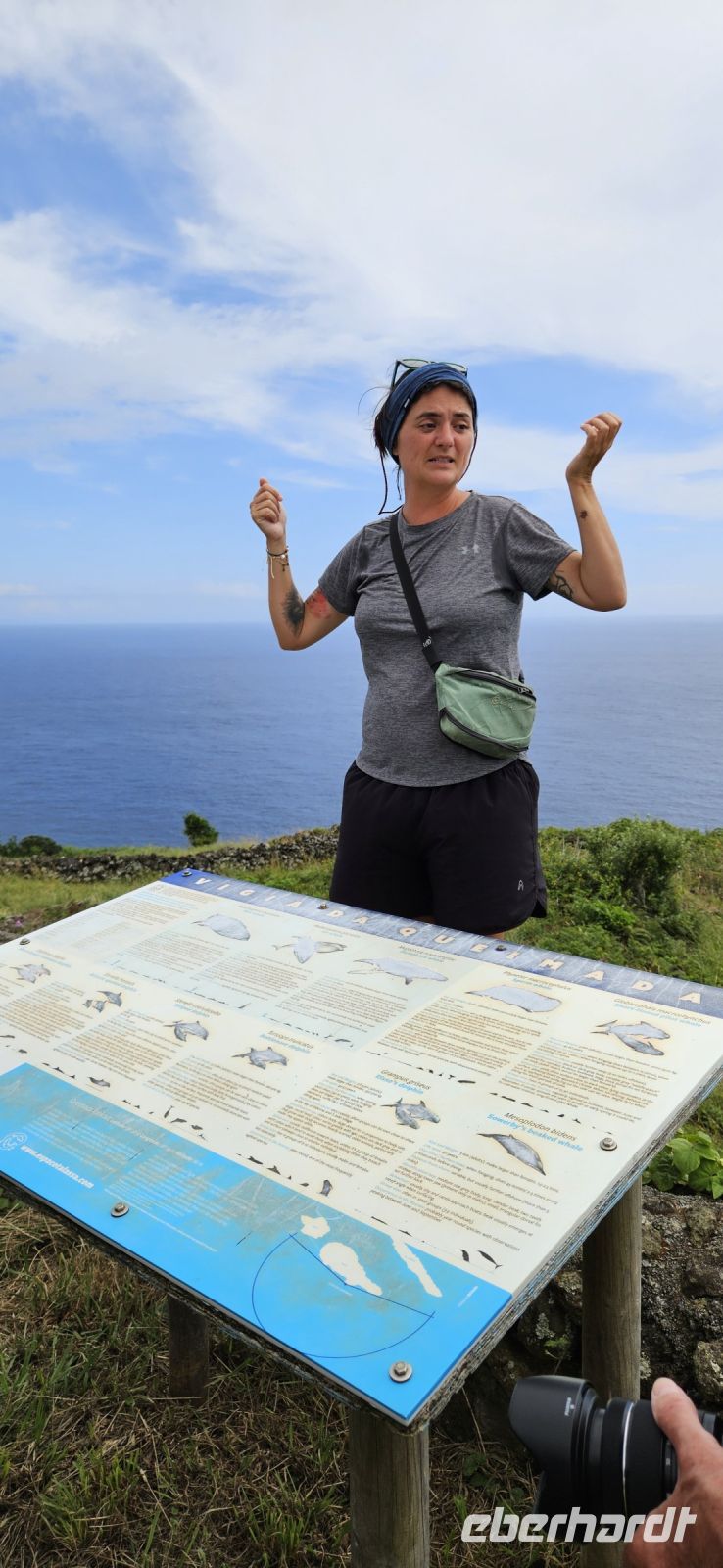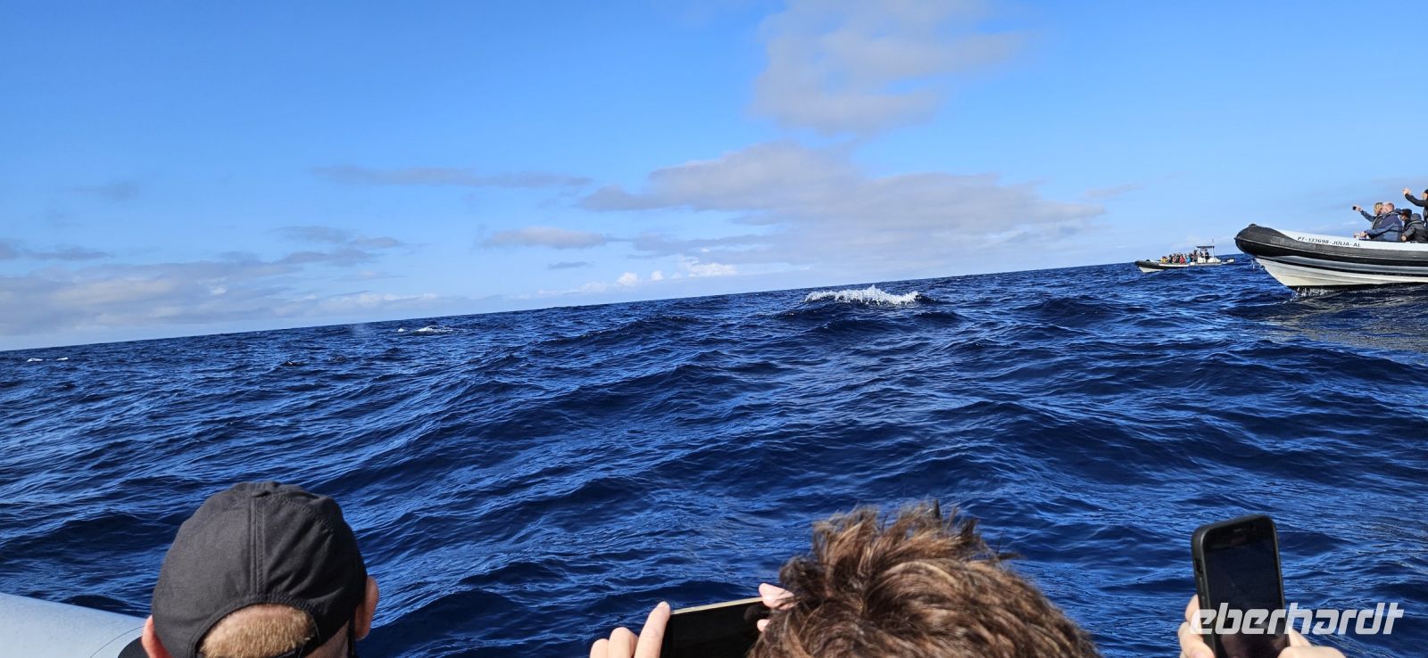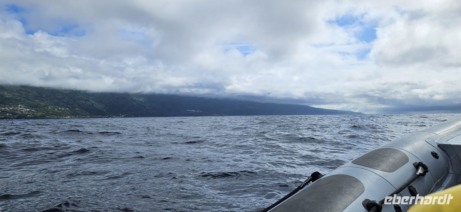 In der Nacht war der Gelbschnabelsturmtaucher wieder aktiv und flog sogar durch unsere Hotelanlage. Heute begann unser Ausflug schon 8 Uhr mit der Abholung durch die Walbeobachtungs Firma Bela Vista. Über Nacht hatte es geregnet und Gewitter gegeben und so lag am Morgen noch dichter Nebel über dem Atlantik. So gab es erst einmal die ausführliche Einweisung zur Walbeobachtungstour und dann hiess es Warten. Aber plötzlich hellte der Himmel auf und wir gingen zu den kleinen Booten. In den Zodiaks sitzt man wie auf einem Pferderücken und hat vor sich einen Griff zum Festhalten. Eine agile Dame gab letzte Informationen und dann ging es auch schon los. Das Meer sei ganz ruhig heute - so hiess es - und wir fragten uns besorgt, wie es sonst sei. Bei der schnellen Fahrt bekamen wir immer mal einen Schwapp Meerwasser ab. Das trocknete gleich wieder und es war auch nicht kalt. Vom Land bekommen die Bootsführer die Information, wo Wale gesichtet wurden und dann fahren alle Boote dorthin. Wir hatten Glück und sahen Delfine und Pottwale. Nach 3 Stunden waren wir wieder an Land und jeder Teilnehmer bekam eine Karte, auf der die gesichteten Tierarten markiert wurden. Anschliessend wanderten wir zur alten Walfabrik und besuchten das dortige Museum mit sehr interessanten Informationen zum Walfang und vor allem zur Weiterverarbeitung dieser riesigen Tiere. Wir gingen danach zu Fuss zum Mittagessen ins Restaurant Boca do Forno am Stadtrand von Lajes. Dort konnten wir uns am reichhaltigen Buffet bedienen und weil das Personal so entgegenkommend war, suchten wir auch gleich Speisen zum Abendessen to go aus. In unserer Hotelanlage war es schwierig, wenn 19 Personen a la carte essen wollten.