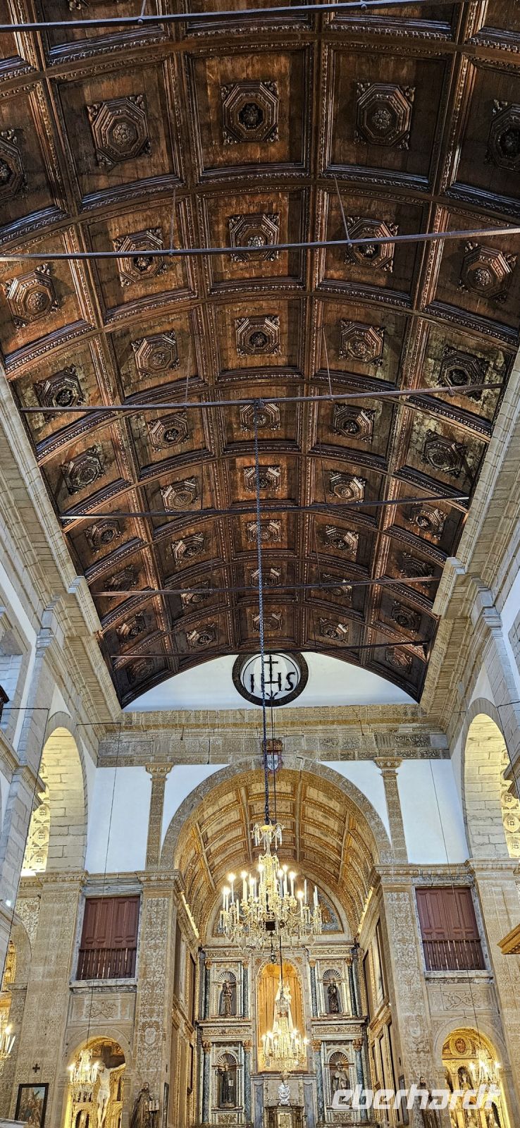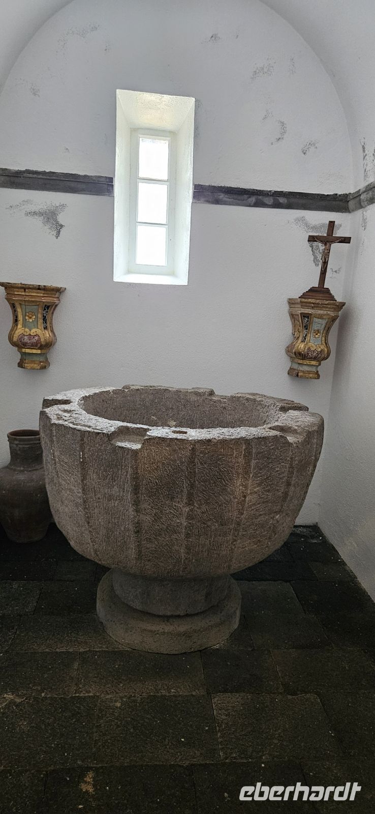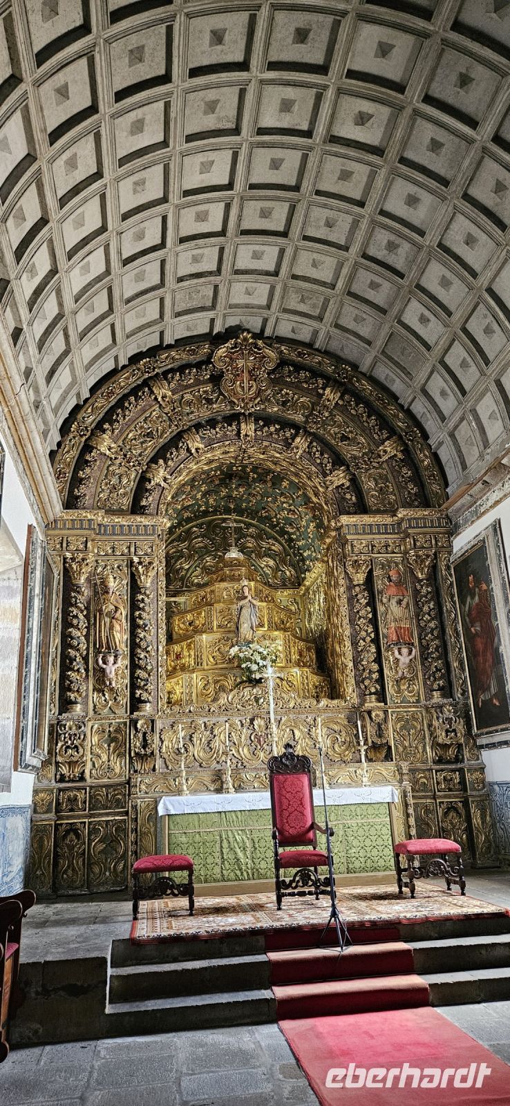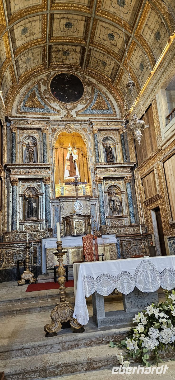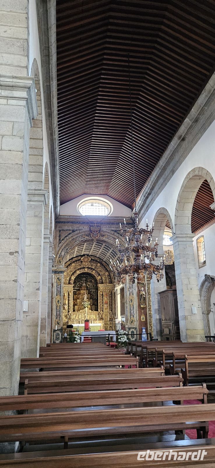 Heute stand die Rundfahrt auf der Azoreninsel Terceira auf dem Programm. Marisa holte uns am Hotel ab und mit dem Bus fuhren wir zunächst auf den Monte Brazil. Am Fusse des Vulkanes steht eine gewaltige Festung und die 4 km lange Festungsmauer umgibt den ganzen Berg. Aber zunächst musste unser Fahrer den großen Bus durch das schmale Eingangstor der Festung manövrieren und das war Milimetersache. Vom Parkplatz auf dem Pico das Cruzinhas hatten wir eine wunderbare Aussicht auf Angra und die Südküste Richtung Sao Mateus. Die anderen Gipfel des Monte Brazil sind nur zu Fuss zu erreichen und einige hatten wir am Vortag auch bewandert. Wir verliessen die Stadt Angra am Stier Kreisverkehr und machten dort eine weitere Fotopause. Dann führte unsere Fahrtroute immer an der Südostküste entlang, vorbei an den beiden Ziegeninseln nach Sao Sebastiao. Diese kleine Stadt ist bekannt für ihre alte Kirche mit Fresken aus dem 15. Jahrhundert, die seit Jahren restauriert werden. Das Hauptportal repräsentiert noch die Atlantische Gotik und die wuchtige Fensterrosette darüber ist etwas ganz Besonderes. Gegenüber ist eine der schönsten Heiliggeist Kapellen zu sehen und wir konnten sie sogar innen besichtigen.