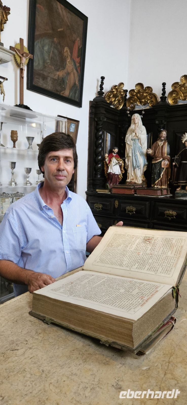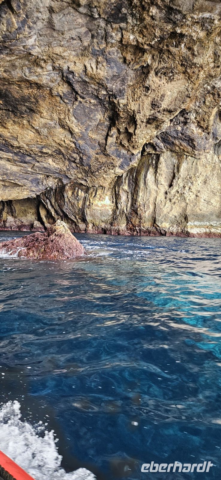 Von der Küste fuhren wir nun hinauf zum Aussichtspunkt Serra do Cume auf 550 m Höhe. Auf der Fahrt dorthin kamen wir an vielen Viehweiden vorbei und auch am "Kälber Kindergarten". Unser nächstes Ziel war Praia da Vitoria an der Nordostküste der Insel. Sie ist nach Angra die zweitgrößte Stadt der Insel und hat einen großen Sandstrand. Wir verschafften uns zunächst vom Aussichtspunkt über der Stadt einen Überblick. In Praia da Vitoria begann die Besiedlung der Insel Terceira um 1450. Der Flame Jacob van Brugge ließ sich mit Erlaubnis von Heinrich dem Seefahrer in der weitläufigen Bucht nieder weil sie gut zum Ankern der Schiffe geeignet war.. Dieser Hafen ist heute der größte der Insel und wurde von den Amerikanern nochmal vergrößert, denn ganz in der Nähe befindet der Flughafen mit einer amerikanischer Militärbasis. Wir gingen zu Fuss durch die Stadt bis zur Kirche Matriz mit einem wunderschönen emanuelischen Eingangsportal. Gleich an der Tür wurden wir von einem netten Herrn empfangen, der sofort erkannte, dass wir uns näher für die Schätze in seiner Kirche interessierten. So zeigte er uns auch die wertvollen Gewänder, die bei einem Seitenaltar aufbewahrt wurden und später die Sanktchristei mit den wertvollen Büchern aus dem Mittelalter. Auch die Kirche Matriz erlitt große Schäden beim Erdbeben 1980 und wurde aufwendig saniert. Das Eingangsportal bekam mit der Sanierung innen einen Vorbau, der einer Heiliggeist Kapelle ähnelt. Nun liefen wir noch durch die Fussgängerzone der Rua de Jesus bis zur Markhalle, und danach brachte uns der Bus zum Mittagessen in der Nähe der Ziegeninseln. In einem wunderschönen privaten Anwesen bekamen wir ein schmackhaftes Mittagessen und gerne wären wir dort noch länger geblieben. Aber es stand noch der Besuch der Höhle Algar do Carvao auf dem Programm. Man betritt diese große Höhle durch den Schlot eines ehemaligen Vulkanes und geht über viele Stufen hinunter zu einem See. Nach diesem Abenteuer wollten wir noch die Meerwasserpools in Biscoitos besuchen und im Atlantik schwimmen gehen. Aufgrund starken Wellenganges war der äusserste Pool zwar gesperrt, aber in den anderen konnten wir unter Aufsicht von zwei Bademeistern schwimmen und uns von den Wellen tragen lassen. Auf der Rückfahrt durch das Innere der Insel kamen wir an vielen Stierweiden vorbei und sahen die großen Boxen zum Transport der Stiere für den Stierkampf an der langen Leine.