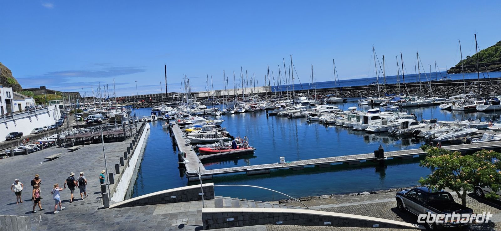Fähre von Sao Jorge über Pico nach Faial, Stadtrundgang Horta, Mittagessen im Peter Cafe Sport, Flug nach Flores am 18.07.2024 – 8,5 km