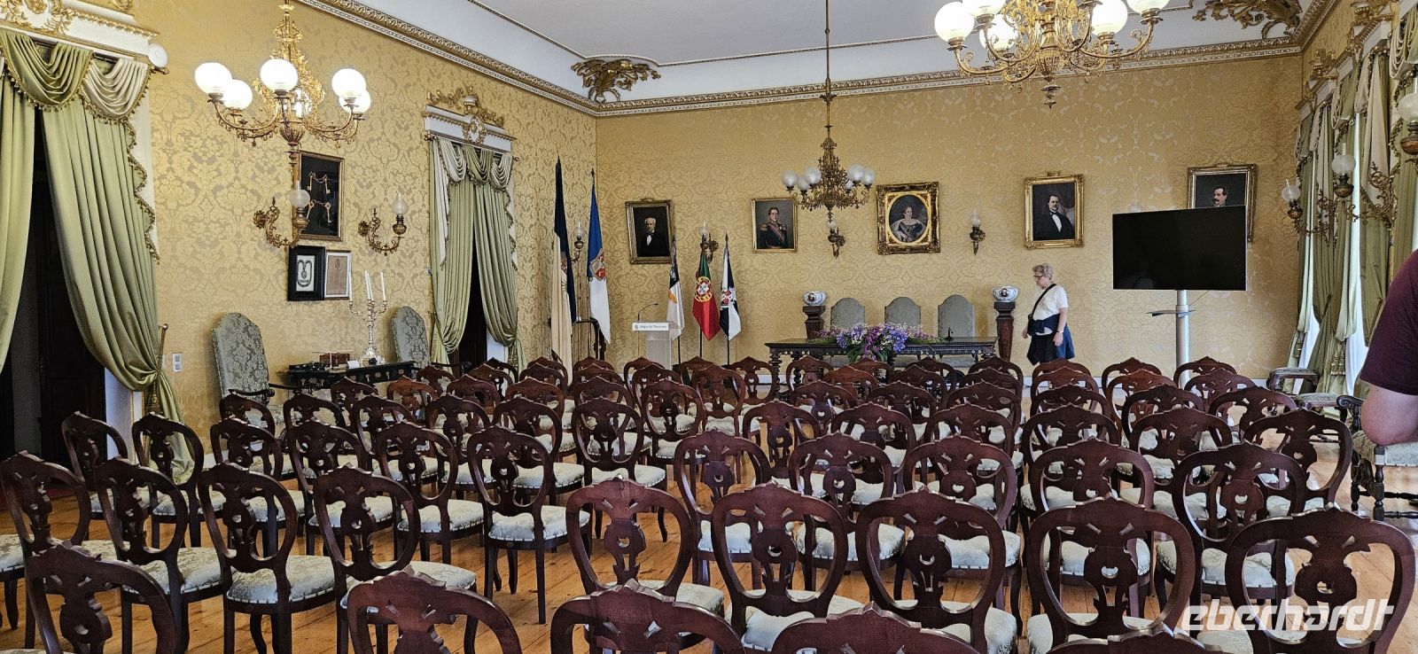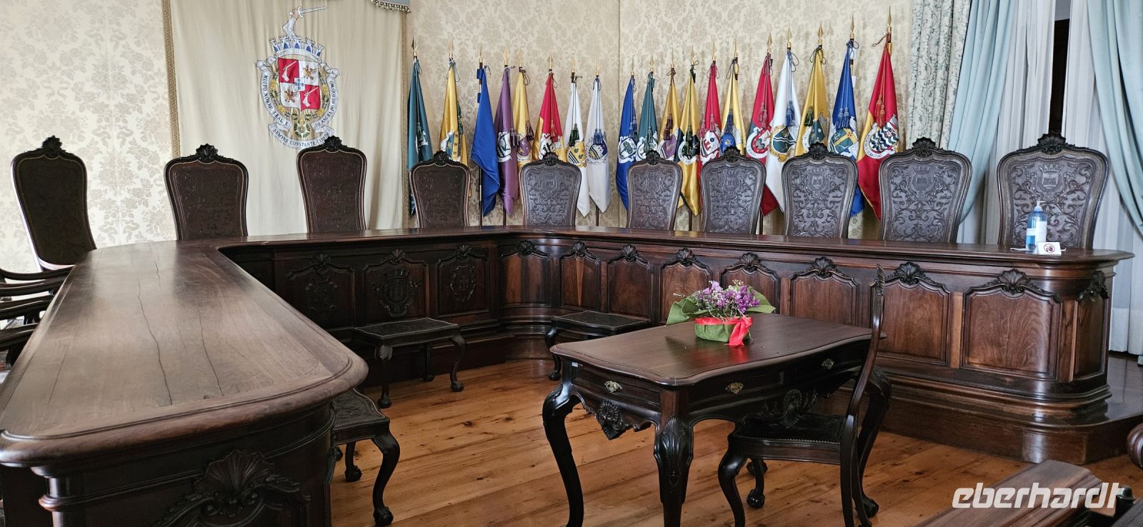Schon ab 6 Uhr gab es Frühstück im Hotel Azoris Angra Garden und wir starteten zur Stadtbesichtigung mit Marisa um 9 Uhr. Das Rathaus gleich neben unserem Hotel besuchten wir zuerst. Der heutige Bau stammt aus dem 19. Jahrhundert und wurde dem Rathaus von Porto nachempfunden. Wir besuchten die prunkvollen Säle im Obergeschoss und staunten über die kunstvoll gehäkelten roten Nelken anlässlich des 50.Jahrestages der Nelkenrevolution in Portugal. Danach spazierten wir noch einmal durch den wundervollen Park Jardim Duque mitten in der Stadt und Marisa zeigte uns einige aussergewöhnliche Pflanzen. An der Jesuitenkirche vorbei kamen wir zum heutigen Parlament im ehemaligen Jesuitenkolleque und weiter zum Theater. Dort machten wir eine Innenbesichtigung und unsere Gruppe versammelte sich auf der Bühne. Gleich hinter dem Theater geht es über Treppen hinauf zur Markthalle, welche leider etwas verlassen wirkte und nur einige Stände Angebote hatten. Wir querten die Hauptstrasse Rua da Se und gelangten zum monumentalen Bau der Kathedrale. 1534 wurden die Azoren durch Papst Paul III zum Bistum erhoben und da brauchte man eine neue Kathedrale. Der Bau begann 1570 und 1618 war die Kathedrale fertig. In den Folgejahren wurden mehrere Kapellen angebaut. Beim Erdbeben 1980 wurde die Kathedrale stark beschädigt und danach umfassend restauriert. Der Besuch ist absolut empfehlenswert, auch der Turm kann bestiegen werden. Allerdings muss für alle Kirchen in Angra Eintritt gezahlt werden. Wir spazierten weiter zur Bucht und zur Marina und konnten uns von der geschützten Lage des Hafens überzeugen. An der Misericordia Kirche vorbei gingen wir zurück zum Hotel. Unterwegs reservierten wir noch Plätze im Restaurant Beira für unser Abendessen. Es folgte eine individuelle Mittagspause und der Nachmittag war frei. Ich bot für den Nachmittag eine Wanderung auf den Monte Brazil an und 5 Gäste machten sich mit mir auf den Weg - 10 km und 240 Hm bewältigten wir zu Fuss im Wald des Monte Brazil bei Vogel Gezwitscher und Begegnung mit Katzen, Hühnern und allerlei anderem Getier.
