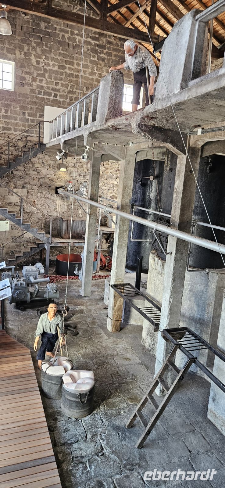 Das Frühstück im Inatel Graciosa war eine Augenweide und es fehlte an nichts. Auch gab es wieder einen Geburtstag zu feiern und mein bestellter "Small Cake with Candle" entpuppte sich zu einer Schokoladentorte, die wir nicht mal als Gruppe aufessen konnten nach dem Frühstück. Wir bekamen vom Hotel für unterwegs ein Picknick und starteten dann mit dem Bus in den Südosten der Insel zur Caldeira. Durch den einzigen Tunnel der Insel gelangten wir in das Innere der Caldeira und von dort wanderten wir hinauf zum Caldeirarand und immer oben entlang mit herrlichen Ausblicken auf die Insel und die Küstenlinie. Es war wieder sehr warm, aber der Himmel mit Wolken bedeckt und so war die Wanderung ganz entspannt. Nach einem Abstieg mit schönem Blick auf Luz gingen wir wieder bergan und über viele Stufen hinauf zur Höhle Gruta Maria Encantada. Durch diesen Lavatunnel gingen wir hindurch und es gab eine Aussichtsplattform darüber, von wo wir unseren Wanderweg noch einmal verfolgen konnten. Wieder unten am Weg wartete unser Bus und brachte uns zurück in die Caldeira, wo wir am Picknickplatz unsere Mittagspause machten. Danach fuhren wir ein kurzes Stück zur Schwefelhöhle und stiegen im Turm die 184 Stufen hinunter. In dieser beeindruckenden Höhle waren wir alleine unterwegs und konnten uns in Ruhe umschauen. Wieder oben fuhren wir mit dem Bus an die Südostspitze von Graciosa und besuchten das Thermalbad von Carapacho. Das Thermalwasser mit einer Temperatur von 36 Grad kann in einem Innenpool genutzt werden und draussen gab es grosse Meerwasserpools, in die mit den Wellen immer frisches Atlantikwasser in die Becken gespült wurde. Das Schwimmen war ein Hochgenuss und wir nutzten es ausgiebig. Auf der Rückfahrt zum Hotel machten wir in Praia einen Halt, um uns die Windmühlen anzuschauen und im Queijada Werksverkauf uns mit Honig und den leckeren Queijadas einzudecken.