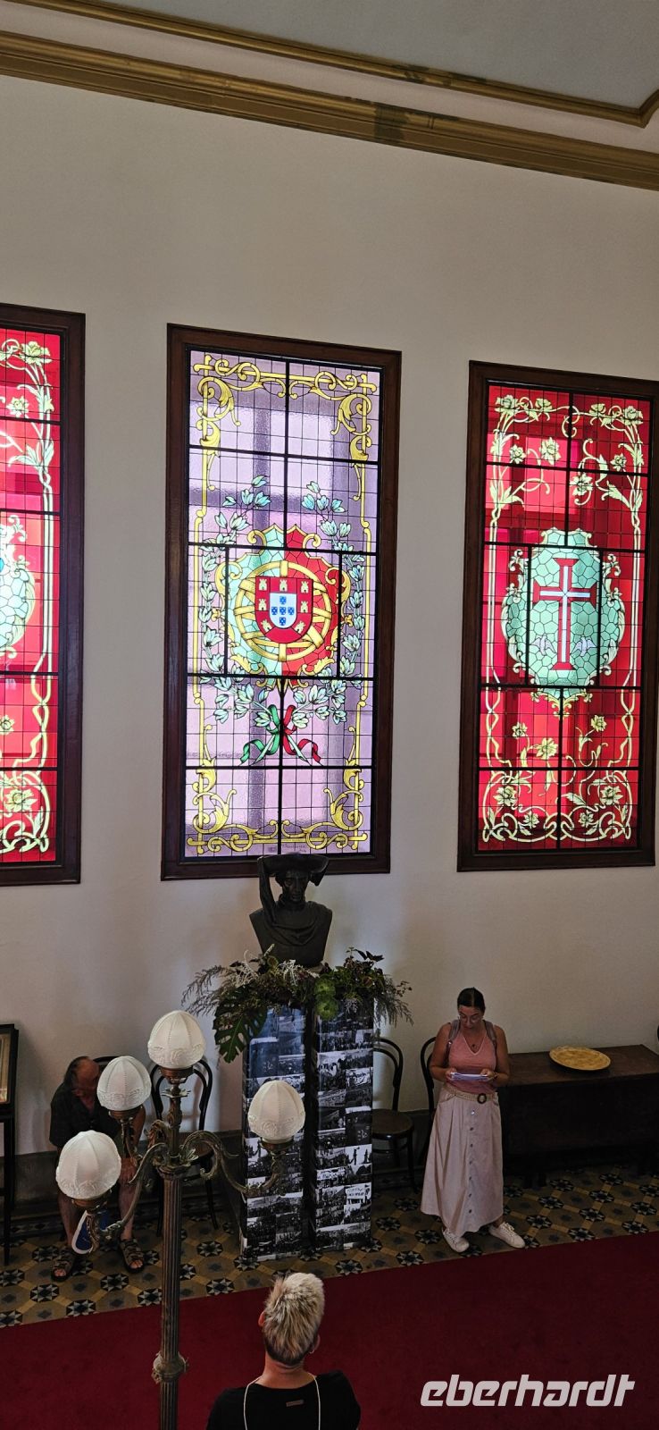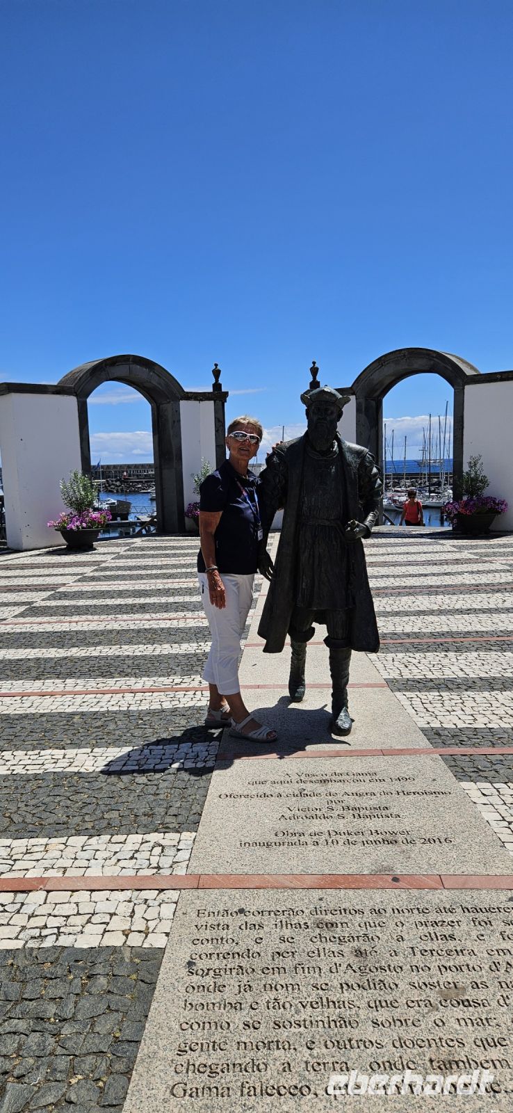 Heute gab es einen 80.Geburtstag in der Gruppe zu feiern und das begann mit einem Geburtstagstisch im Restaurant des Hotels beim Frühstück. 9 Uhr kam Marisa zu uns und wir begannen unseren Stadtrundgang durch Angra mit dem Besuch des Rathauses gleich neben unserem Hotel. Der heutige Bau des Rathauses ist der dritte an dieser Stelle und wurde dem ehemaligen Rathaus von Porto am portugisieschen Festland nachempfunden. In diesem Jahr feiert Portugal den 50.Jahrestag der Nelkenrvolution und so schmücken zwei übergroße Nelken die Fassade des Rathauses und drinnen gibt es viele Nelken, die von fleissigen Frauen gehäkelt wurden. Im Obergeschoss besuchten wir die 2 prunkvollen Säle und im Treppenaufgang steht die Büste von Heinrich dem Seefahrer, dem der Erfolg der Entdeckungsfahrten der portugiesischen Seefahrerflotte ab dem 15.Jahrhundert zu verdanken ist. Unser Weg führte weiter durch den Jardim Duque da Terceira , zur ehemaligen Jesuitenkirche und dann zum Theater. Unsere Gruppe sang von der Bühne des Theaters für unser Geburtstagskind ein Ständchen und als Dank folgte das Lied "Alt wie ein Baum..." Beim Besuch der Markthalle spendierte ein Reisegast eine Azorenananas und Marisa ging danach mit uns in die Fischhalle, wo uns vom Verkäufer stolz die besten Fische präsentiert wurden. Danach querten wir die Hauptstrasse und kamen zur Kathedrale. Dieser prächtige Bau geht auf das Jahr 1570 zurück und er wurde anstelle einer zu klein gewordenen Kirche aus der Zeit der Entdeckerfahrten errichtet. Angra war schon damals Bischofssitz, weil die Azoren ein ganz wichtiger Teil der Welt für die Seefahrt waren. 1980 am Neujahrstag gab es ein schweres Erdbeben auf Terceira und besonders in Angra waren große Schäden zu verzeichnen. Der Wiederaufbau begann sehr schnell und bereits 1983 erhielt Angra de Heroismo den UNESCO Weltkultur Erbe Titel. Heute gibt es nur noch ganz wenige Gebäude in der Stadt, die nicht renoviert wurden und so ist ein Spaziergang durch die Innenstadtstrassen etwas sehr besonderes. Die prächtigen Bürgerhäuser sind verschieden farbig gemalt an den Tür- und Fensterumrahmungen und in den Häusern erwarten ganz verschiedenen Geschäfte die Besucher. Unser Weg durch die Stadt führte weiter zum Hafen und von dort ist auch die riesige Festung Sao Joao Baptista gut zu sehen. Sie wurde Ende des 16.Jahrhunderts unter spanischer Herrschaft errichtet und zur Lagerung der Gold- und Silberschätze aus Süd- und Mittelamerika gebraucht während die Schiffe in Angra Wasser und Proviant aufnahmen. Heute wird die Festung vom portugisischen Militär genutzt. Wir spazierten weiter zur Misacordio Kirche, wo auf dem Vorplatz ein Denkmal für Vasco da Gama steht, und dieser Herr ist ein sehr beliebtes Fotomotiv. In der Nähe unseres Hotels endete unser Rundgang und wir begaben uns sogleich zu unserem reservierten Tisch bei der Jesuitenkirche und genossen unser Mittagessen. Der Nachmittag war frei und zum Abendessen gingen wir ins Restaurant Cervejaria do Canto.