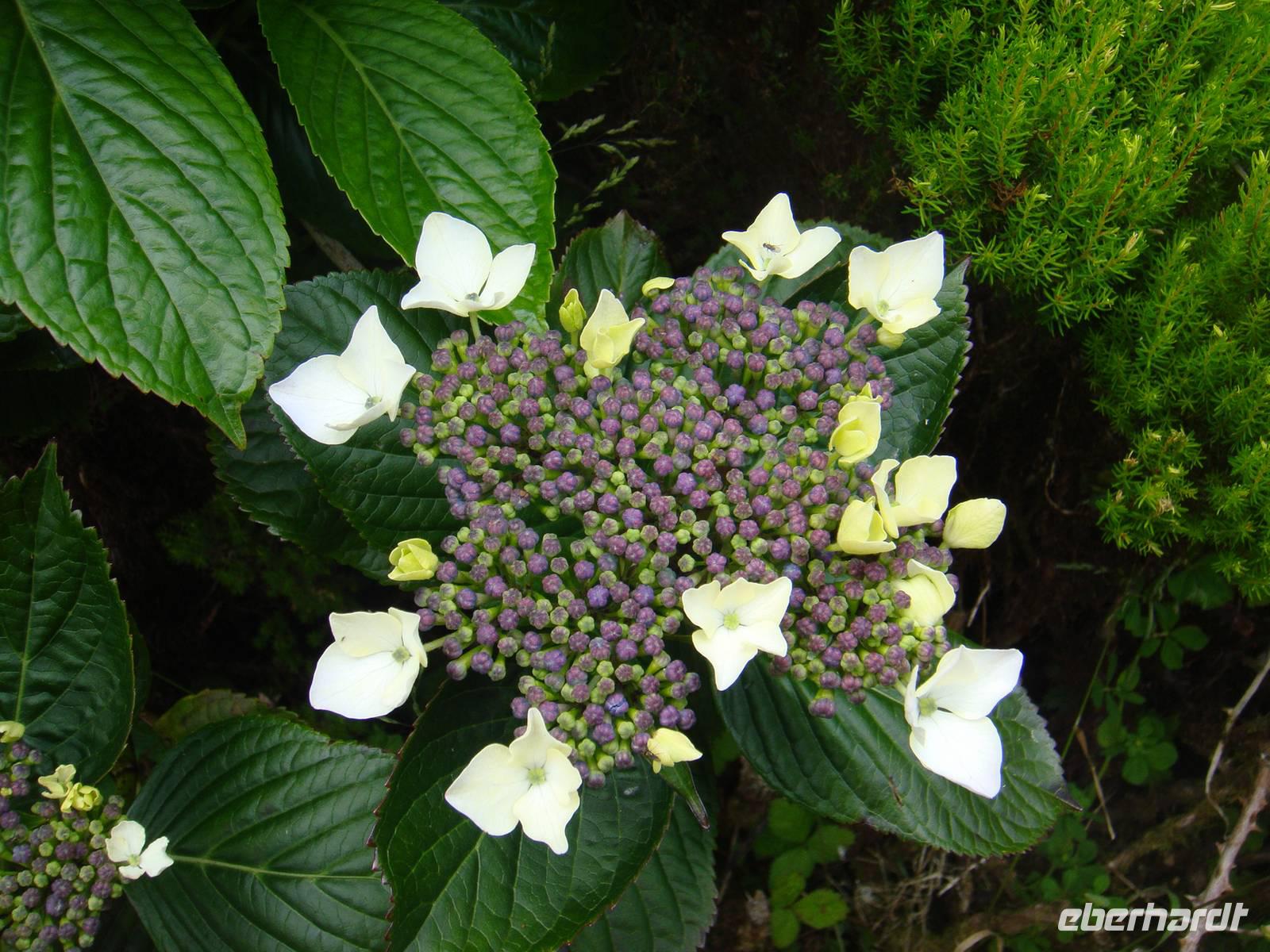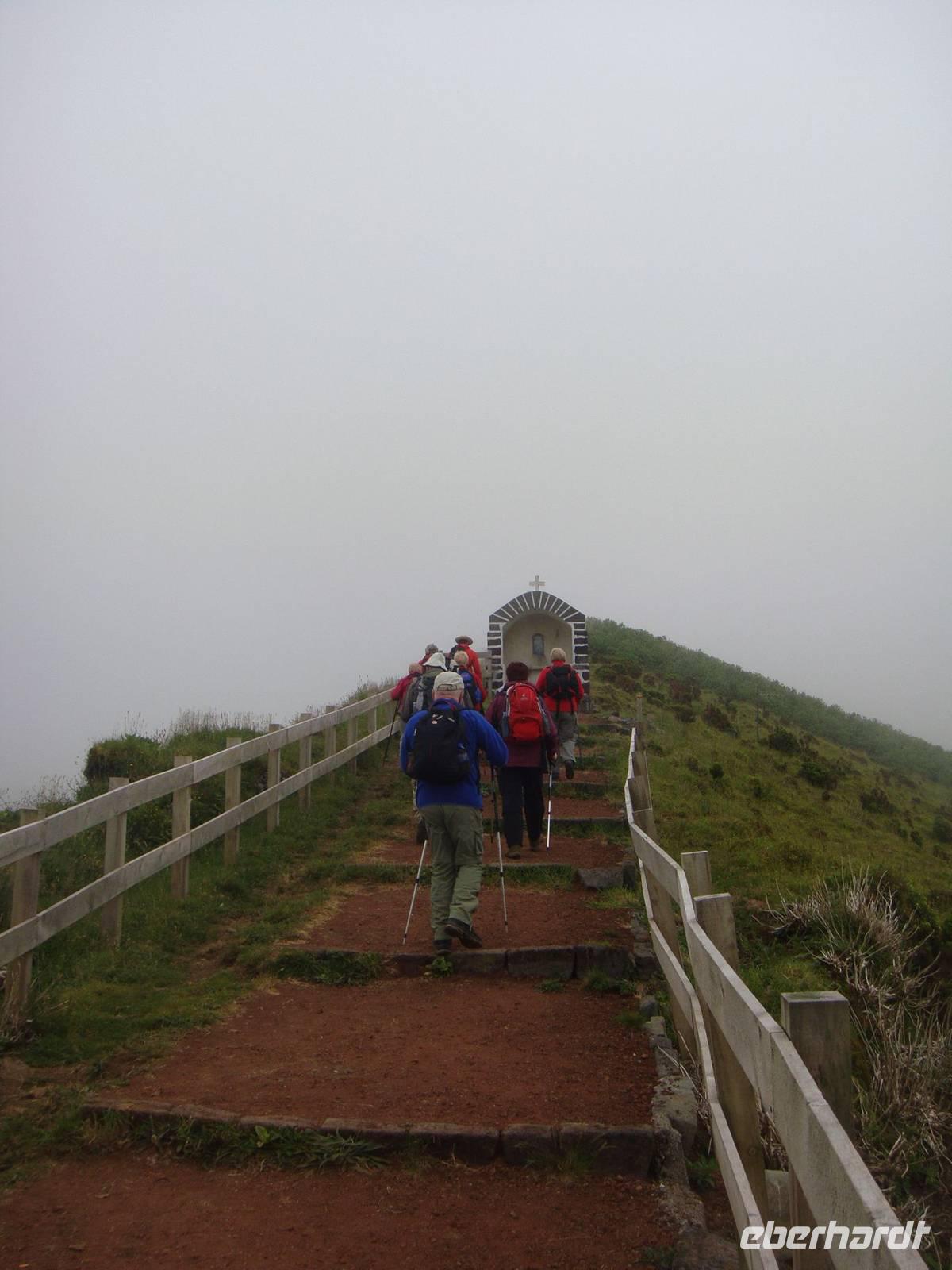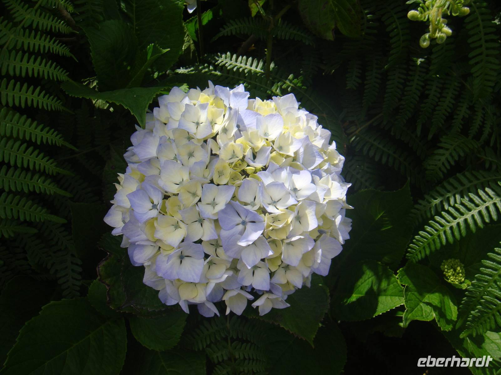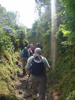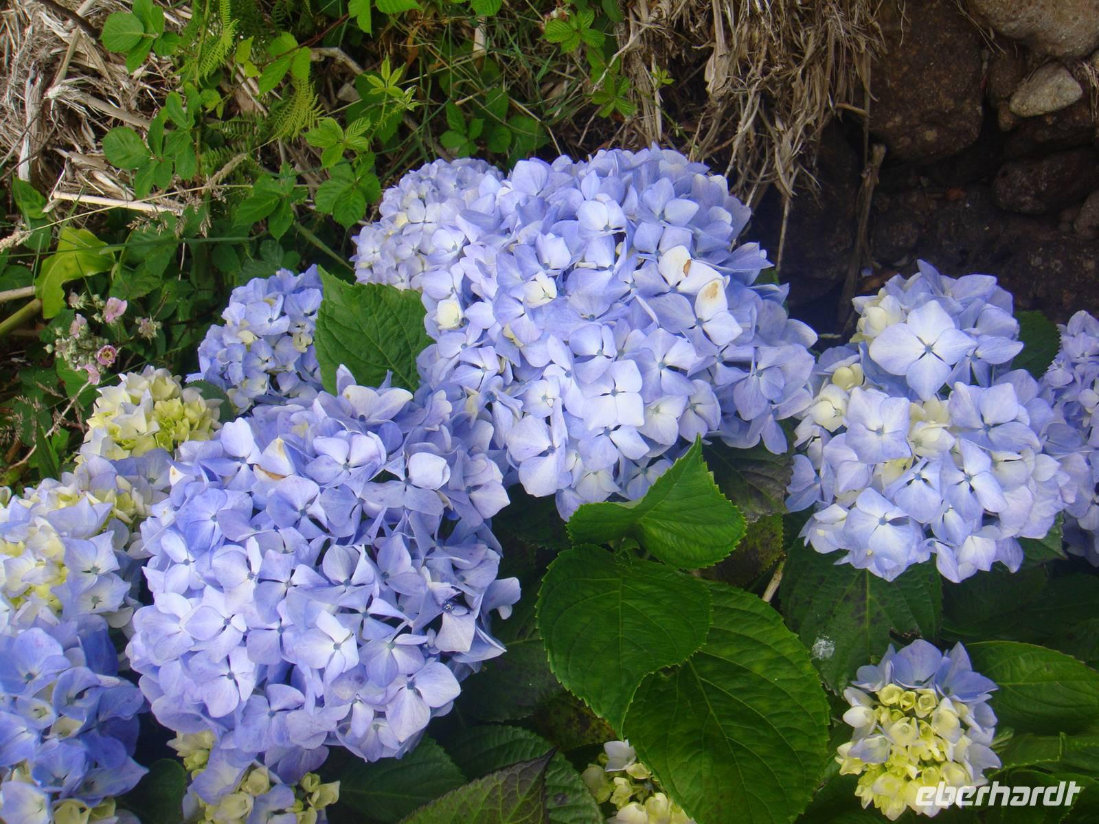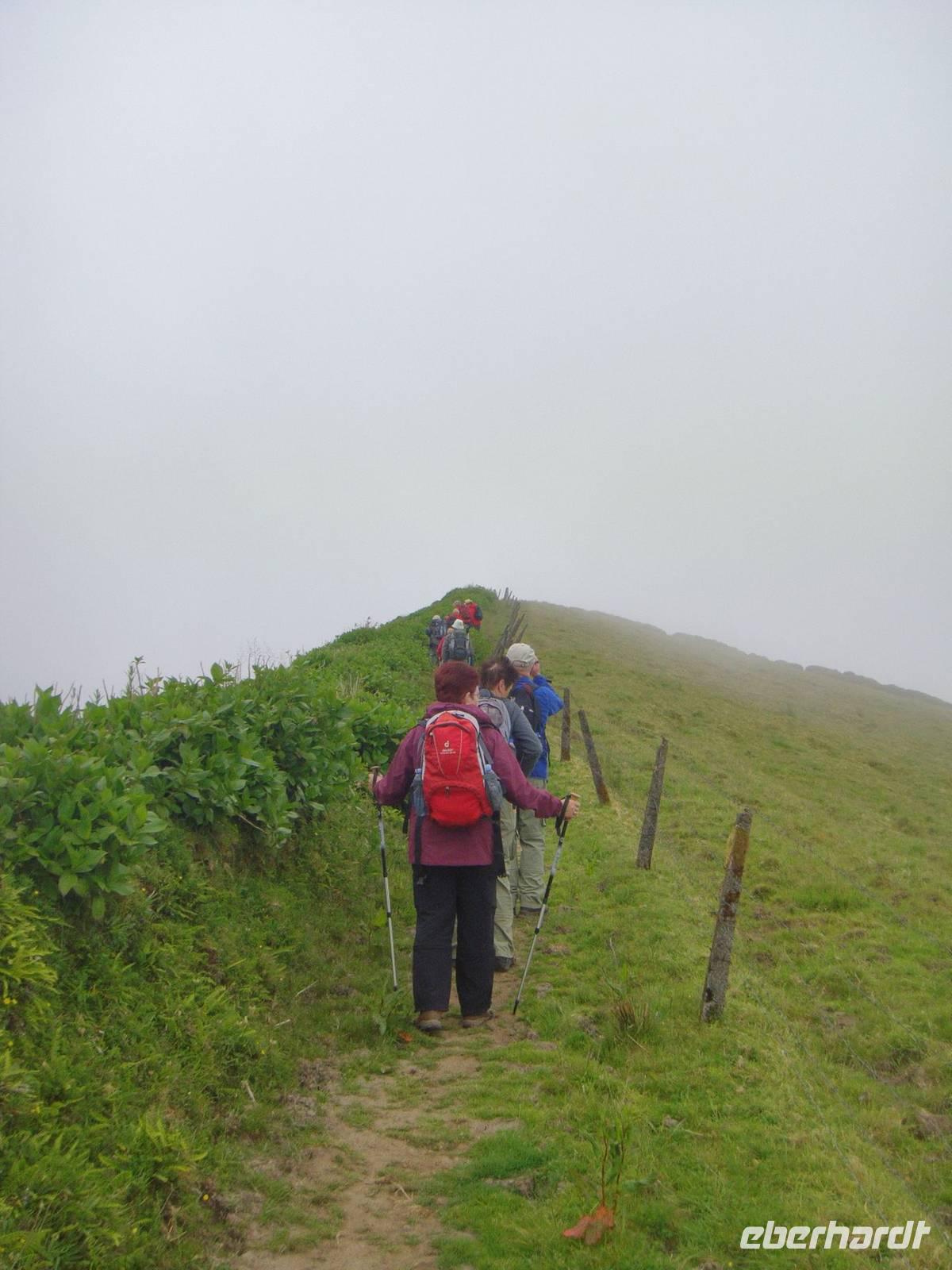 Der Nebel lässt uns nur wenige Blicke in den Krater erhaschen aber zur Mittagstunde kitzelte uns die Sonne an der Nase und wir lassen uns unser Picknick auf einer schönen grünen Wiese und unter blauem Himmel schmecken. Gestärkt setzten wir unseren Weg wieder vorbei an farbenprächtigen Hortensien fort. Am Nachmittag erreichen wir wieder unseren Bus.
