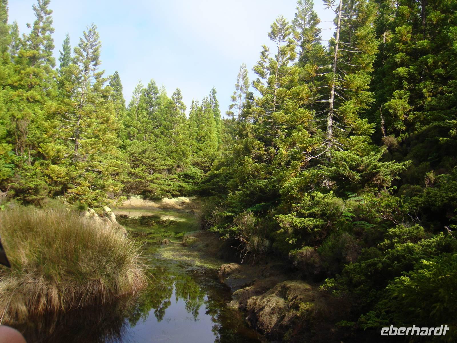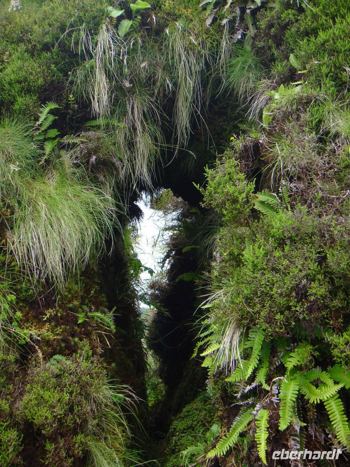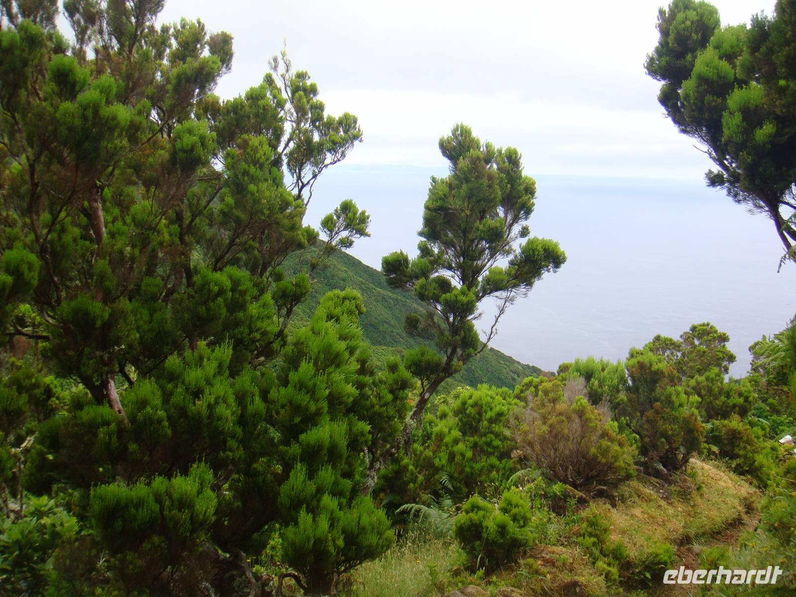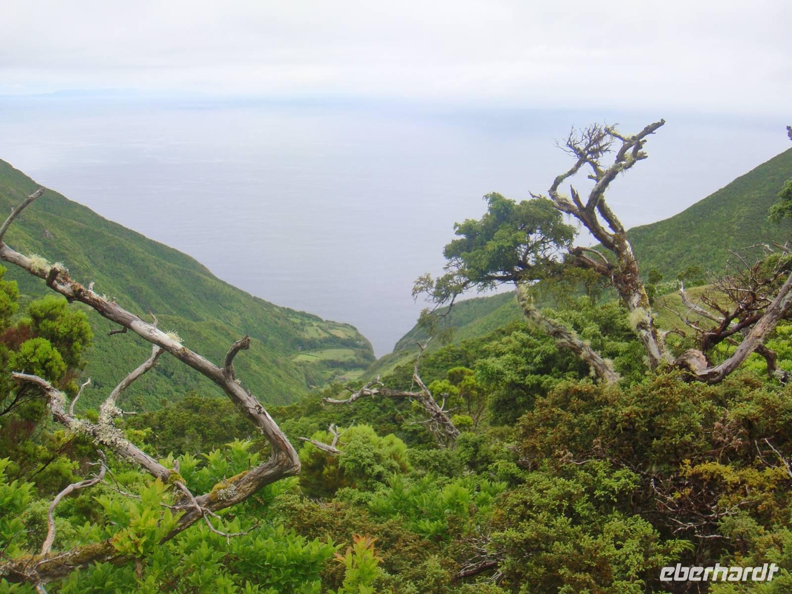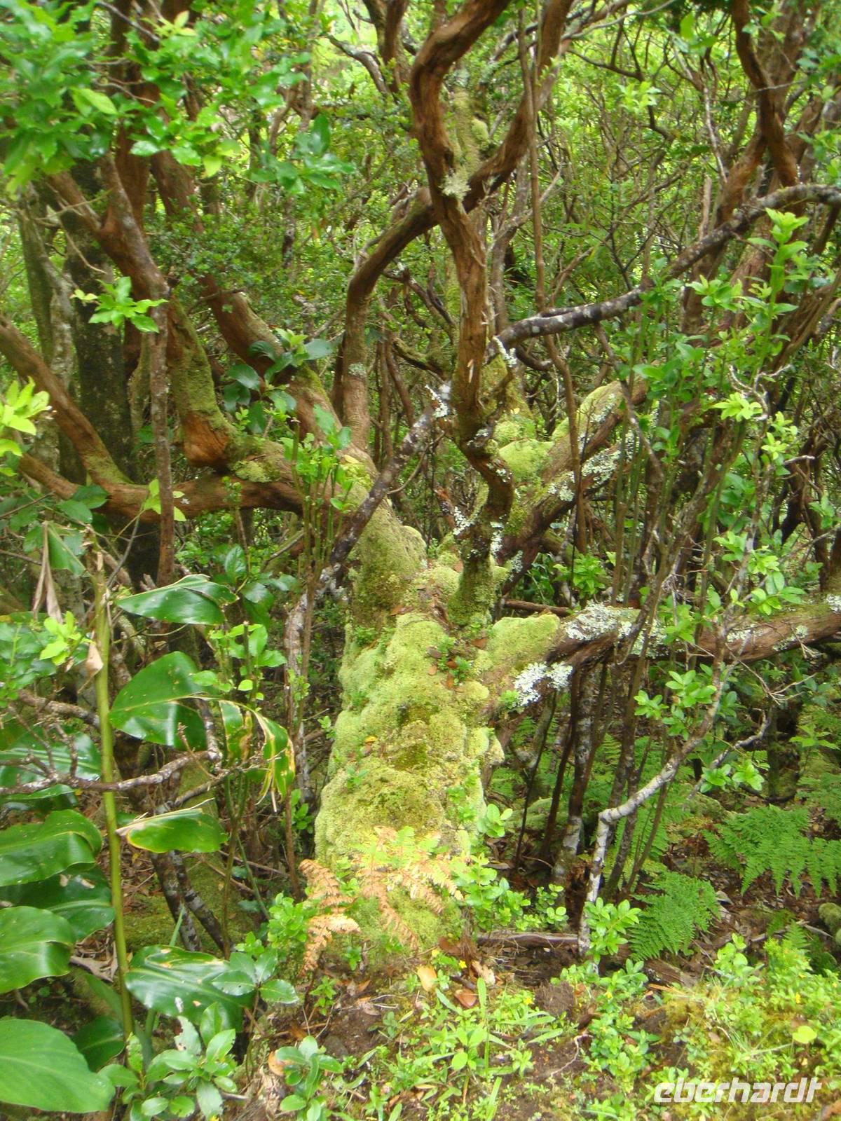 Jose erklärt uns, dass der Krater von Caldeira auf über 900 Metern Höhe liegt und ca. 1500 Meter Durchmesser misst. Fasziniert von der ursprünglichen Vegetation wandern wir durch das Naturschutzgebiet mit vielen Hortensienhecken, Zedern, Wacholder und Farnen.