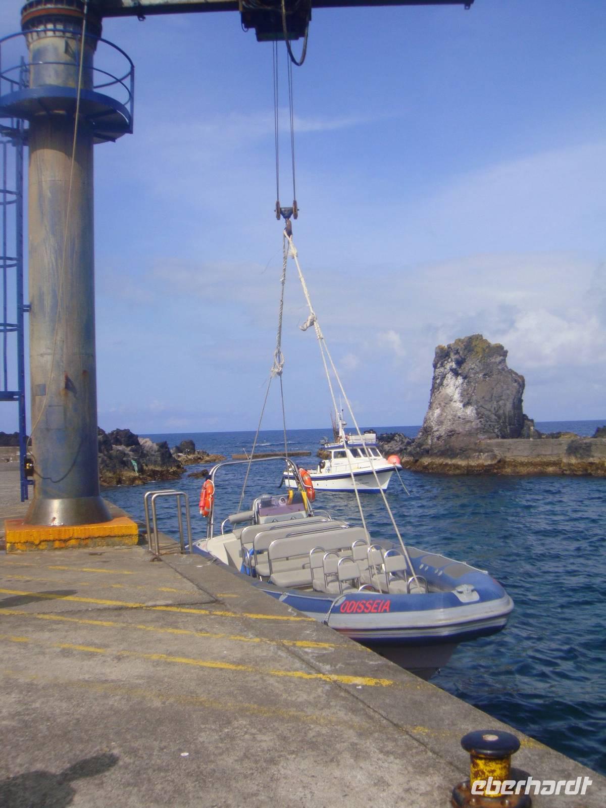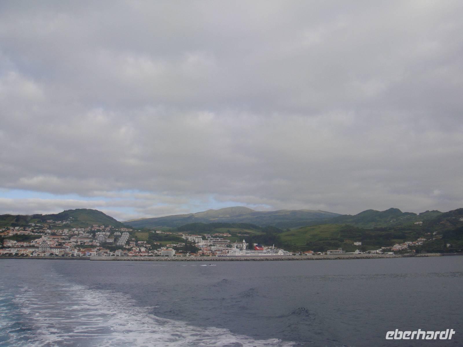 Am Späten Nachmittag geben wir unser Gepäck im Hafen auf und legen pünktlich gegen 18:15 Uhr in Richtung Sao Jorge mit einem Schnellschiff und kurzem Stopp auf Pico ab.