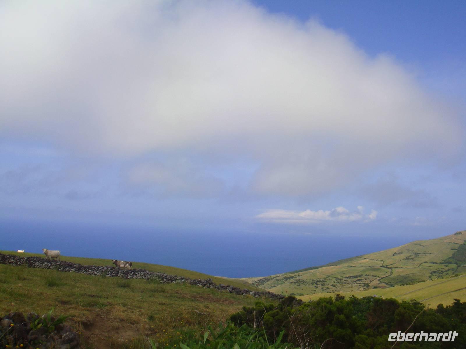 Während unseren Picknicks genießen wir wieder bei strahlend schönem Wetter den Blick über die Südküste sowie nach Sao Miguel.