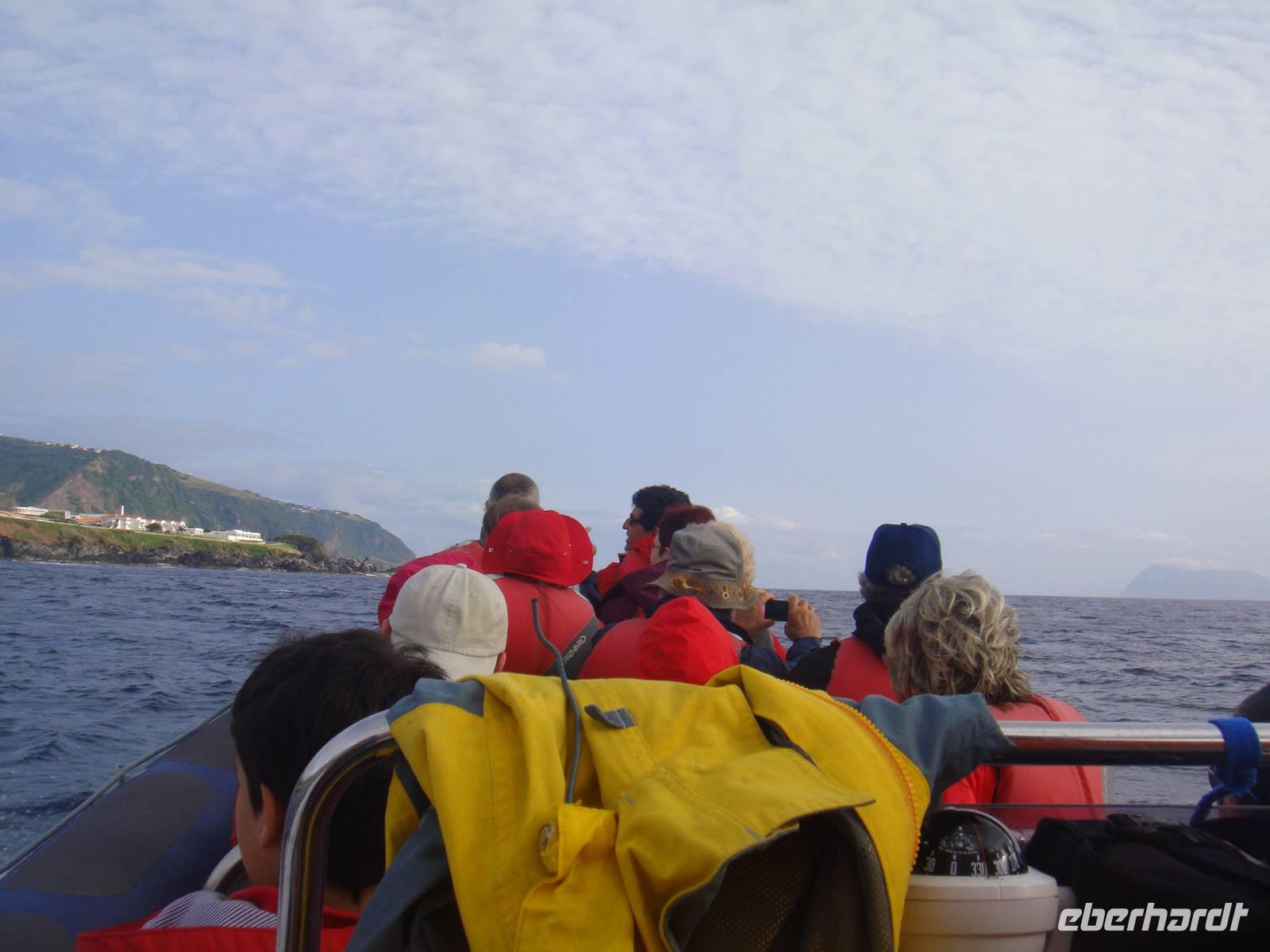 Für uns geht es nach dem Frühstück zum Hafen. Auf dem Beobachtungsboot stellt sich die Crew vor. Zu Beginn der Ausfahrt erhalten wir eine Einweisung über das Verhalten an Bord.