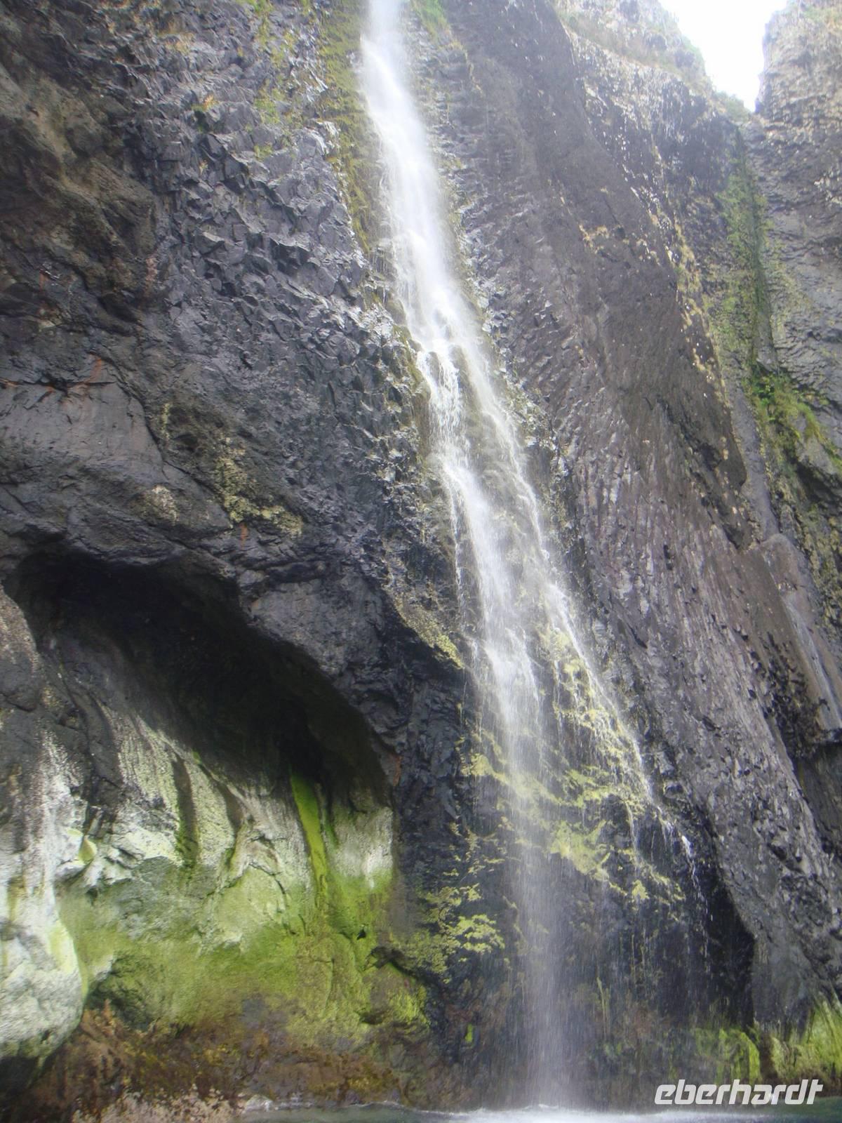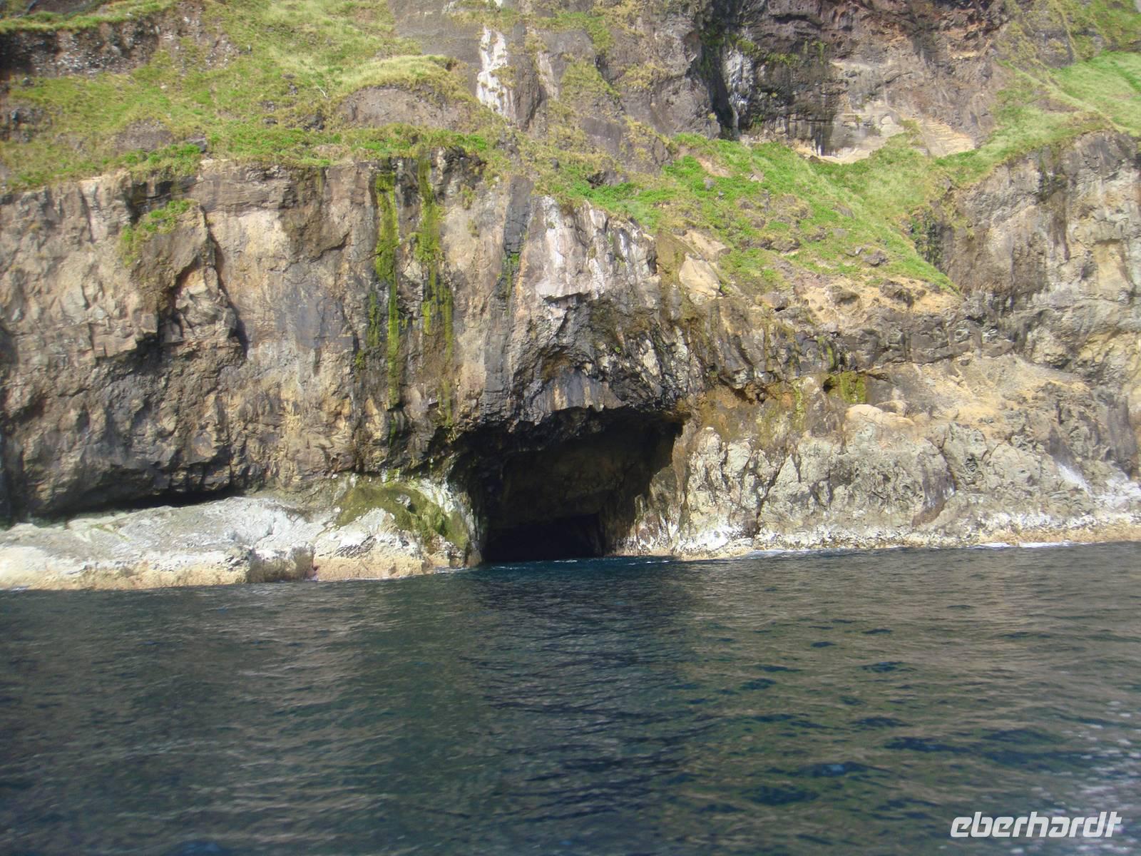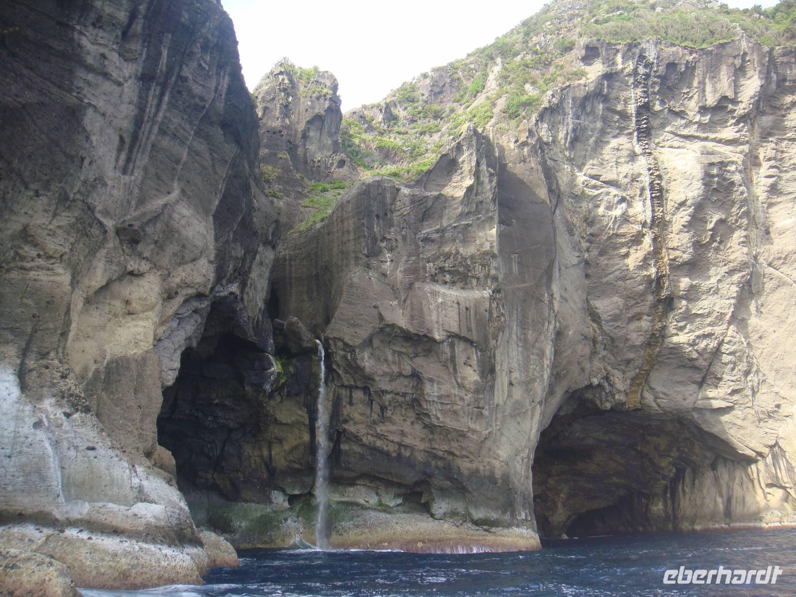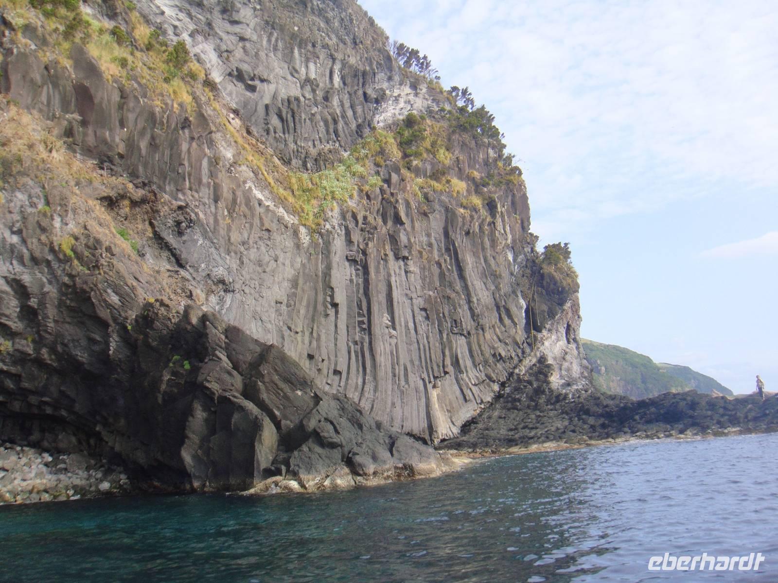 Nach dem Anlegen der Schwimmwesten waren für diese abenteuerliche Bootsfahrt zur Insel Corvo beriet. Während der 1,5 stündigen Fahrt erleben wir die Naturschönheiten entlang der Küste von Flores, mit Wasserfällen, kleinen Höhlen und Basaltfelsen. Entspannt erreichen wir bei strahlendem Sonnenschein die kleinste Azoren-Insel. Hier findet man lediglich ein kleines Dorf mit weniger als 399 Einwohnern. Es gibt nicht viele Gäste die sich in diese reizvolle Abgeschiedenheit verirren. Darüber waren wir nicht unglücklich. Denn so wandern wir ganz allein von Cova Vermehlha bis Vilas Nova do Corvo und genießen unser Picknick an der frischen Luft der Azoren und in idyllischer Ruhe.