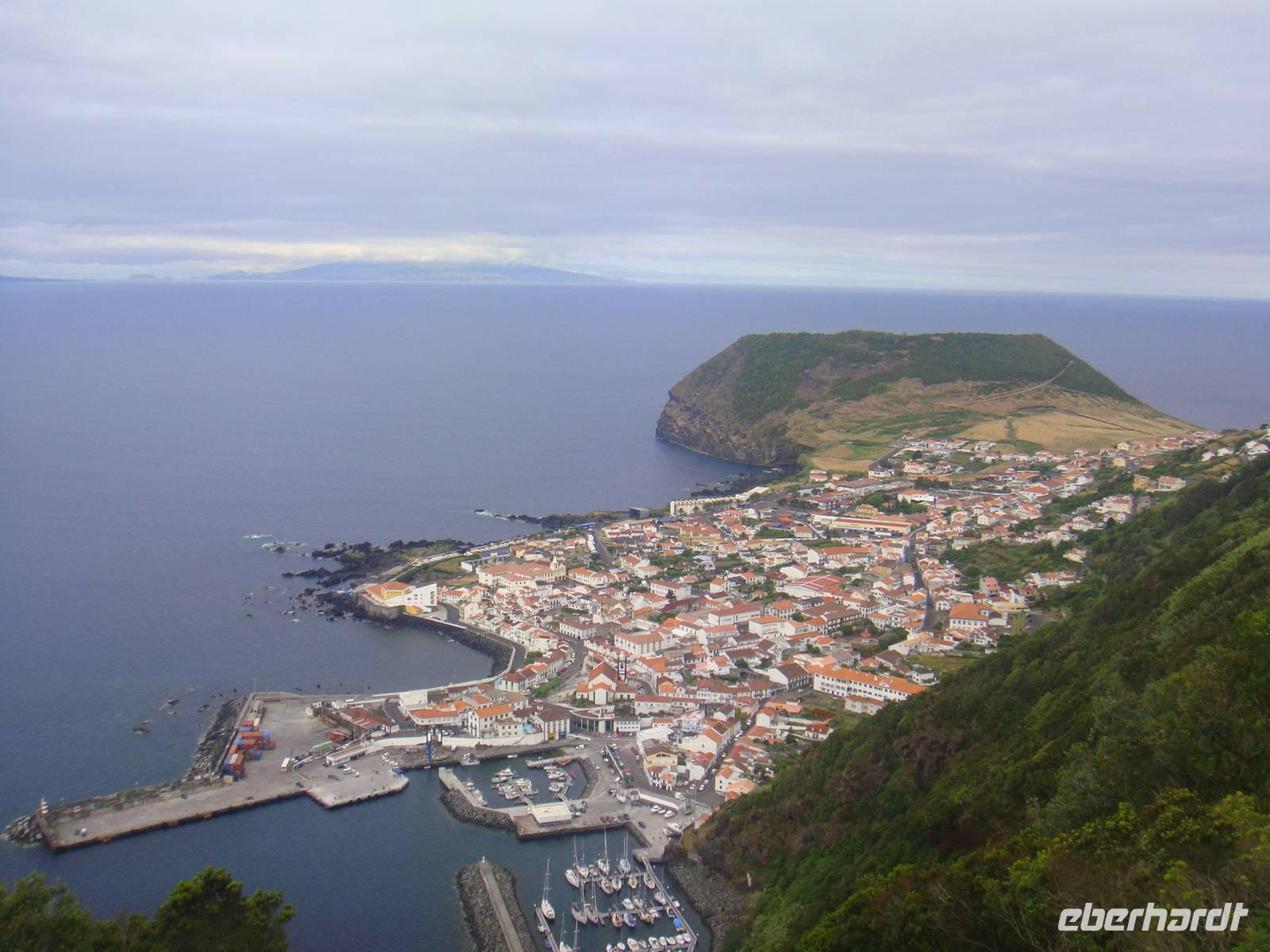 Mit nur 30 Minuten Verspätung fliegen wir zurück nach Faial. Die Flugzeit beträgt 30 Minuten und unser Fahrer der ersten Tage nimmt uns in Empfang.