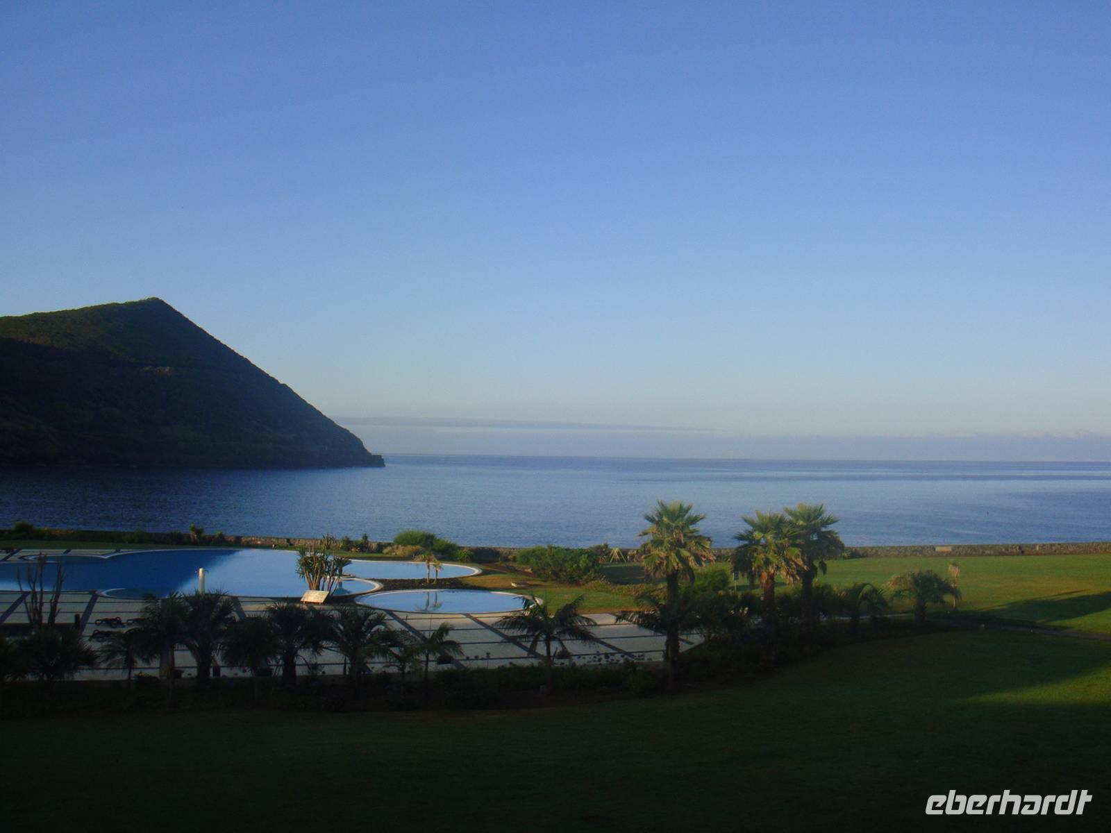 Um 19:30 erreichen wir die dritte Insel Sao Jorge. Diese Insel zählt zu der Zentralgruppe der Azoren, ist 233,5 Quadratkilometer groß und liegt 53 Kilometer lang gestreckt von Nordnordwest nach Südsüdost und bis zu acht Kilometer breit zwischen den Nachbarinseln Graciosa und Terceira im Norden, Faial im Westen und Pico im Süden. Wir wohnen in der Hauptstadt Velas im Hotel „ Sao Jorge Garden".