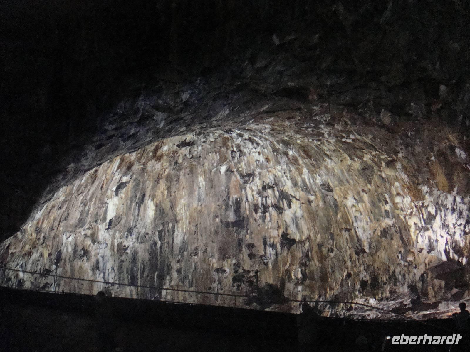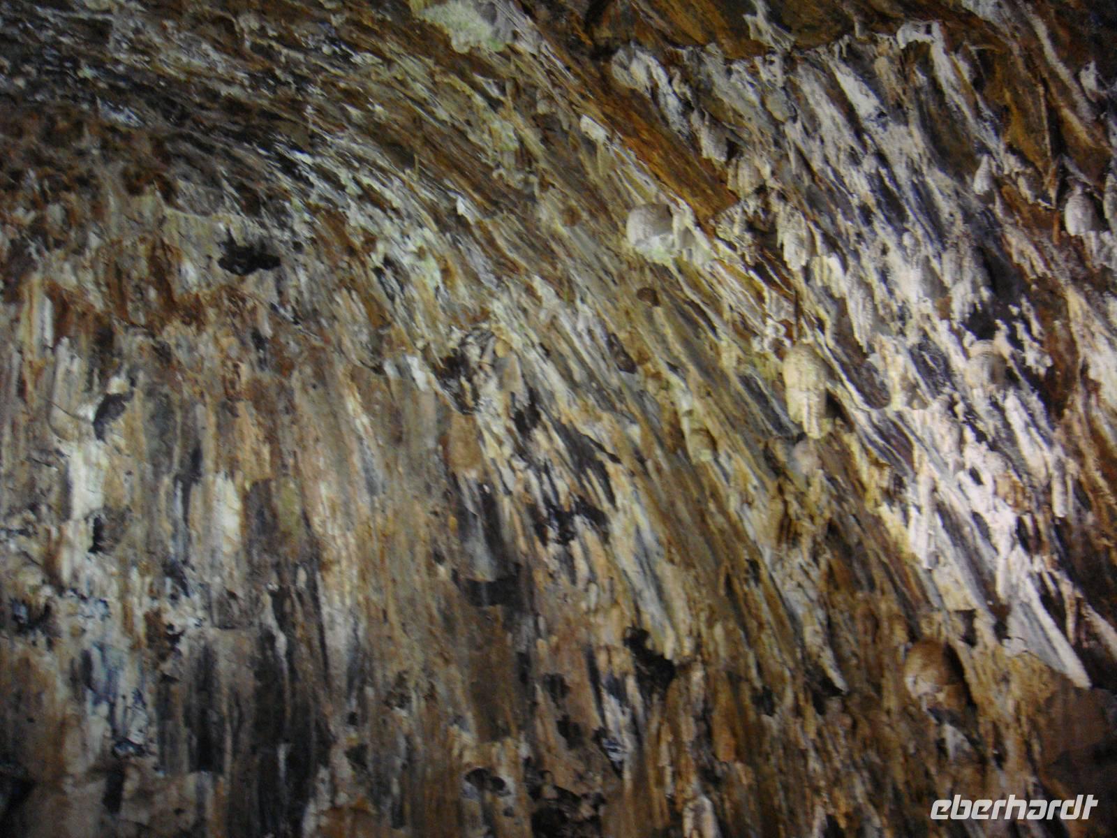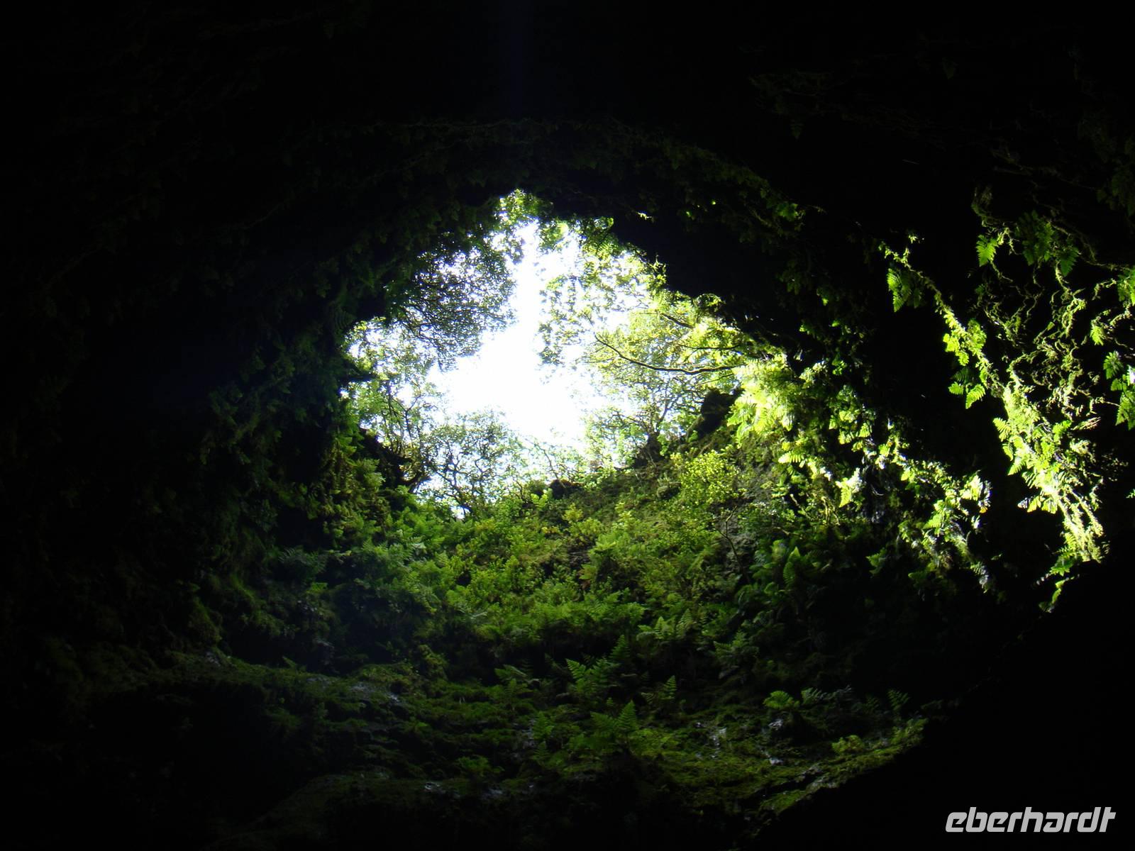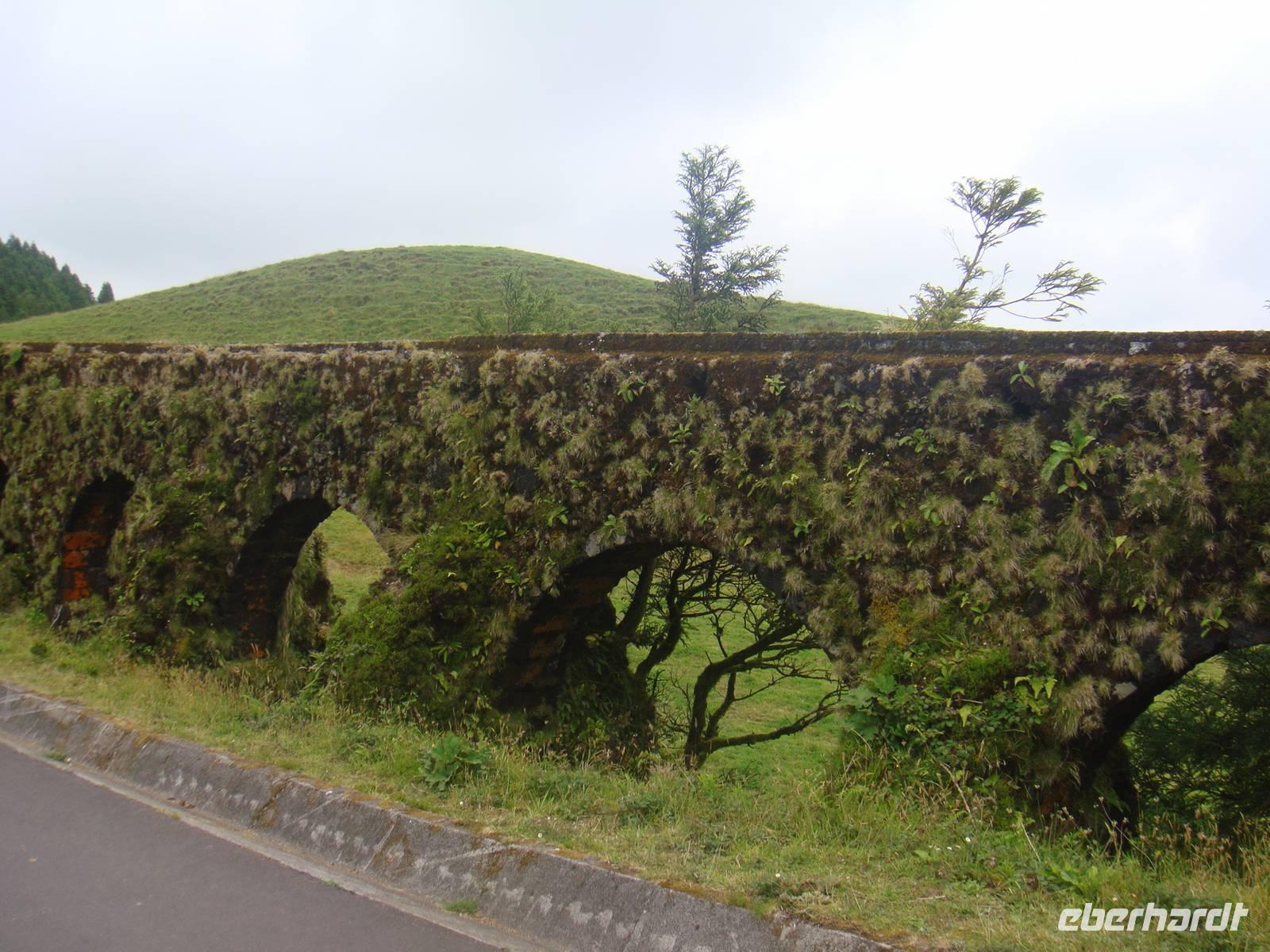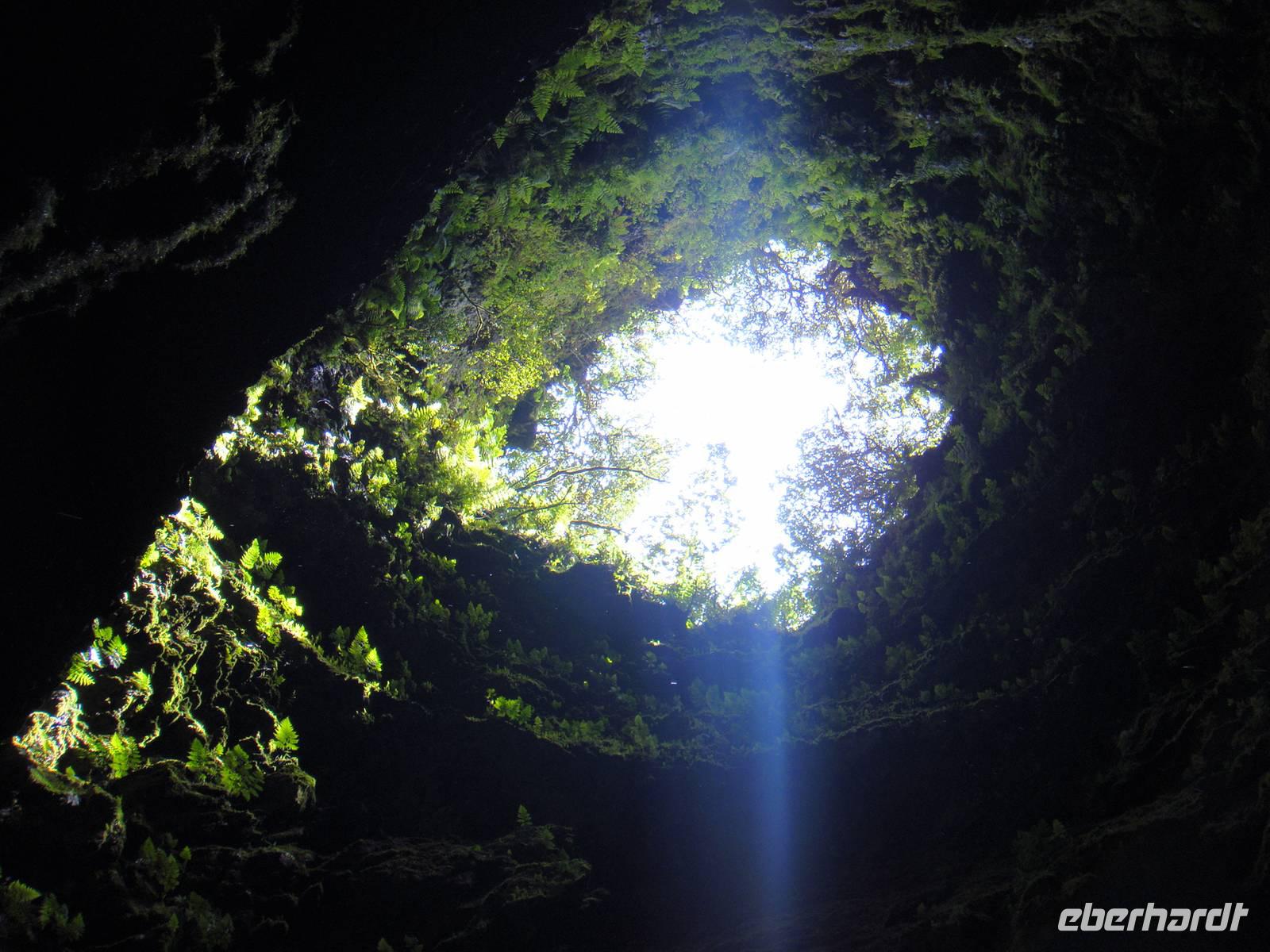 Nach diesen kulinarischen Köstlichkeiten setzen wir unsere Reise fort und unsere nächste Etappe ist das Naturdenkmal „Algar do Carvao" Dieser Vulkanschlott liegt in einer Höhe von ca. 550 Metern und ist ungefähr 100 Meter tief. Über Stufen steigen wir in den alten Schlot hinab und sehen den farbenfrohen Lavakamin, der die ausgestoßene Lava beim Erkalten hinterließ. 90 Meter unter der Erdoberfläche gibt es einen 15 Meter tiefen See. Das Licht viel fast senkrecht durch den Vulkanschlot und brachte Moose und Farne besonders gut zur Geltung. Was für ein Naturschauspiel.Im Dorf „Biscoites" nehmen wir in einer Käserei eine Kostprobe und gönnen uns ebenso ein Schlückchen des typischen Süßweins „Arguardente Vehlho".