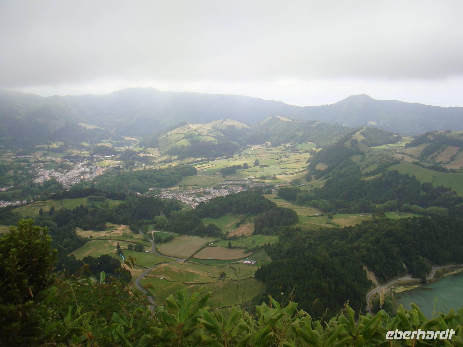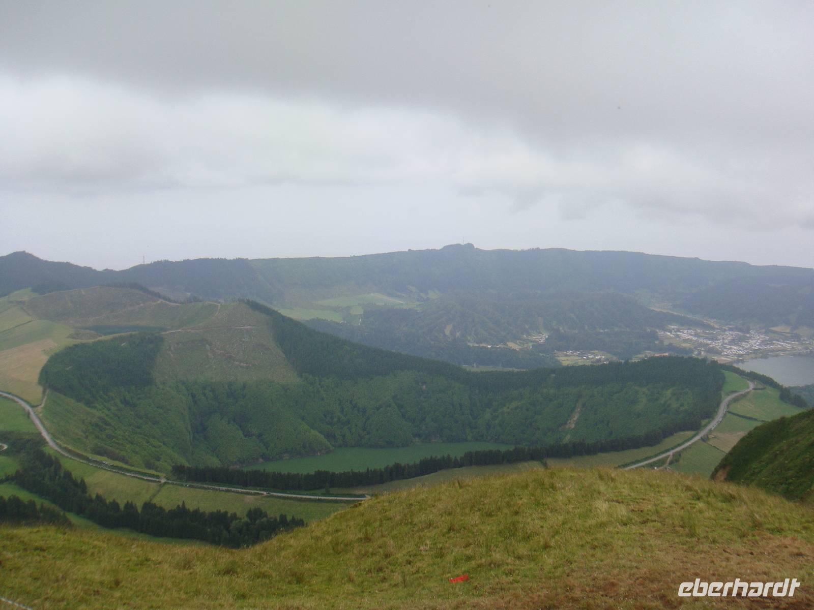 Unser letzter Wandertag hält noch einen weiteren Höhepunkt für uns bereit. Wir erobern die Krater „Sete Cidades" mit den beiden Kraterseen „Lagoa Verde" und „Lagoa Azul", dem grünen und dem blauen See
