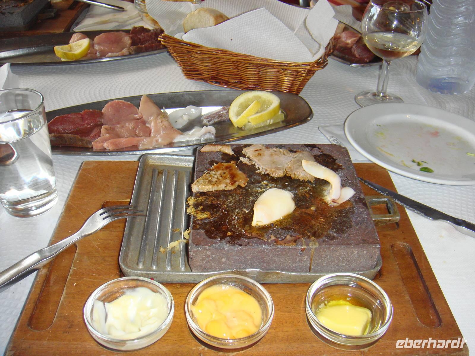 Erfrischt geht es nun zurück zum Hotel. Beim Essen vom heißen Stein, kommen wir nicht nur zu kulinarischen Genüssen sondern auch etwas ins Schwitzen.