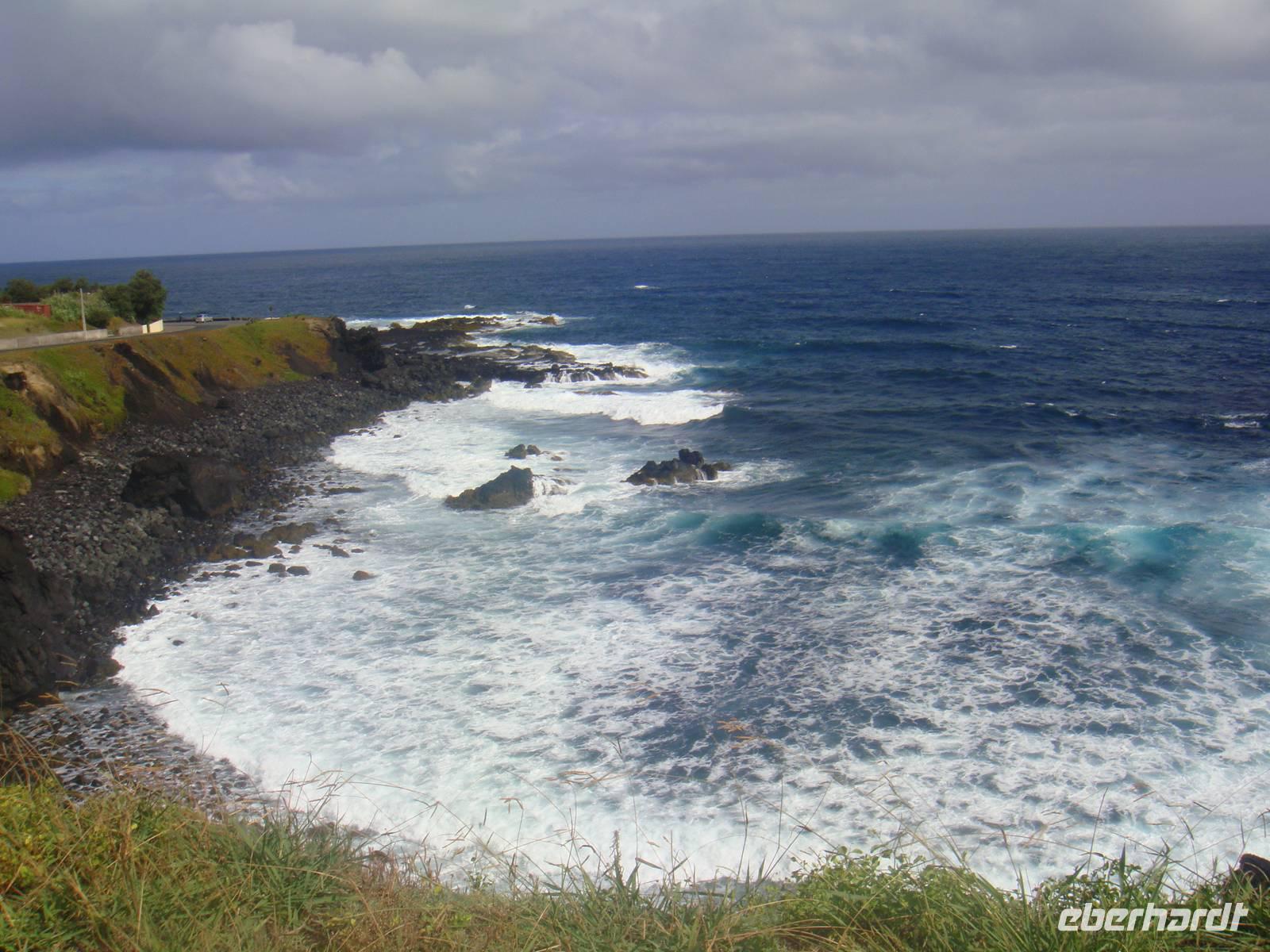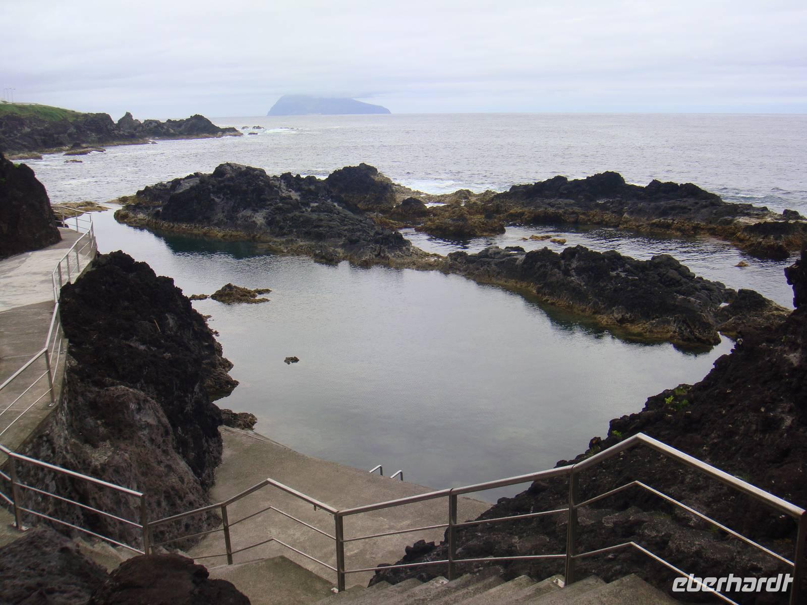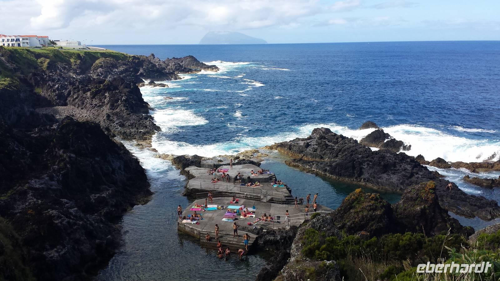Weiter geht es zur Halbinsel "Capelinhos". Sie ist durch einen Vulkanausbruch im Jahre 1957 entstanden. Nach ein paar Schnappschüssen kühlen wir uns im nah gelegenen Schwimmbad im Atlantik ab.