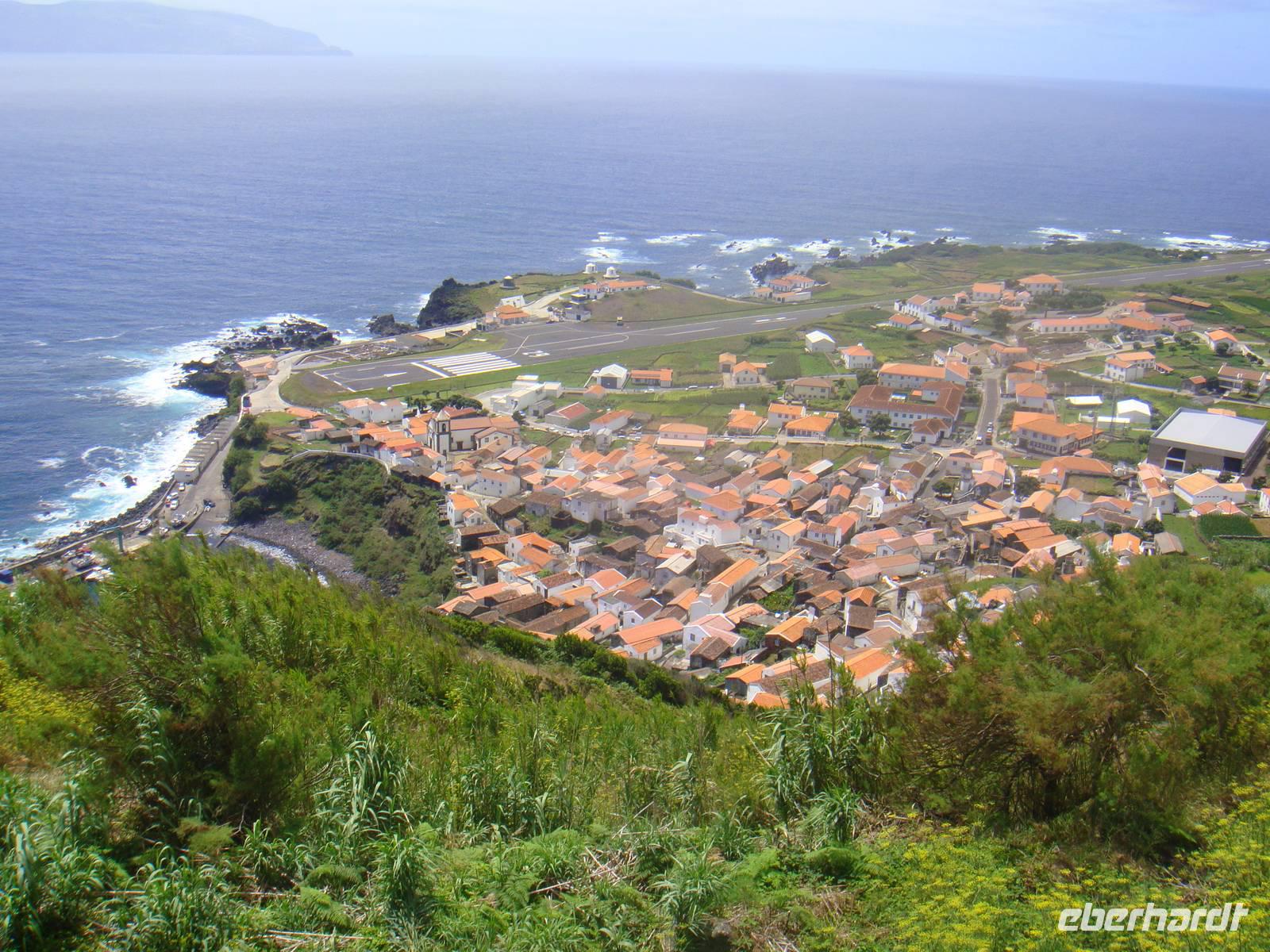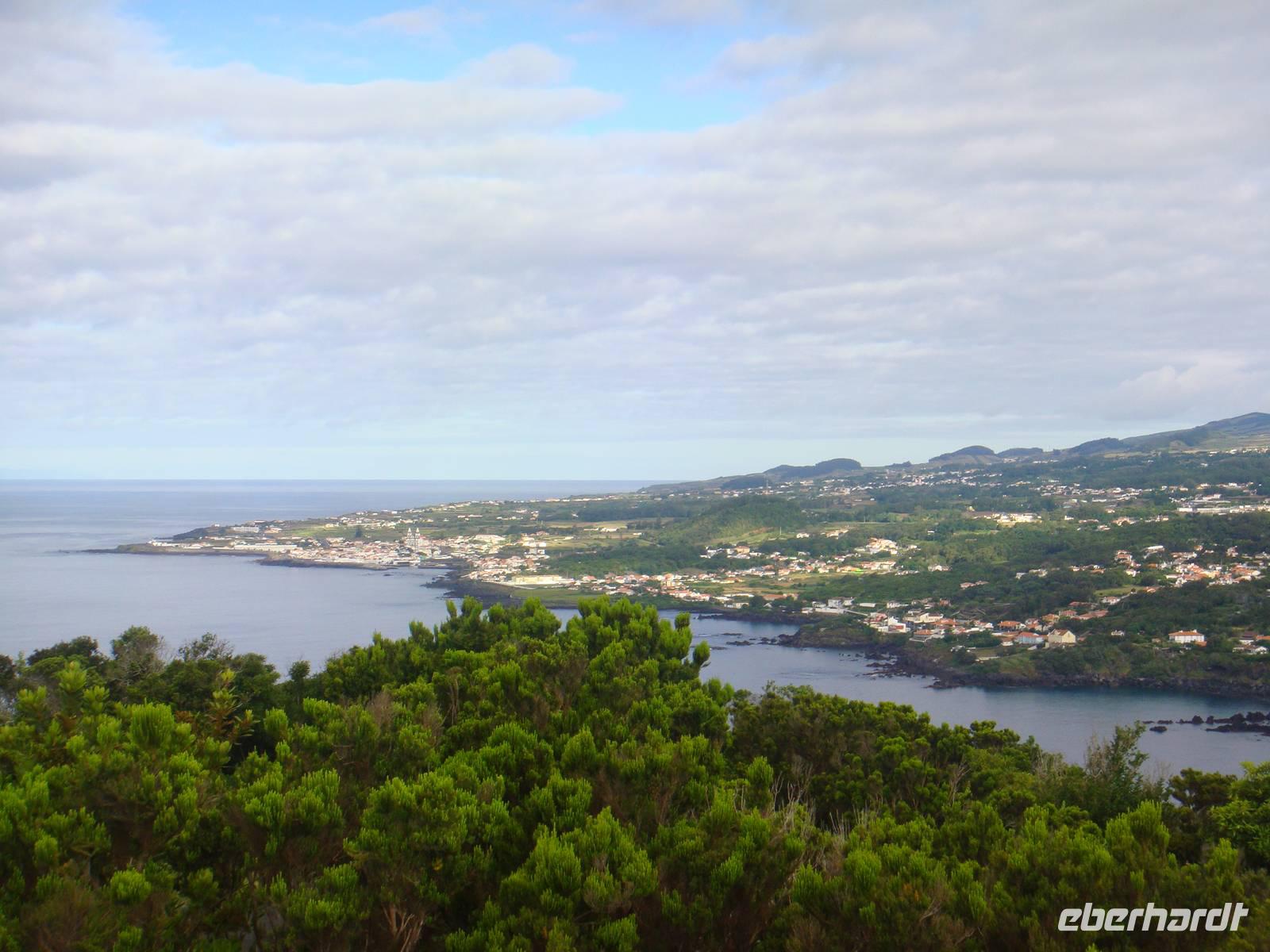 Und wieder geht es in die Lüfte. Wir fliegen zurück nach „Fajal". Nach einer Flugzeit von nur 30 Minuten erreichen wir wieder unsere erste Insel. Wir beginnen unsere heutige Tour mit einem Besuch im "Botanischen Gartens". Jose erklärt uns die verschiedensten Pflanzenarten und anschließend schlendern wir gemütlich durch die Anlage. Zu Fuß geht es weiter in Richtung Stadtzentrum. So ein Stadtrundgang macht hungrig und die Füße sind etwas Pflastermüde. Im gemütlichen Restaurant werden wir mal wieder verwöhnt. Schließlich bummeln wir noch ein wenig durch die Gassen bevor wir uns mit der Fähre auf die 5. Insel "Sao Jorge" begeben.