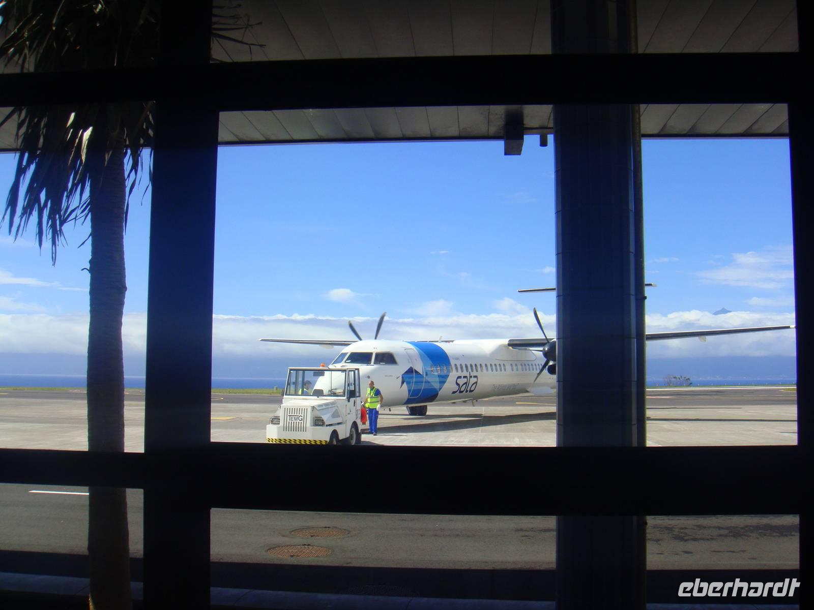 Silvia begleitet uns bis zum Check In und nach der Sicherheitskontrolle genießen wir uns noch einen "Guten Morgen Kaffee". So vergeht die Zeit wie im Fluge und wir starten mit der SATA Airlines auf die Insel Fajal. Wir landen pünktlich am Flughafen Horta und stellen unsere Uhren eine weitere Stunde zurück. Ab jetzt sind wir in der azoreanischen Zeit. Jose unser örtlicher Reiseleiter begrüßt uns herzlich und nach nur 15 Minuten erreichen wir unser Hotel. Wir beziehen unsere Zimmer und in gemütlicher Runde,erklärt uns Jose das Programm der kommenden Tage.
