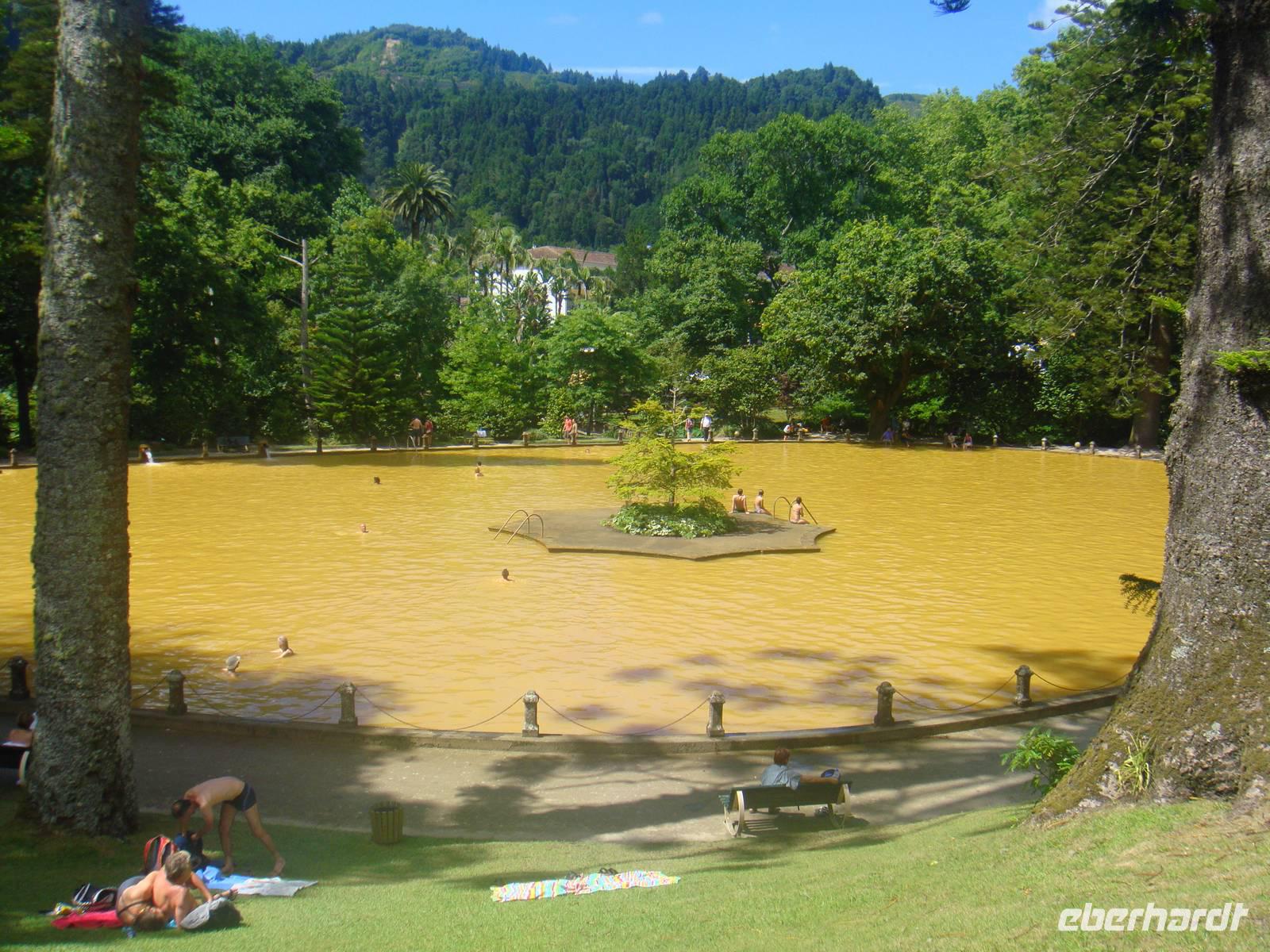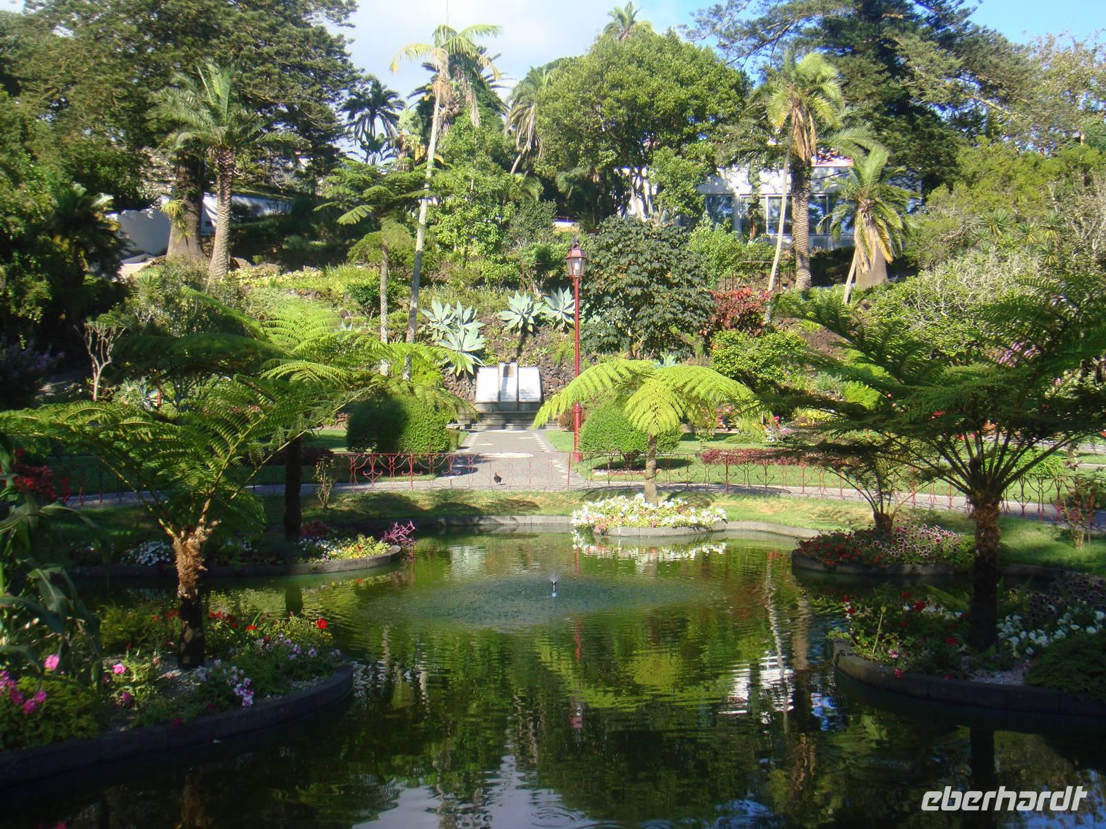 Bevor wir uns im Thermalbecken entspannen, unternehmen wir einen kleinen Spaziergang durch den Park „Terra Nostra". Mit seinen liebevoll angelegten Plätzen mit Blumen und Bäumen lädt er sehr zum Verweilen ein.