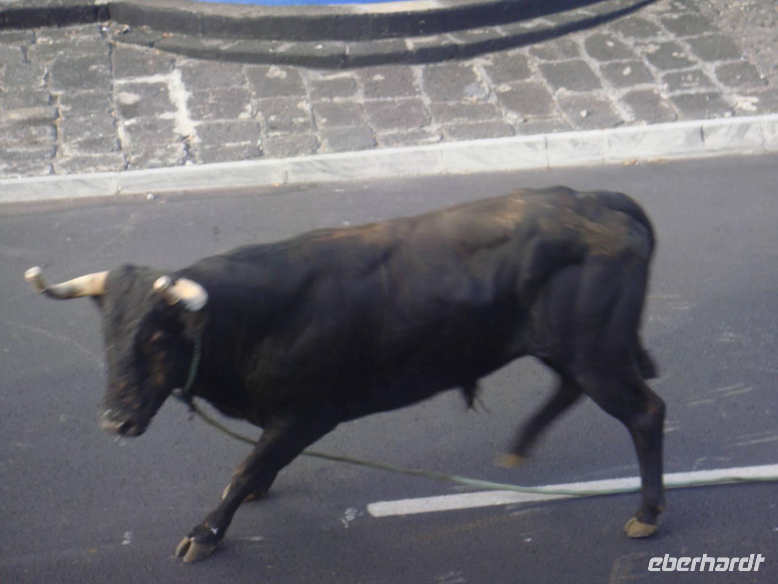 Nach dem Frühstück geht es wieder zur Wanderung. Wir fahren zur Nordküste und beginnen unseren Weg zwischen „Agualva" und „Quatro Ribeiras". Immer wieder geht es hoch und runter. Doch so gestaltet es sich sehr abwechslungsreich. Immer wieder bekommen wir schöne Fotomotive vor die Linse und genießen den Ausblick entlang der Küste. Nach ca. 2, 5 Stunden holt uns unser Fahrer wieder ab und wir beschließen zum Mittagessen zu gehen. Eine deftige Suppe und gutes Fleisch aus dem Rindfleischtopf geben uns wieder Kraft. Wir setzen unsere Reise fort und unsere nächste Etappe ist das Naturdenkmal „Algar do Carvao" Dieser Vulkanschlott liegt in einer Höhe von ca. 550 Metern und ist ungefähr 100 Meter tief. Über Stufen steigen wir in den alten Schlot hinab und sehen den farbenfrohen Lavakamin, der die ausgestoßene Lava beim Erkalten hinterließ. 90 Meter unter der Erdoberfläche gibt es einen 15 Meter tiefen See. Das Licht viel fast senkrecht durch den Vulkanschlot und brachte Moose und Farne besonders gut zur Geltung. Was für ein Naturschauspiel. Im Dorf „Biscoites" nehmen wir in einer Käserei eine Kostprobe und gönnen uns ebenso ein Schlückchen des typischen Süßweins „Arguardente Vehlho". Dabei schauen wir uns ein Video über den Stierkampf an.