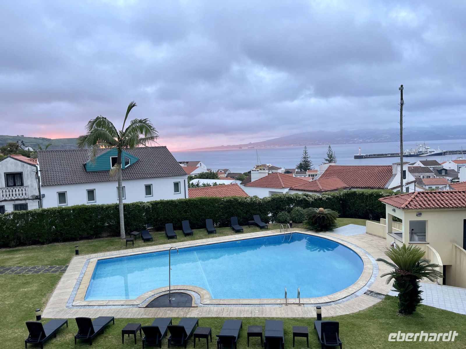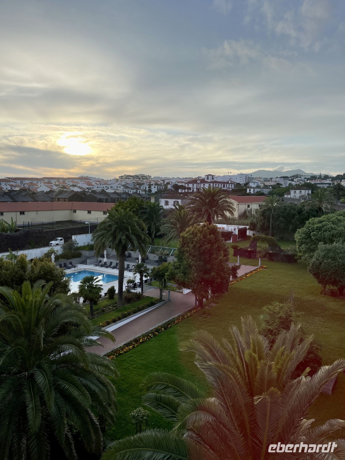 Wir landen 19.00 Uhr Ortszeit auf der größten Insel der Azoren und haben nun zwei Stunden Zeitverschiebung zu Deutschland. Unsere Wanderreiseleiterin Petra empfängt uns am Ausgang und wir fahren gemeinsam zum Hotel Azoris Royal Garden. Nach nur 5 Minuten sind wir bereits am Hotel, denn der Flughafen liegt sehr nah an der Hauptstadt Ponta Delgada.