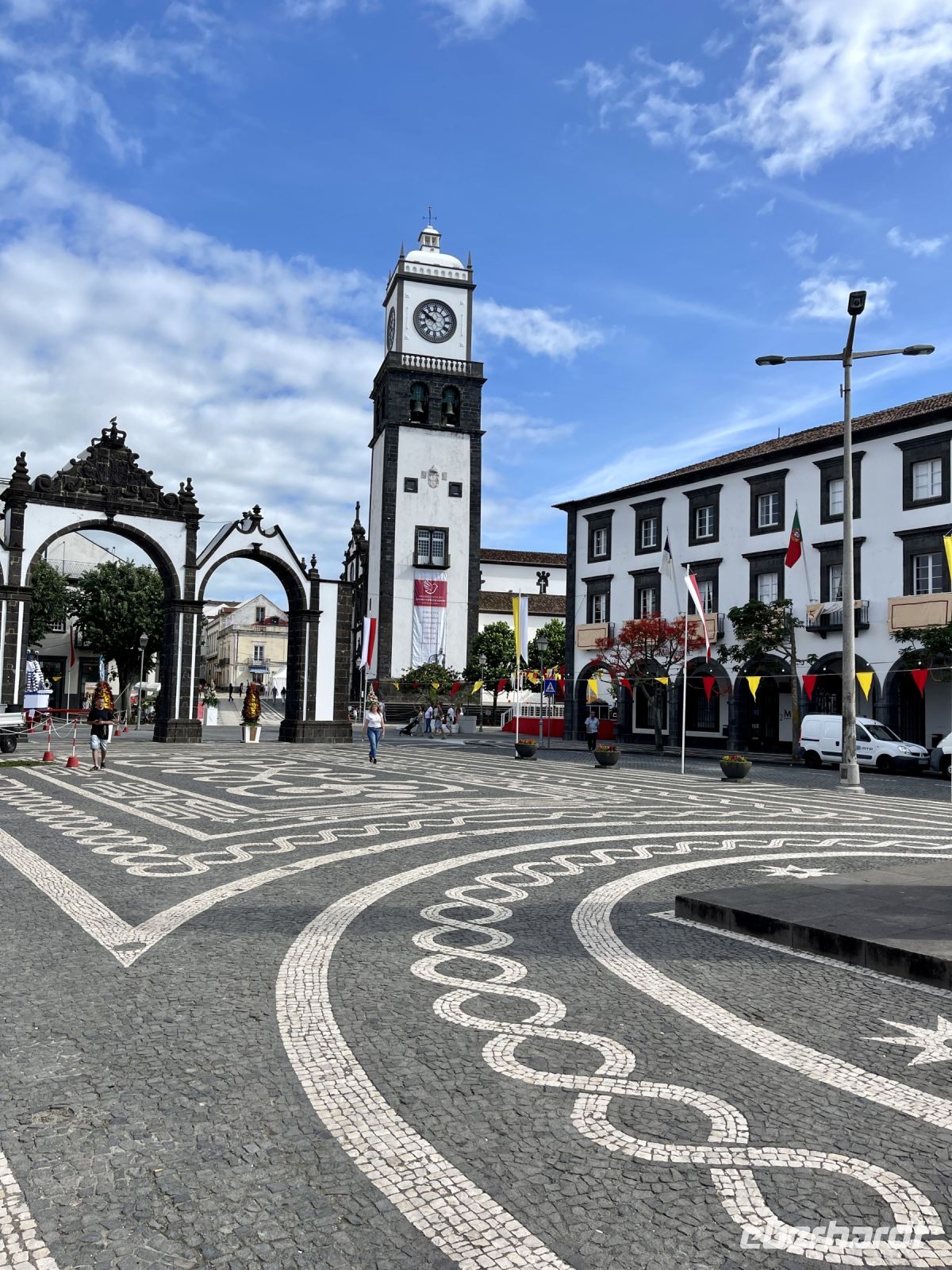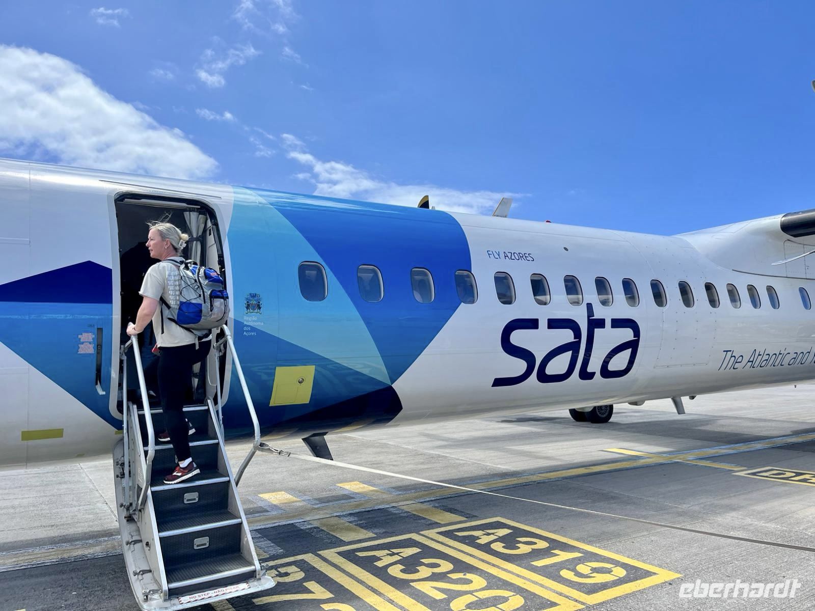 An einem sommerlichen Mittwoch machen sich 16 Reise- und Wanderlustige auf den Weg zum Flughafen, um auf die Azoren zu fliegen. Der Großteil startet in Berlin gegen 13.30 Uhr mit TAP Portugal den 3,5 stündigen Flug und vollzählig sind wir schließlich in Lissabon, als die 3 Gäste aus Frankfurt und München zu uns stoßen. Allesamt sind wir froh, dass wir unseren Anschlussflug nach Ponta Delgada noch rechtzeitig schaffen, denn die Umsteigezeit von reichlich einer Stunde war gefühlt recht knapp bemessen. Aber auch in Lissabon starten wir ein wenig verspätet unseren zweistündigen Flug auf unsere erste Azoren-Insel – nach Sao Miguel.