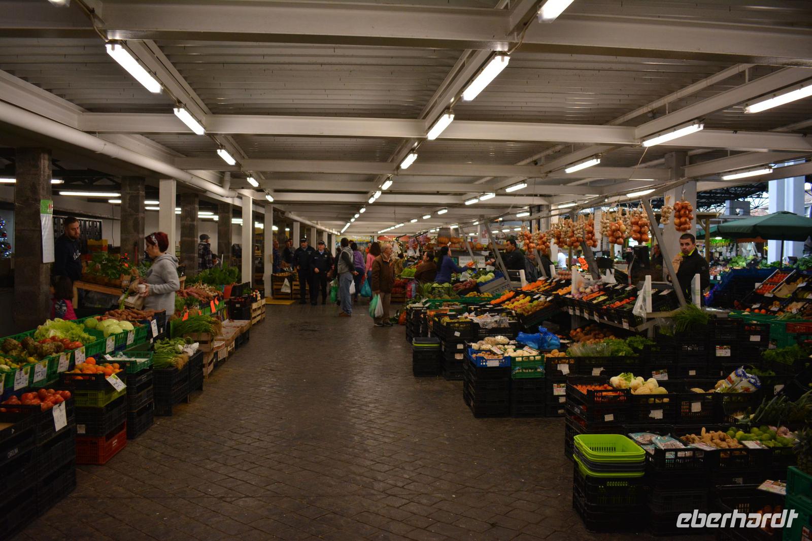Nach einem reichhaltigen Frühstück mit azoreanischen Spezialitäten sind alle bereit den Tag zu entdecken. Es ist immer noch windig, aber die Sonne kämpft sich so langsam durch die Wolken. Frederik begrüßt uns in der Hotel Lobby und möchte und heute die Stadt zeigen. Unser Rundgang durch Ponta Delgada beginnt in der Markthalle. Hier gibt es viele Stände mit frischem Obst und Gemüse, aber auch Fisch und Fleisch werden angeboten. Im kleinen Käseladen werden außerdem viele azoreanische Leckereien angeboten.