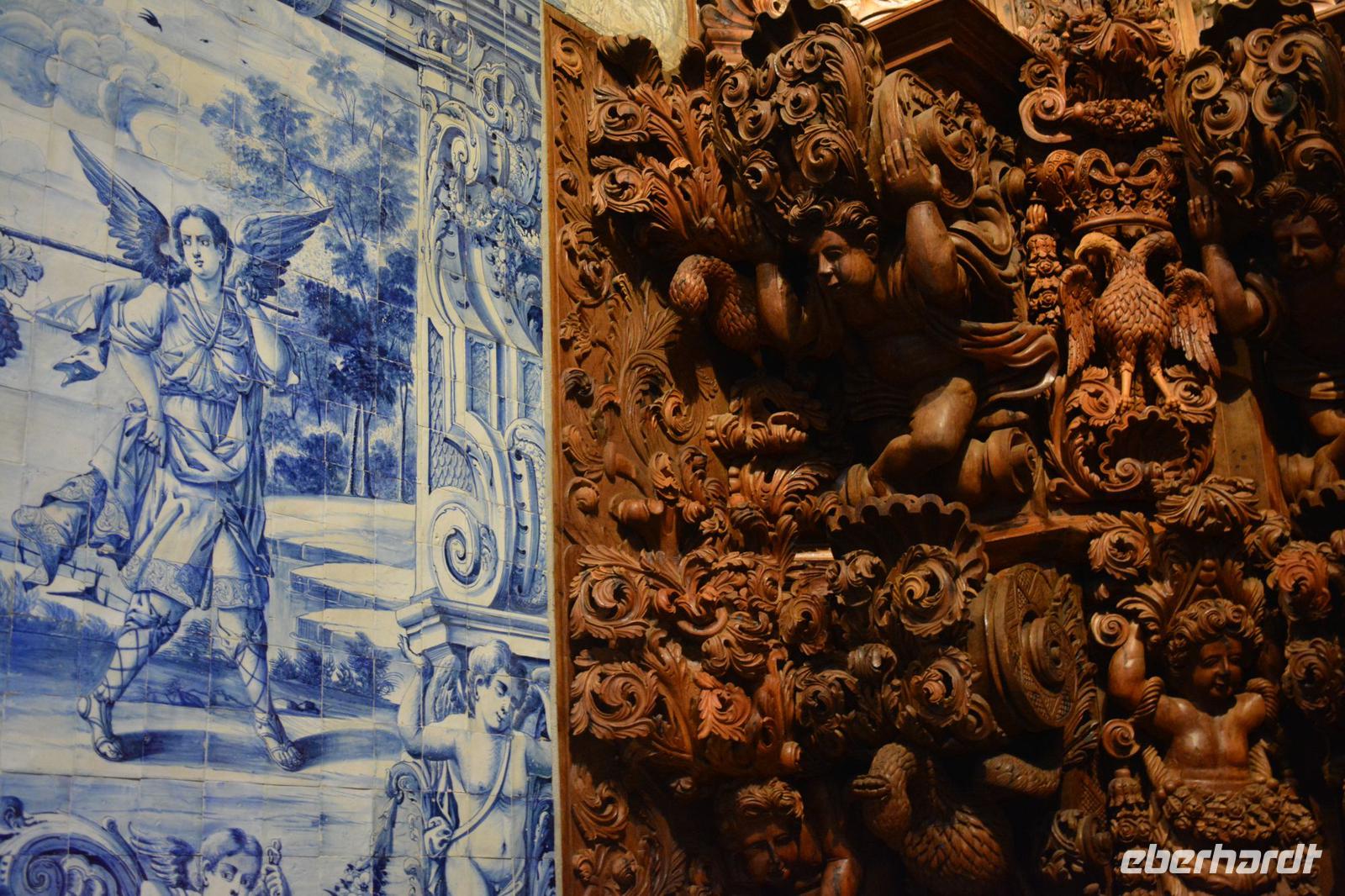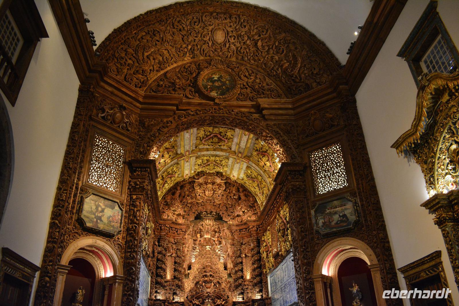 Wir sehen außerdem die Jesuitenkirche (Igreja do Colégio dos Jesuítas) mit dem angrenzenden Museum „Nucleo de Arte Sacra). Der Altar ist fast vollständig aus Holz gearbeitet. Jedoch wird die Kirche nur noch für Veranstaltungen genutzt. Die kleinen Balkone an der Fassade wurden für den besseren Überblick bei den Prozessionen gefertigt.