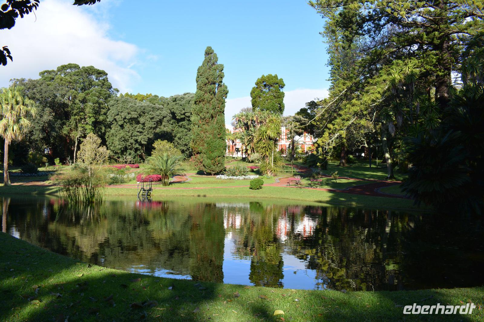 Heute haben wir den Tag zur freien Verfügung und starten bei viel Sonne von Hotel zum botanischen Garten. Der wunderschön angelegte Park mit einem kleinen Teich, vielen Bäumen und auch einem Obst- und Gemüsegarten dient ebenfalls als Wohnsitz des Präsidenten der Azoren.
