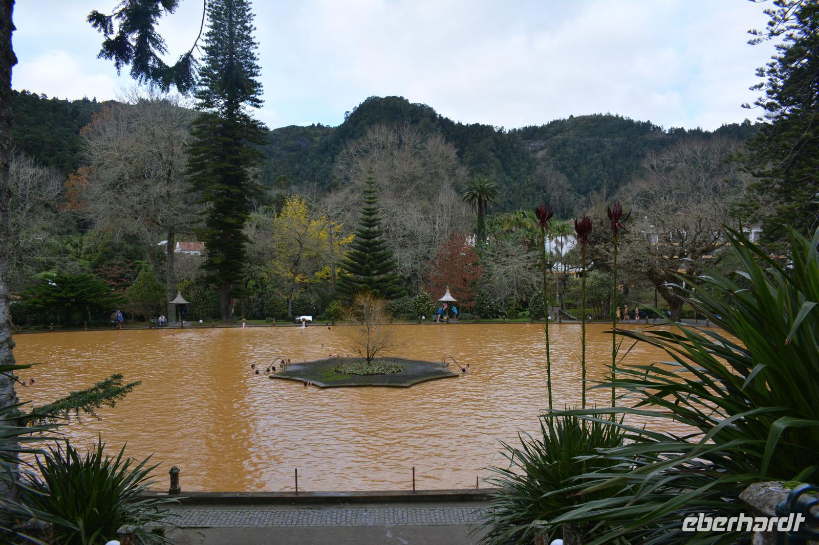 Unser Mittagessen hier ist ebenfalls etwas ganz Besonderes, es gibt „Cozido", eine Art Schmorgericht aus verschiedenen Fleisch- und Gemüsesorten. Allen schmeckt es und wir haben wir Kraft den 12ha großen Park „Terra Nostra" zu erkunden. Nach einem Spaziergang durch die reichhaltige Pflanzenwelt des Gartens, können wir im angelegten Thermalbecken Energie für das neue Jahr tanken. Das Becken wird von heißen Quellen gespeist und hat daher eine ungefähre Temperatur von 38°C und ist besonders eisenhaltig.