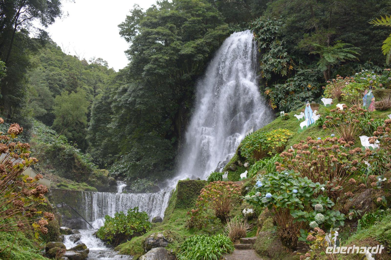 Auf dem Weg nach Nordeste halten wir an vielen kleinen Aussichtspunkten, wo wir einen tollen Blick über die Küsten und Landschaften von Sao Miguel haben. Im Bus erzählt uns Frederik viel über die Insel, ihre Einwohner und die Lebensweise und Religion der Menschen. Über 90% hier sind katholisch und es gibt einen Streit der Pfarrer, wer in welchem Dorf predigen darf. Auf den Azoren gibt es keine Kirchensteuer, somit ist jeder Pfarrer von den Spenden des Dorfes abhängig. Wer also in einem großen Dorf predigt, kann ein besseres Leben führen.