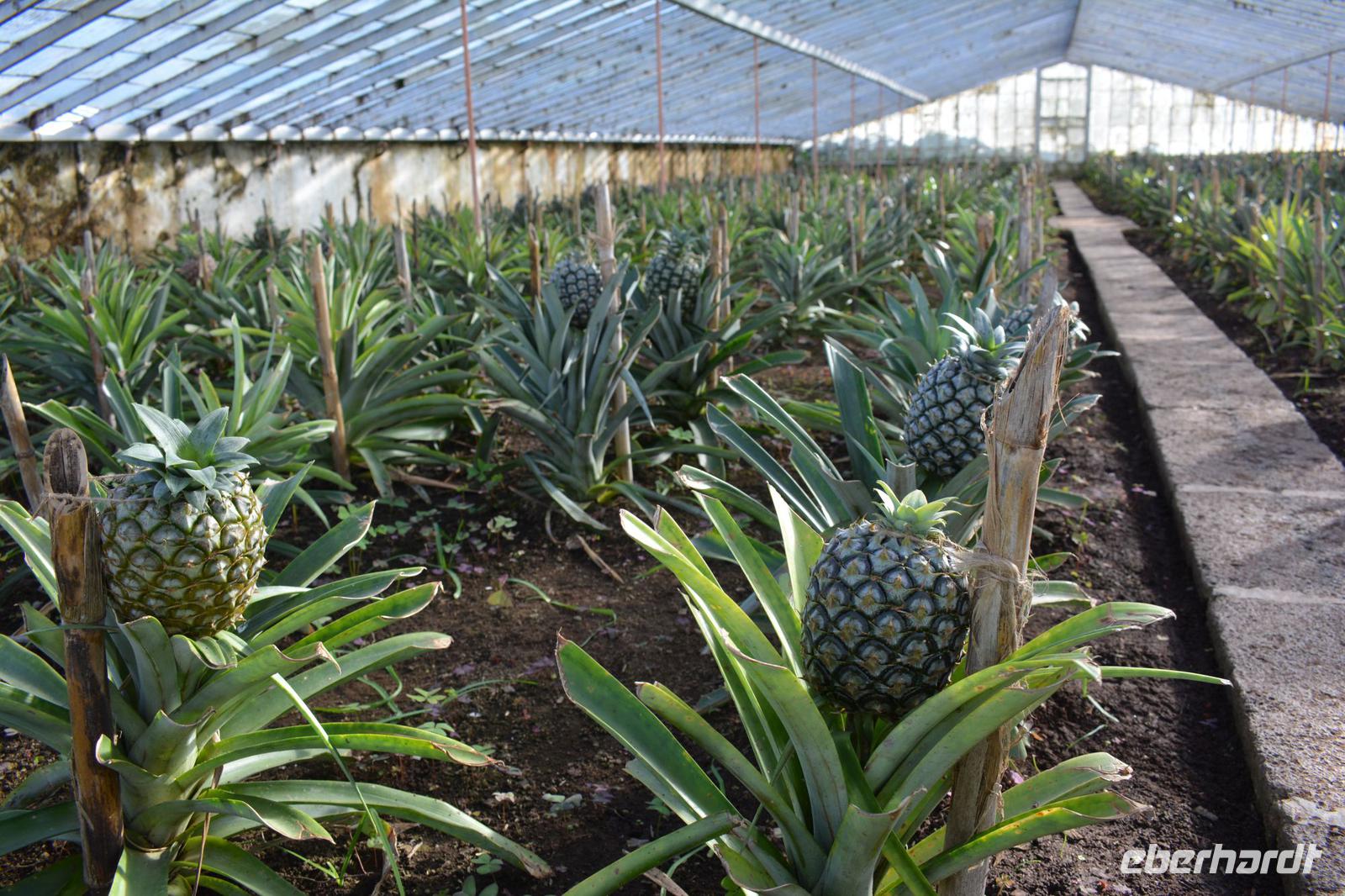 Nachdem durch die Monokultur die Orangenplantagen auf Sao Miguel eingingen, setzten die Einheimischen auf den Anbau von Ananas. Eine der Plantagen sehen wir uns heute noch an. In verschiedenen Gewächshäusern sehen wir die verschiedenen Stadien der Pflanze und können im Anschluss noch einen süßen Ananaslikör probieren, bevor wir zurück zum Hotel fahren.