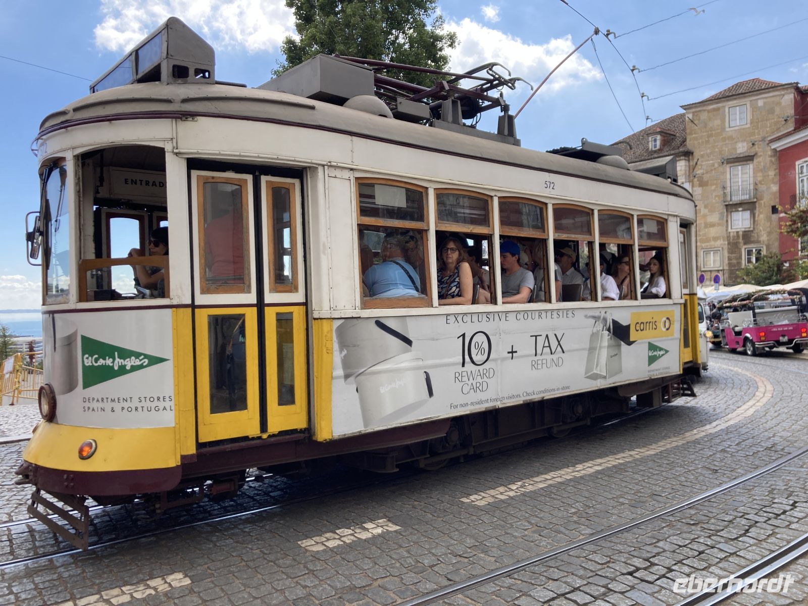 Vom Castelo geht es durch die Alfama hinunter. Wir sehen die Tram mit der Nummer 28. Leider ist an eine Fahrt nicht zu denken, wir sind nicht die einzigen Touristen, die es hierher zog. Der Nachmittag ist dann reserviert für den Tejo. Das Seefahrerdenkmal und den Torre de Belem werden wir besichtigen. Und natürlich auch die großartige Klosteranlage.