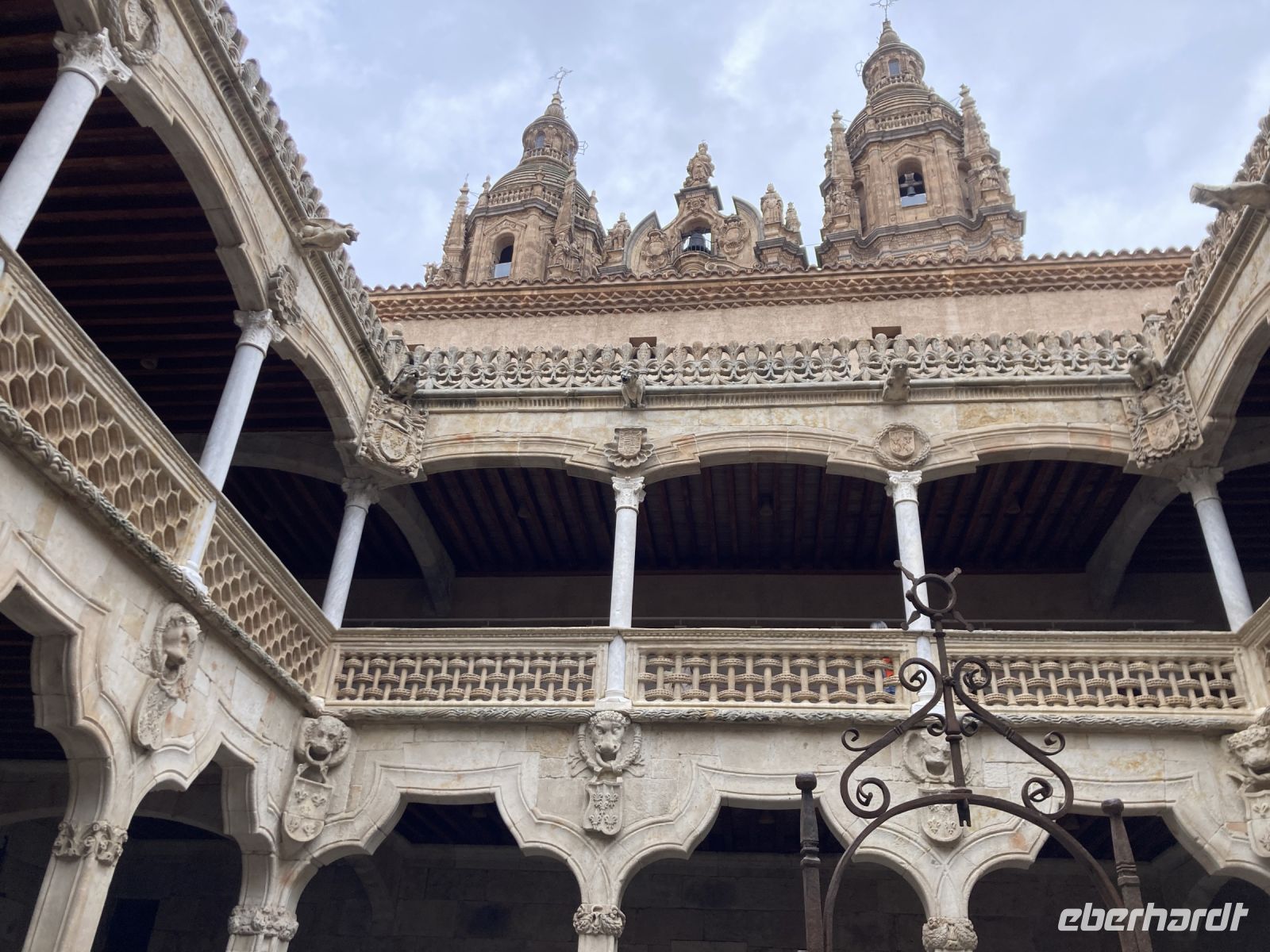Ein Ausflug der besonderen Art steht auf dem Programm. Wir verlassen Portugal und fahren nach Spanien, in die Universitätsstadt Salamanca. Nicht ganz die älteste Universität Spaniens aber fast. Salamanca hat viele Besonderheiten, die uns bei einer Führung vorgestellt werden. Nach einem Mittagessen, bei dem natürlich der gute Rohschinken nicht fehlen darf haben wir dann noch Zeit, die Stadt auf eigene Faust zu erkunden. Eine kleine Gruppe tun dies im schönen Casa Lis. Ein Palast des Jugendstils und zugleich ein wundervolles Museum.