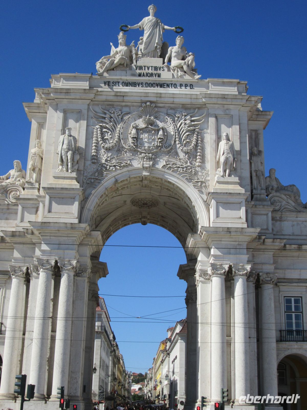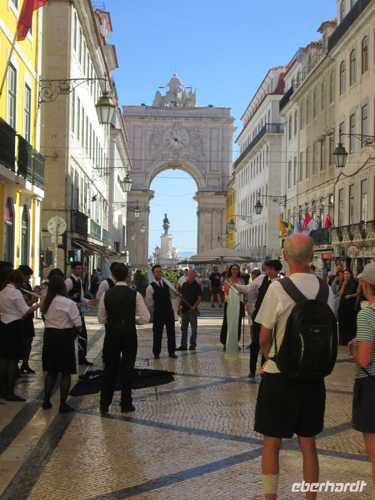 Am Nachmittag trafen wir uns zu einem Spaziergang, der uns zum Praça do Comercio an den Tejo führte. Die dorthin führende Hauptstraße Rua Augusta, und der Platz selber wurden nach dem verheerenden Erdbeben am 1.11.1755 durch Marques de Pombal wieder aufgebaut.