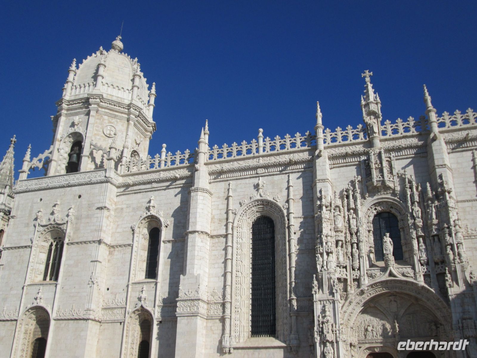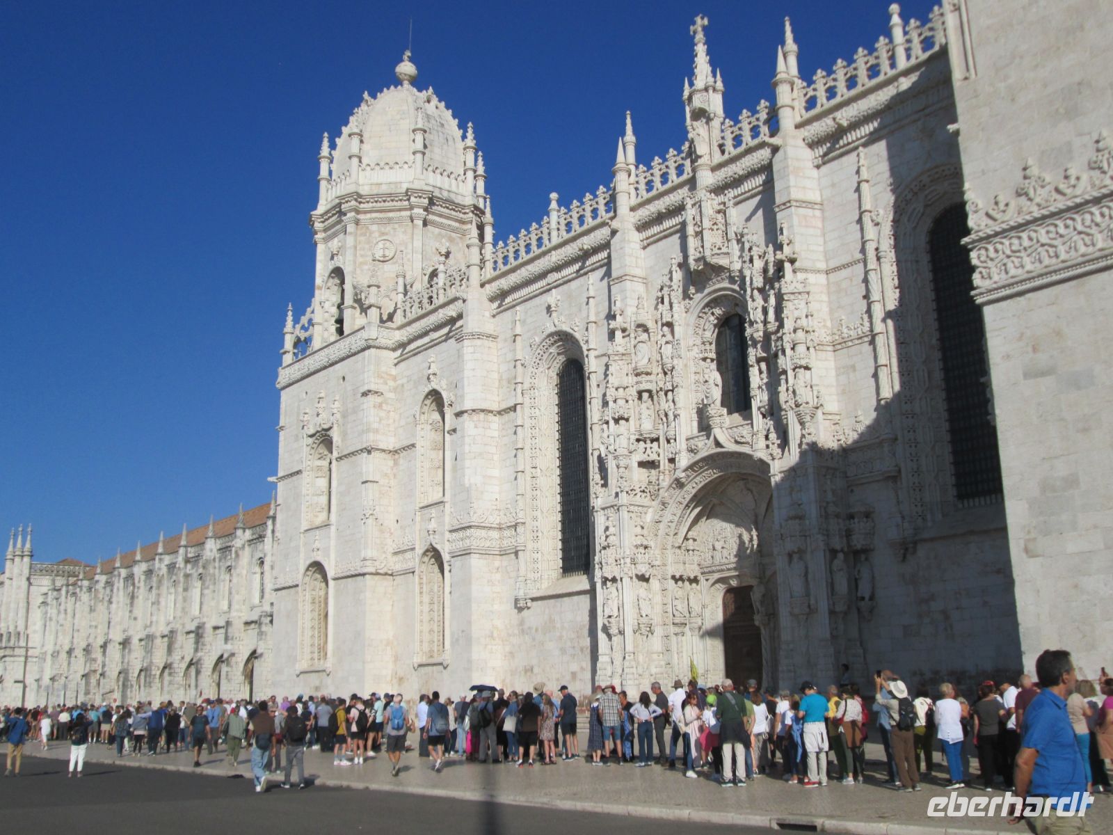 Eine architektonische Meisterleistung im manuelinischen Stil, ist das seit 1983 sich auf der Liste der Kulturgüter der Menschheit befindliche Kloster. Von Belem aus begann Vasco Da Gama, dessen Grabmal sich in der Klosterkirche befindet, seine Fahrt nach Indien. Darüber informierte uns Margarida, jedoch haben wir es nicht gesehen, da ein nochmaliges Anstehen in einer Schlange von allen abgelehnt wurde.