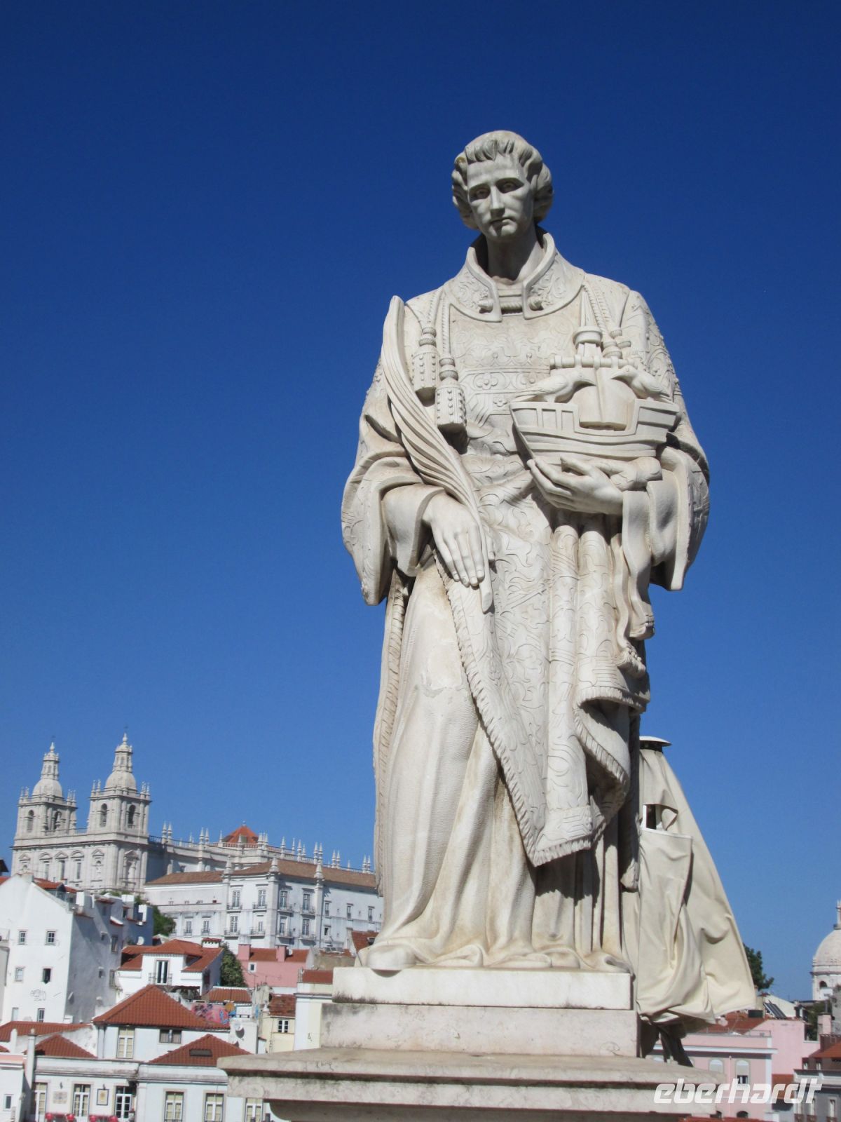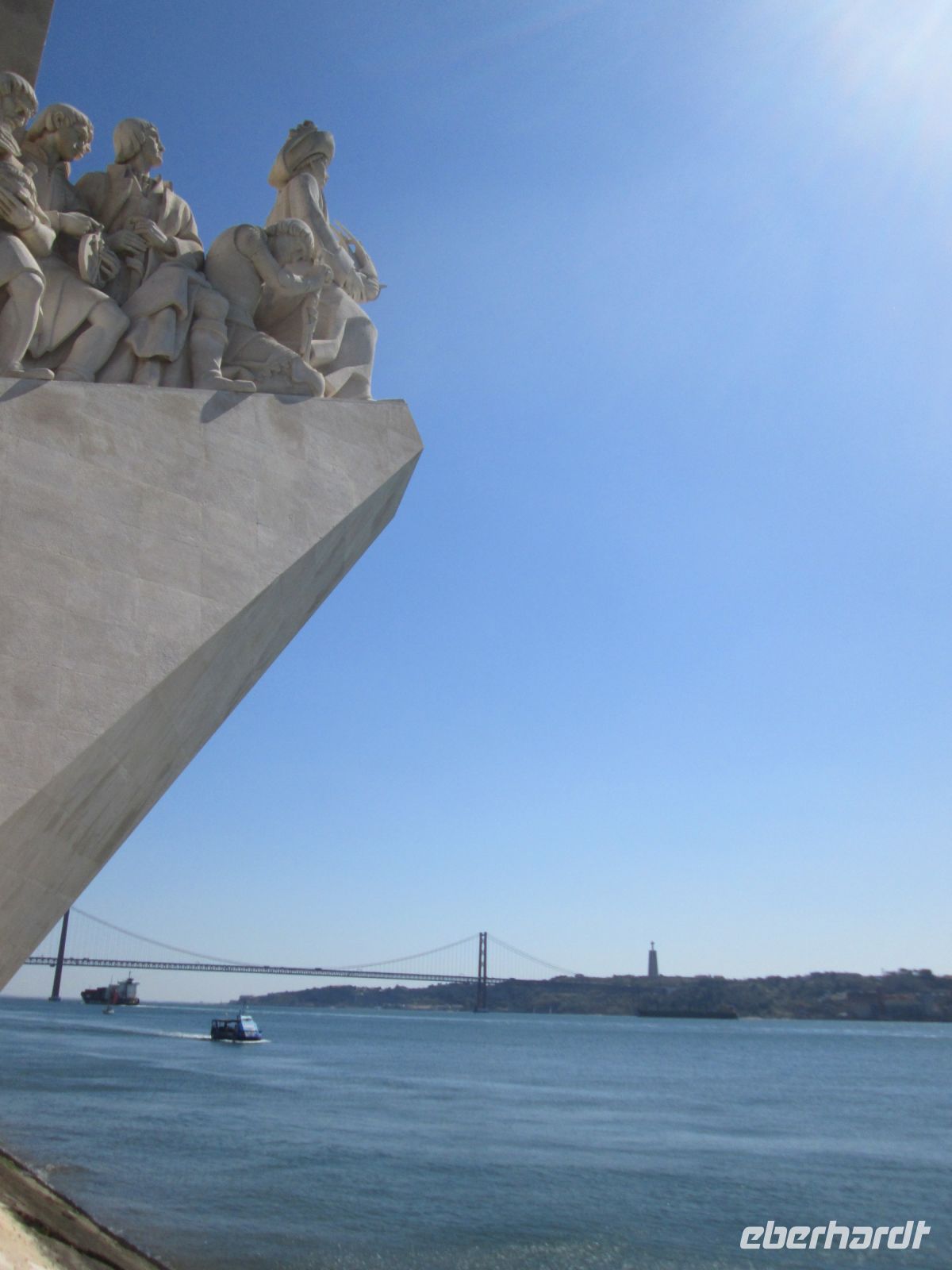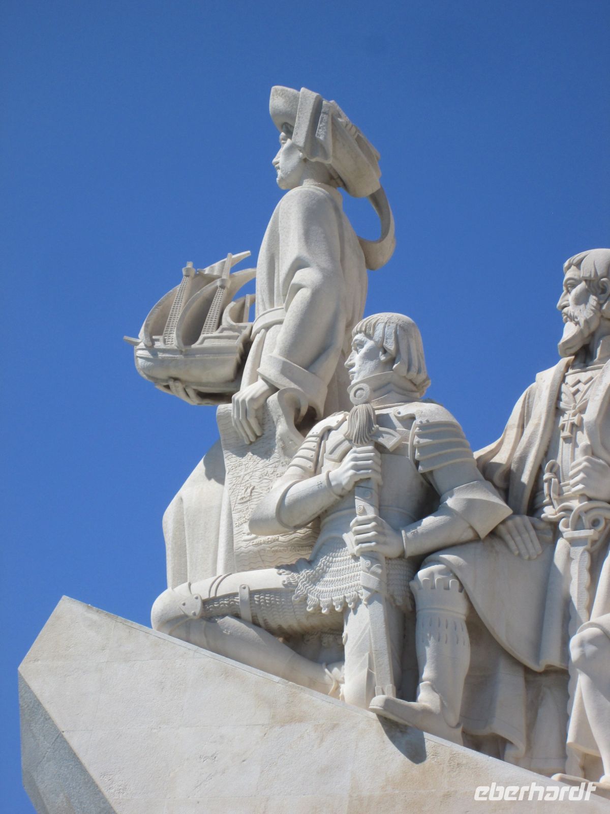 Das Südtor, nahe dem wir uns in der ersten Warteschlange gedulden mussten, zeigt nicht nur die Heilige Mutter Gottes, sondern auch Heinrich den Seefahrer, der uns auf der gegenüberliegenden Straßenseite am Entdeckerdenkmal, an dessen Spitze, wieder begegnete. Dieses Denkmal des Bildhauers De Almeida wurde zum 500. Todestag des Seefahrers 1960 errichtet. Das Denkmal zeigt eine Karavelle, ein Schiff der damaligen Zeit, mit wichtigen Personen, wie z.B. den Astronom Pedro Nunes, einen weiteren Seefahrer, Fernando Magellan und Philippa von Lancaster, Königin und Gattin von Heinrich III. von Kastilien.