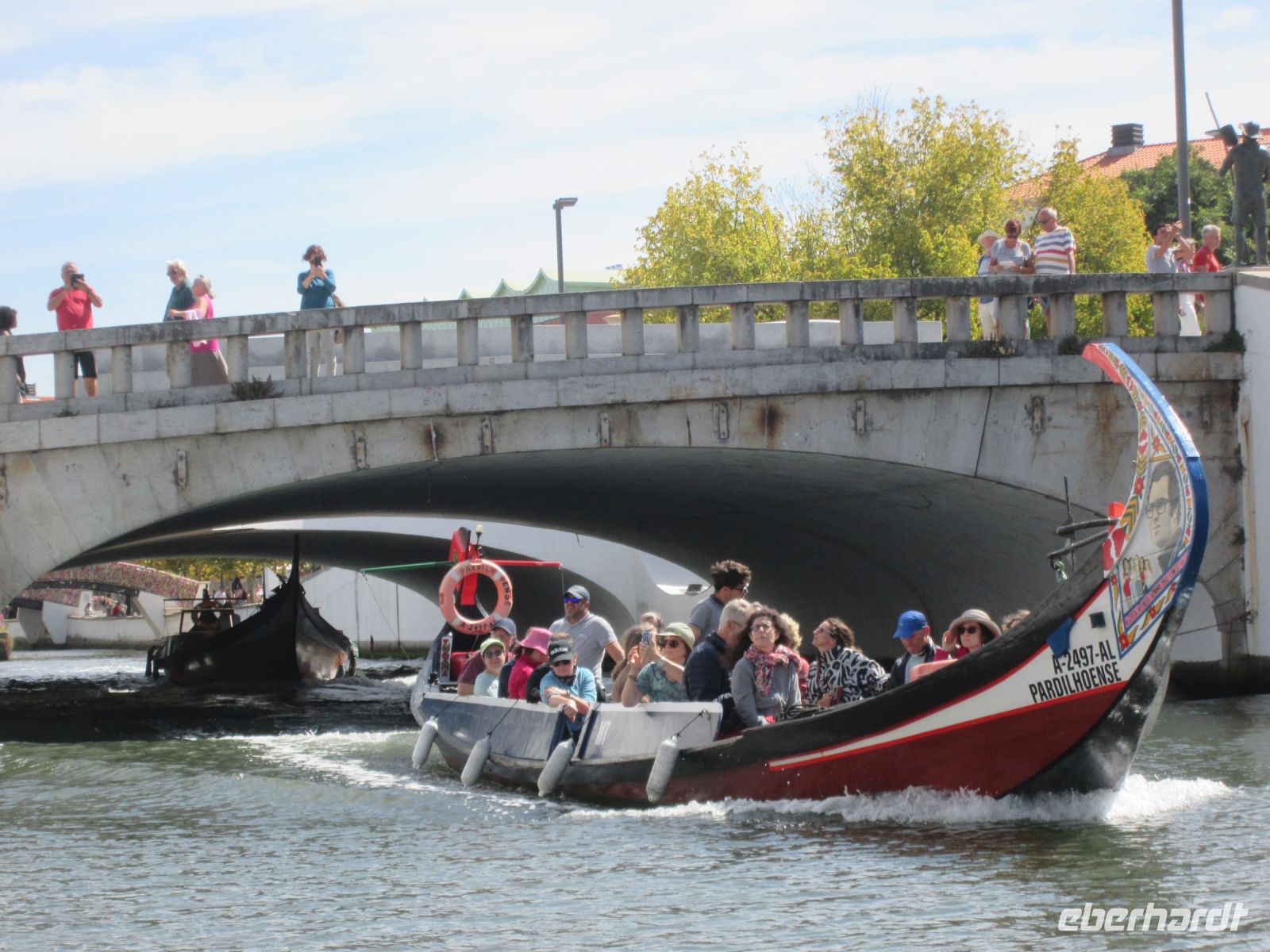 Wir befanden uns am Meer, dass wurde uns sofort beim Ausstieg in Aveiro bewusst. 29 Grad zeigte das Busthermometer an, aber es wehte ein angenehmes Lüftchen. Aveiro wird gern als "Venedig Portugals" bezeichnet, da viele Kanäle die Stadt durchziehen. Auf einer 40minütigen Kanalfahrt wurden wir durch Andre' informiert, dass es rund 10 km Kanäle in der Stadt geben soll. Auch gab er Informationen über das dort produzierte Salz. Eine kleine Kostprobe von Biskuit Gebäck mit Fleur de Sel, dem edelsten Meersalz, gab es dann im Bus auf der Weiterfahrt nach Vila Nova de Gaia.