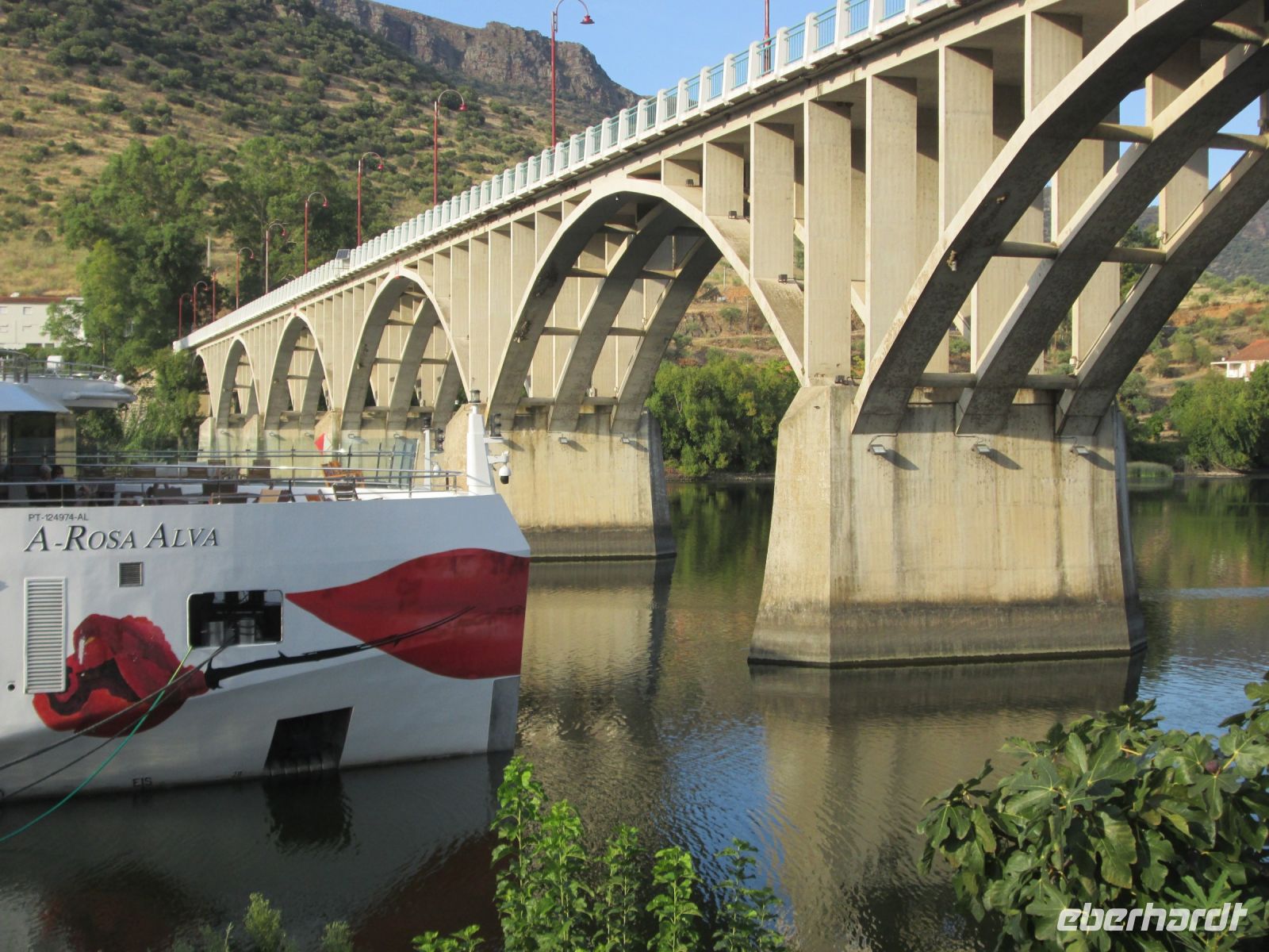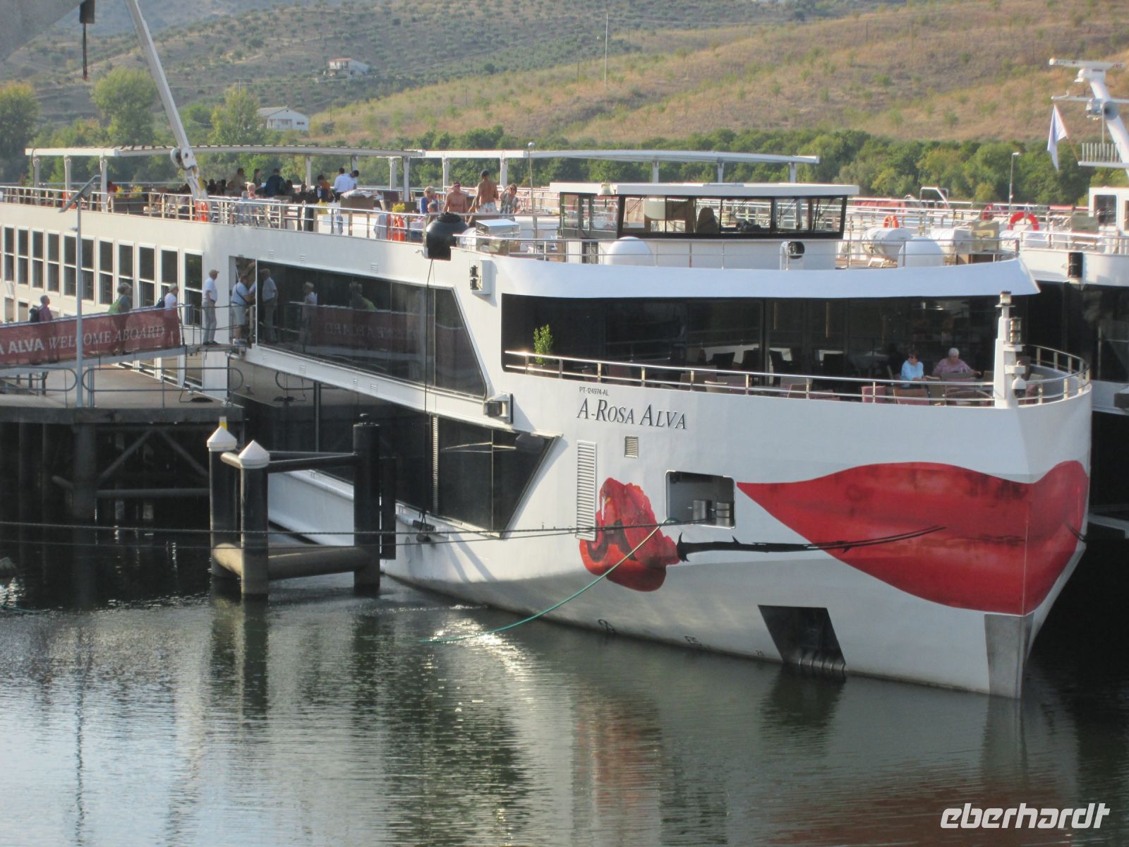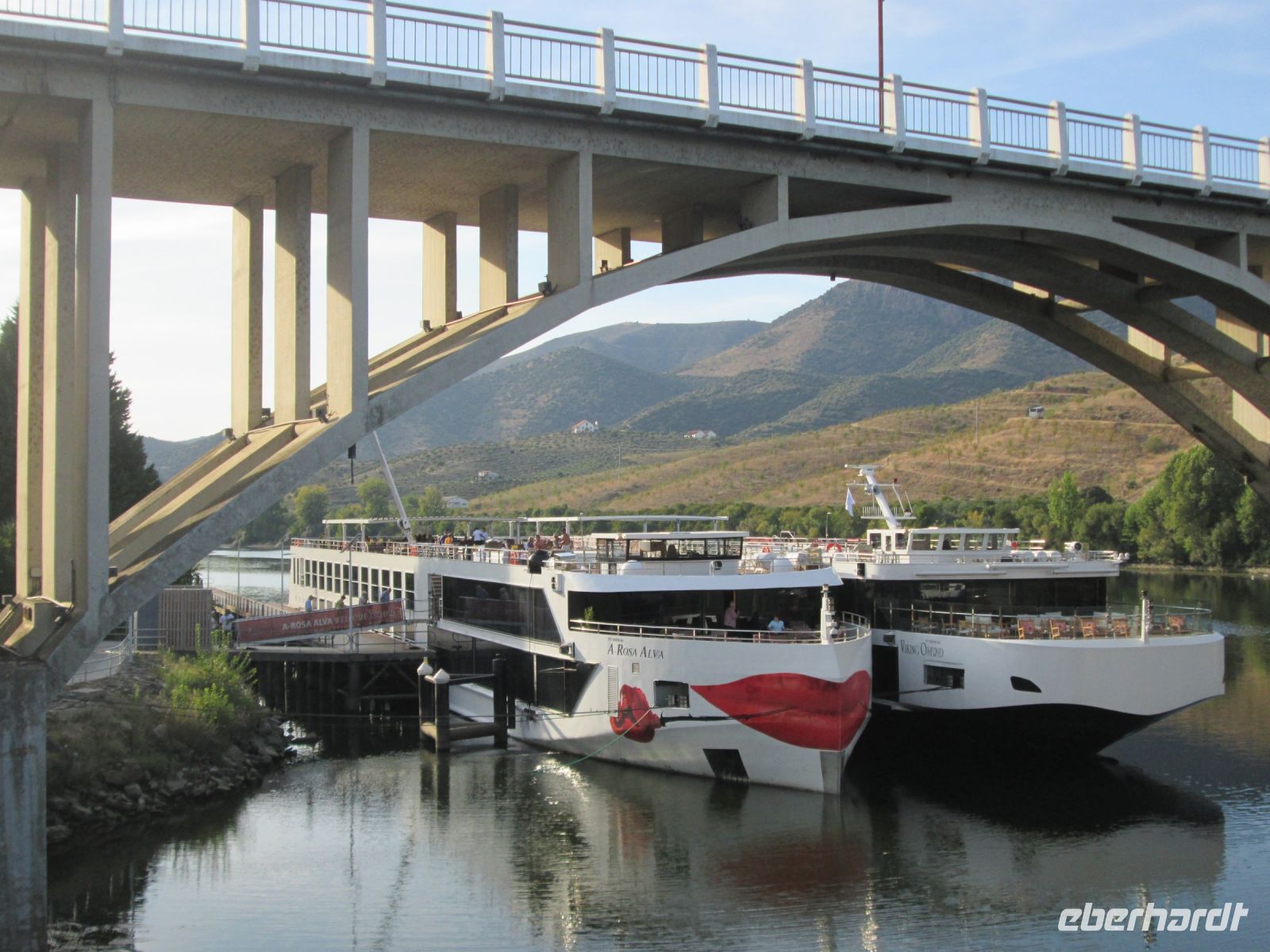 Es hat eine Länge von fast 80 m und eine Breite von 11,40 m . Letzteres muss so bleiben, da sonst keine Schleusendurchfahrt mehr möglich sein würde. Alle 5 Schleusen auf dem Douro sind 12 m breit. Unser Kapitän, der Portugiese Diogo Martins, hatte mit Hilfe seiner Crew natürlich alle Schleusenein-und ausfahrten mit Bravour gemeistert. Jede Schleusendurchfahrt muss bezahlt werden: eine Einmalzahlung von je € 43,09 plus