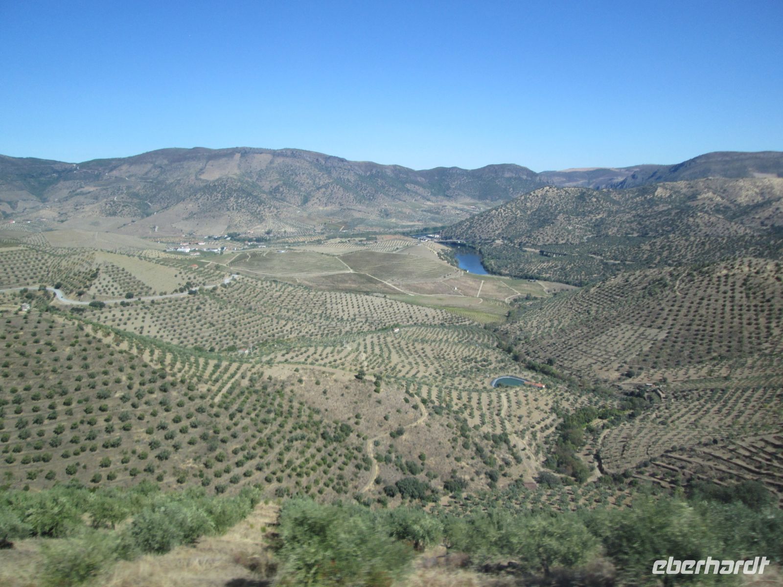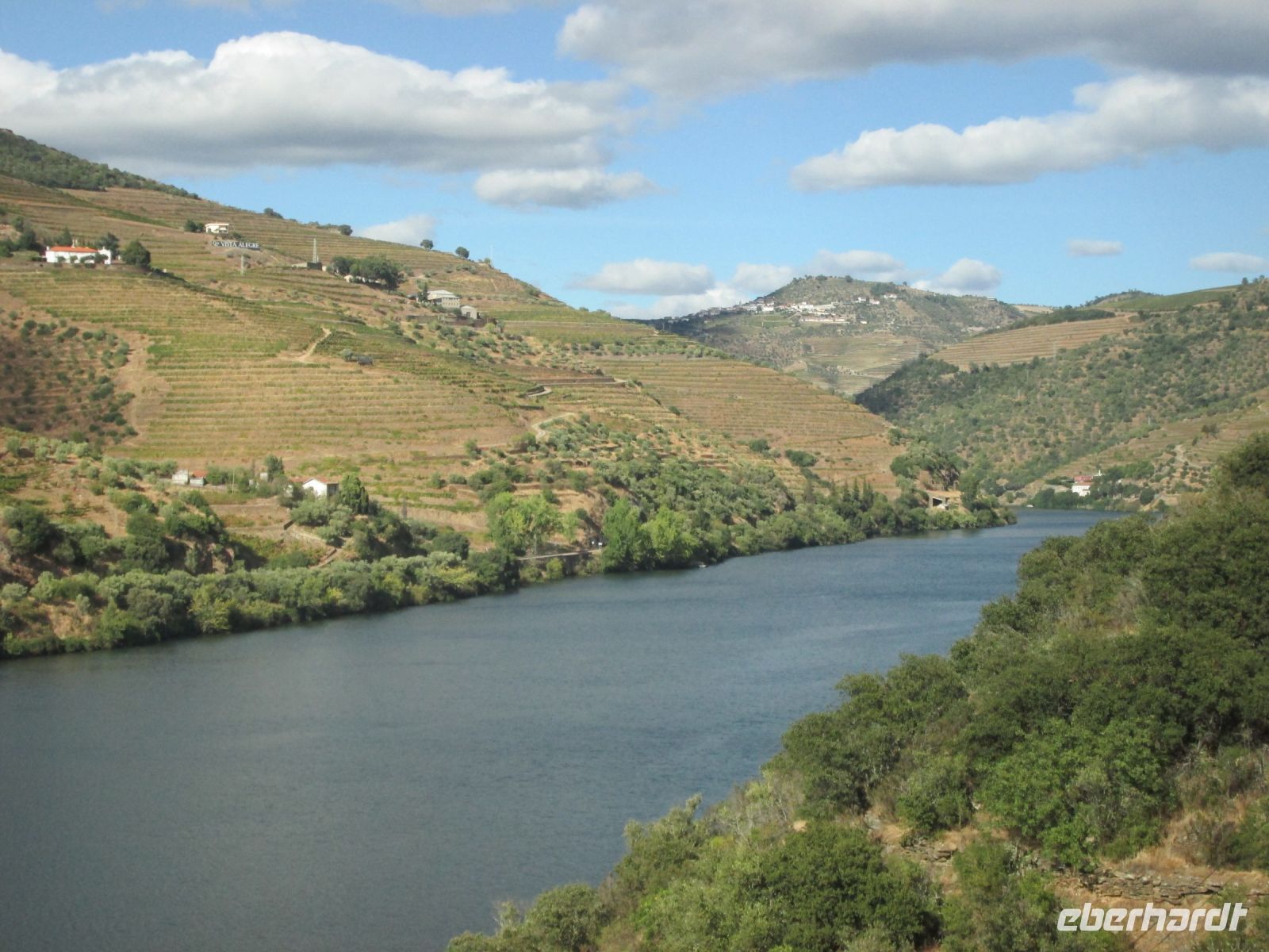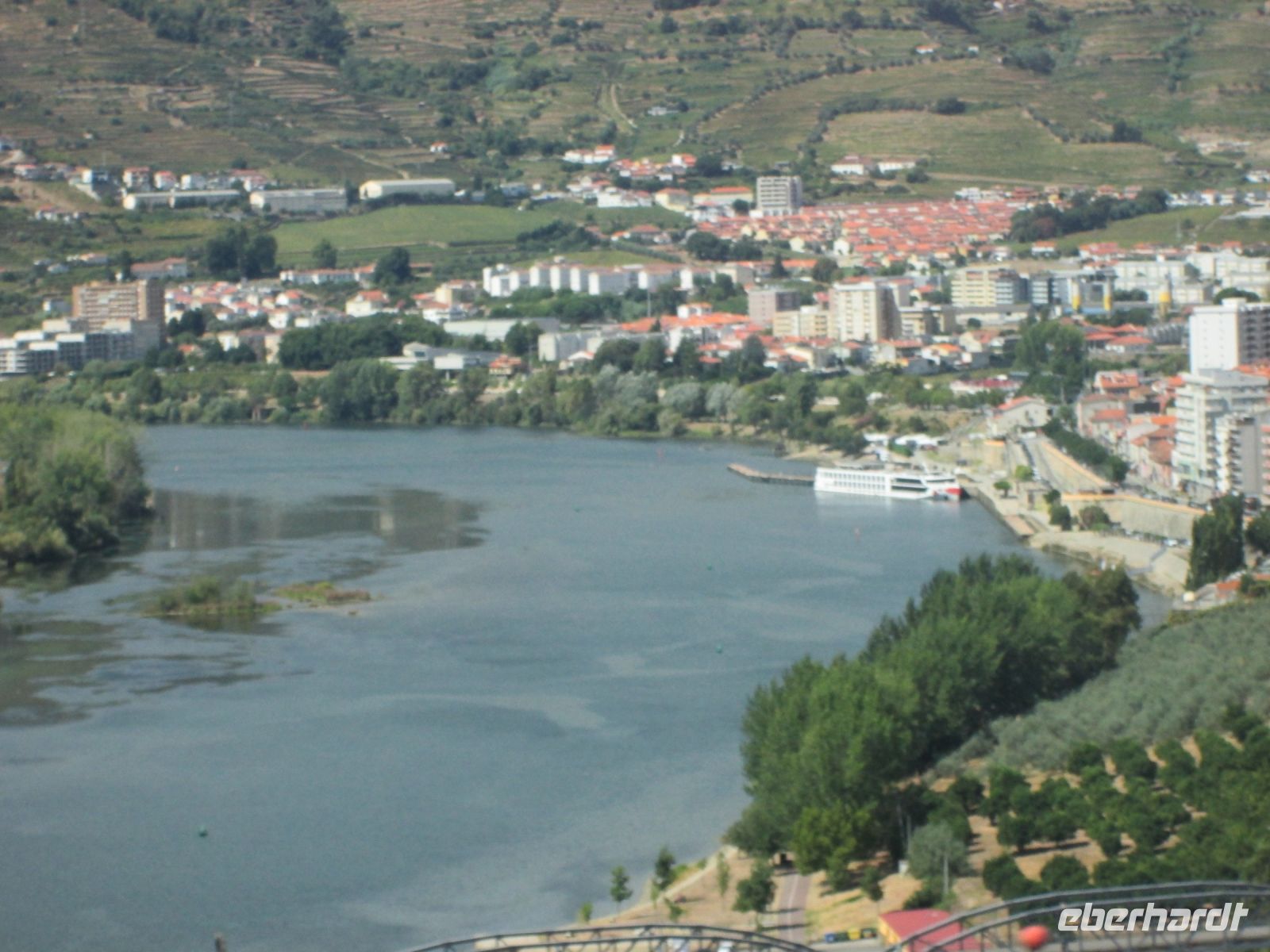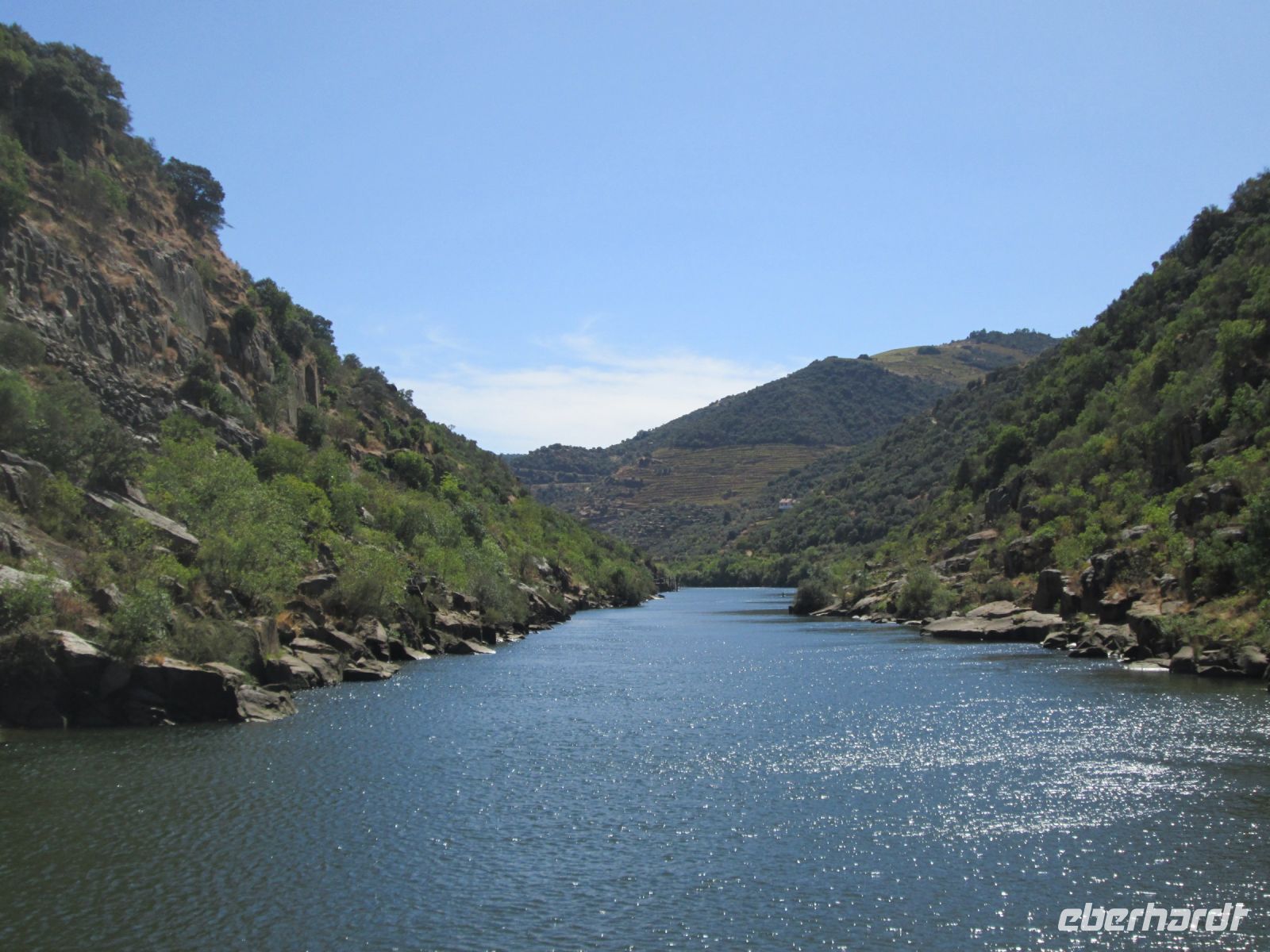 Der Douro schlängelt sich über 897 km (wir erinnern uns an das WLAN Passwort an Bord) durch Spanien und Portugal. Seine Quelle ist auf ca. 2100 m Höhe auf spanischer Seite. Während er dort nicht schiffbar ist, besteht dies aber auf portugiesischer Seite auf 211 km.