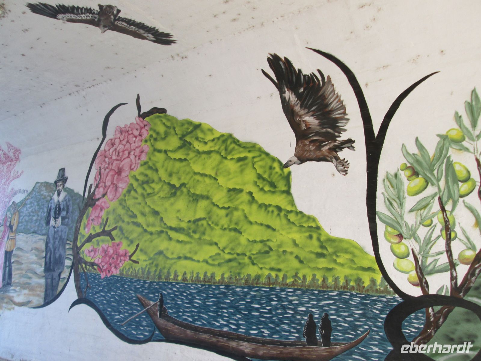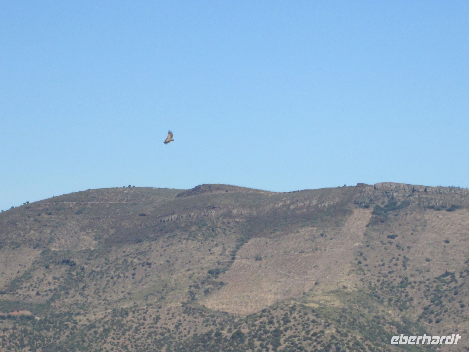 Auf dem Rückweg fuhren wir durch ein Stück Nationalpark, den sich Spanien und Portugal teilen. Der "Parque Natural do Douro Internacional" mit seinen Steilhängen soll u.a. die Heimat von Geiern sein, die auf den Klippen brüten. Es wäre doch sehr schön, vielleicht ein Tier zu sehen! Und tatsächlich, nach einigen Minuten ließen sich die Tiere am Himmel sehen. Welcher Geier es nun aber genau war, konnte keiner sagen. War es ein Schmutzgeier, der auch zum Nationalparkvogel erkoren wurde oder vielleicht ein Gänsegeier, oder ein Mönchsgeier ?