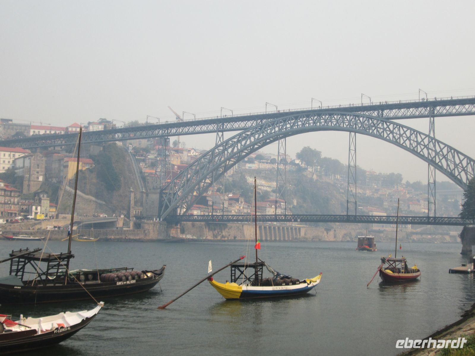 Porto liegt unweit der Mündung des Douro in den Atlantik. 6 Brücken überspannen den Fluss, eine 7. befindet sich im Bau. Die interessantesten Brücken sind zweifelsfrei die 2 Stahlbogenbrücken mit den Namen "Maria" und "Luis" .