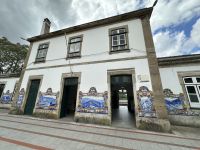 Rund um das Heiligtum befindet sich ein Park. Hier finden sich weitere Kapellen, Brunnen und Skulpturen, eingebettet in eine grüne Oase. Von hier aus genießen wir einen atemberaubenden Panoramablick über Lamego und das Douro-Tal. Nun stehen wir vor der Entscheidung: 686 Stufen auf der Himmelstreppe oder mit dem Bus nach unten fahren. Es gibt doch einige Gäste, die sich für die Treppe entscheiden. Und so beginnen wir den Abstieg. Neben beeindruckenden Statuen gibt es auf jedem Treppenabsatz auffällige Wandbilder aus blauen und weißen Keramikfliesen, den sogenannten Azulejos. Diese kunstvollen Darstellungen sind ein charakteristisches Element der portugiesischen Kunst und Kultur und erzählen auf ihre Weise Geschichten entlang des monumentalen Aufgangs. Die Farben der Azulejos sind traditionell Blau und Weiß, die Darstellung lebendig und detailreich. Zu sehen sind zum Beispiel Szenen aus dem Leben der Jungfrau Maria: Darstellungen der Verkündigung, der Heimsuchung, der Geburt Jesu und andere wichtige Episoden ihres Lebens. Biblische Geschichten, allegorische Darstellungen wie Tugenden und Laster und historische Ereignisse und Legenden. Die Detailgenauigkeit der Azulejos ist bemerkenswert. Der Abstieg wird durch diese beeindruckenden Bilder abwechslungsreich und ehe es wir uns versehen, sind wir schon wieder unten. Es lohnt sich, mit Abstand einen Blick zurück zu werfen, denn erst von hier sieht man die Himmelstreppe komplett.